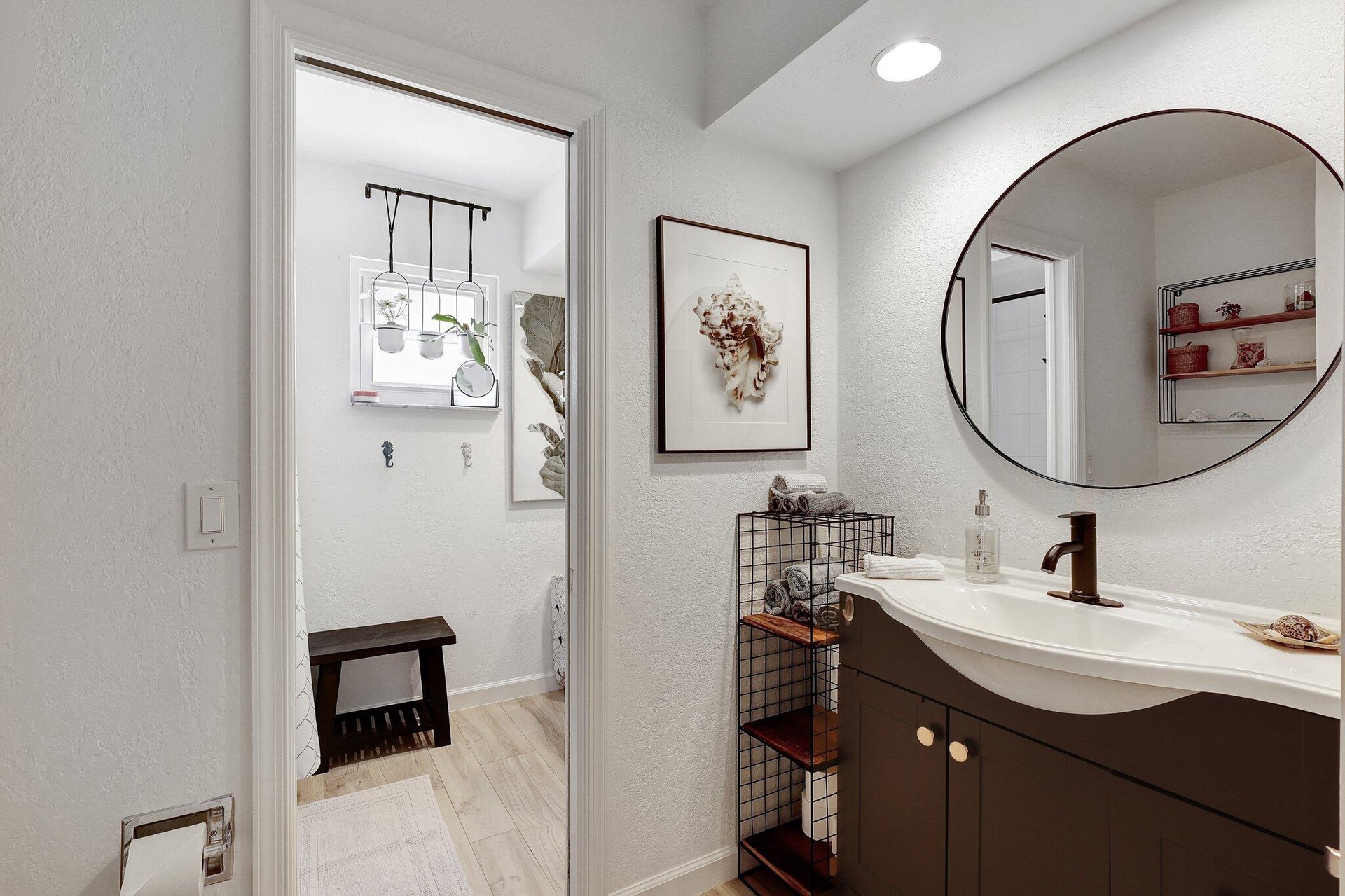 Discover the gated seaside community of Xanadu by the Sea. This move-in ready single-family home offers 3 bedrooms, 2 baths, a bonus loft, and a 2-car garage. The open-concept design showcases soaring cypress-clad ceilings, plantation shutters, and wood-look porcelain tile and laminate flooring. The bright kitchen features a center island, quartz countertops, and plenty of storage. The primary suite includes a newly renovated modern bath, while impact windows/doors and a 2023 aluminum metal roof provide peace of mind. Additional highlights include two newer tankless water heaters, high-efficiency AC, and lush tropical landscaping. Relax on the shaded patio with cedar ceiling or stroll via the private walkway to Carlin Park, beaches, jogging trails, tennis, pickleball, and nearby dining.