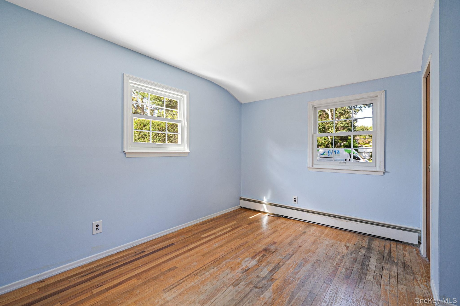 - Spare room featuring wood-type flooring and a baseboard radiator
