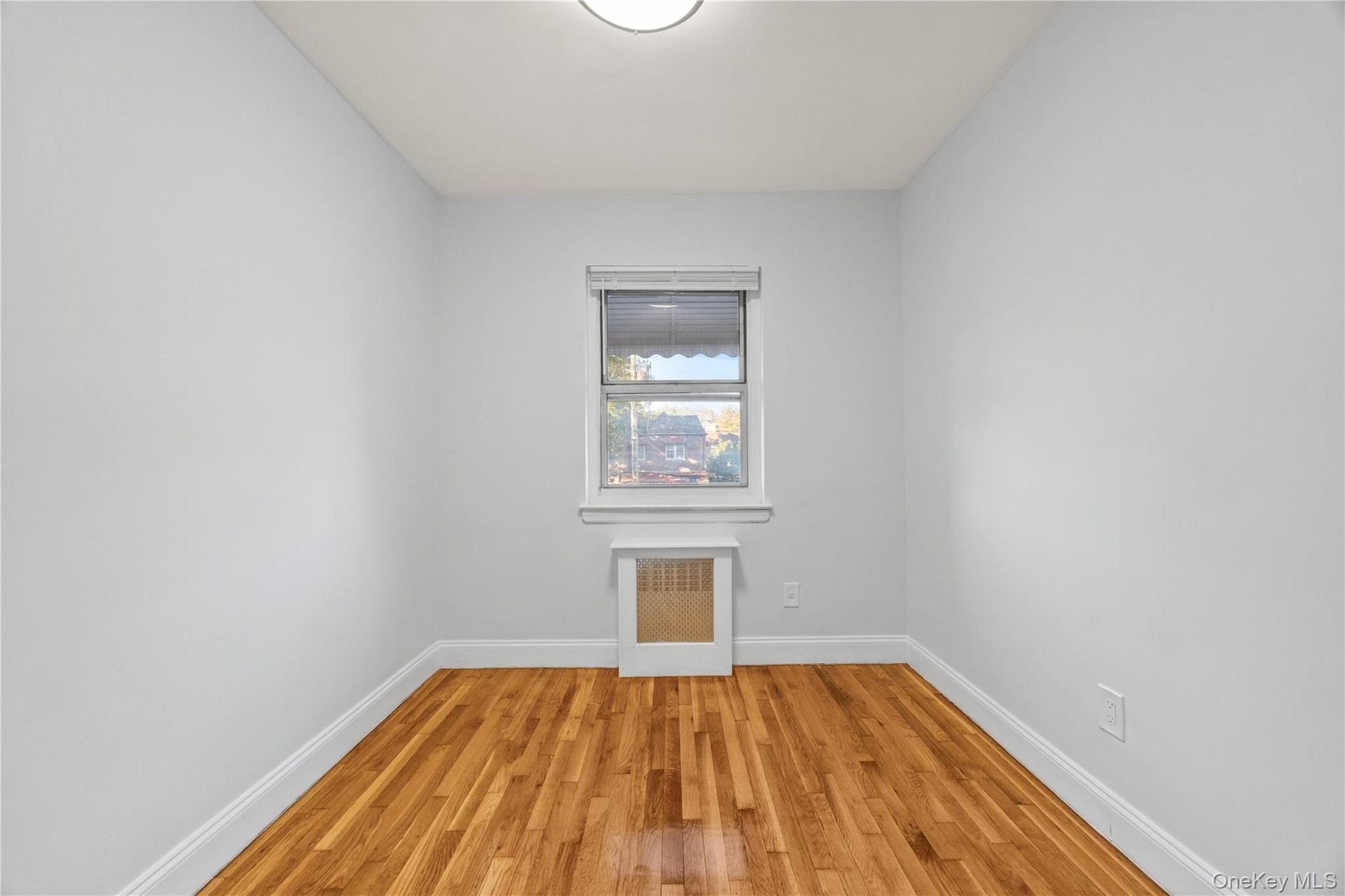 - Unfurnished room with radiator heating unit, light wood-type flooring, and plenty of natural light