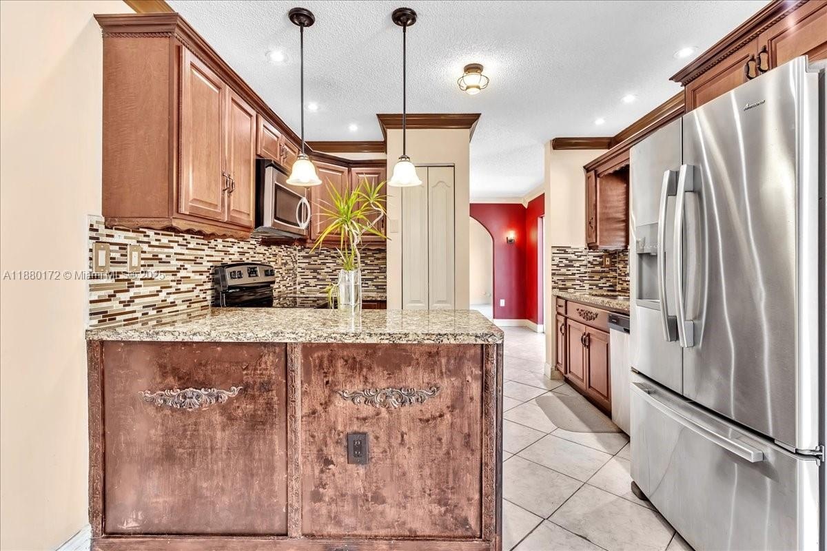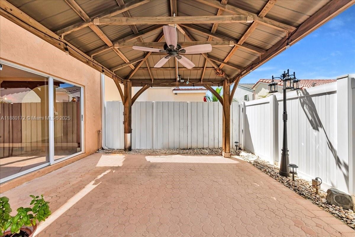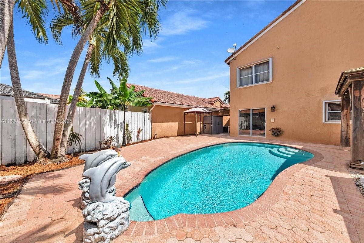 This beautiful 3-bed, 3-bath home located in the desirable Huntington community. Designed for comfort and style, it features spacious bedrooms and bathrooms, volume ceilings, and huge windows that fill the interior with natural light. The convenient layout includes one bedroom and full bath on the first floor, perfect for guests or multigenerational living. Accordion shutters provide peace of mind, while a 2-car garage and additional driveway parking add practicality. Step outside to your private retreat with a sparkling pool and gazebo, ideal for entertaining or relaxing. Located just minutes from top-rated schools, shopping, dining, major highways, and a short drive to Miramar Regional Park and other local attractions, this home combines lifestyle and convenience in one perfect package.