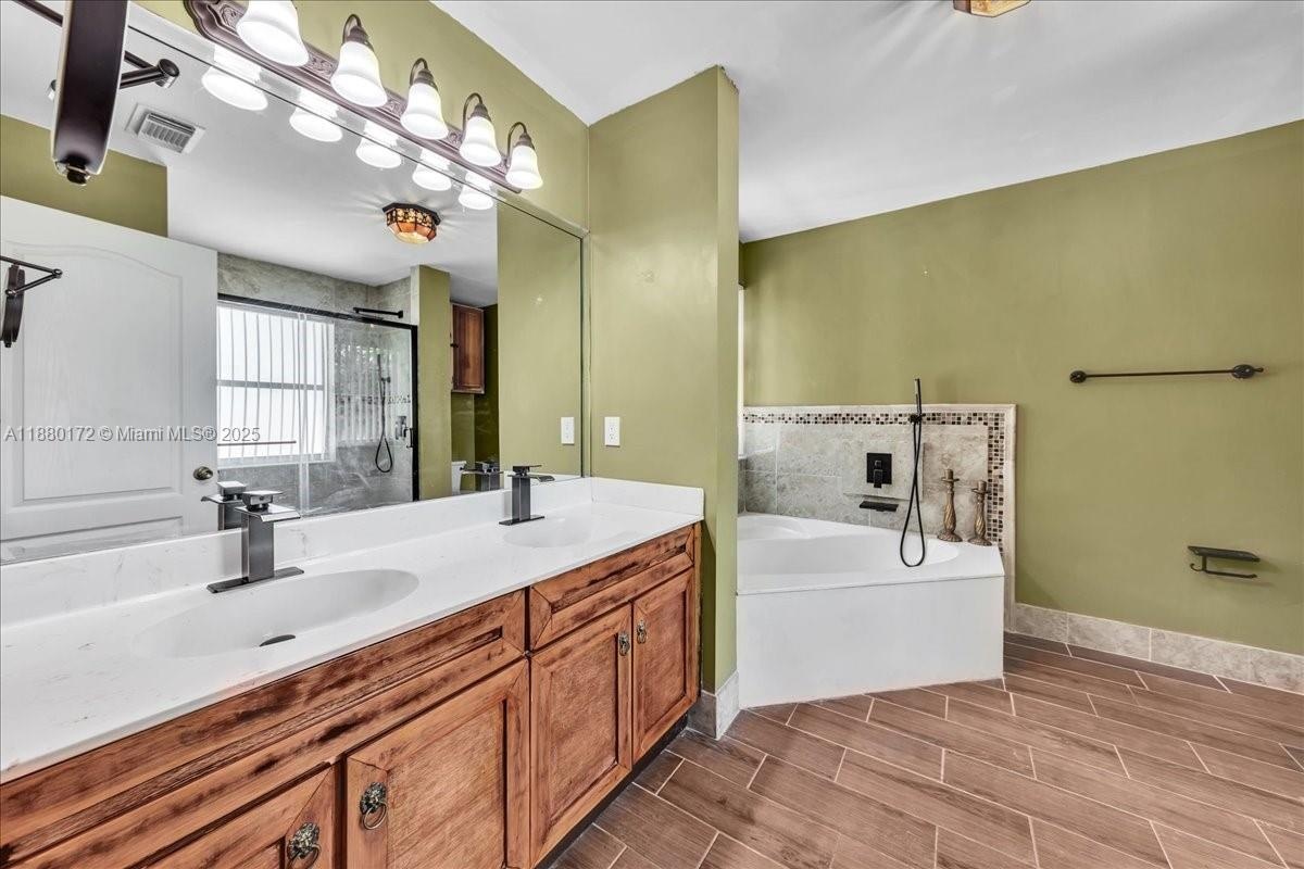 DescriptionThis beautiful 3-bed, 3-bath home located in the desirable Huntington community. Designed for comfort and style, it features spacious bedrooms and bathrooms, volume ceilings, and huge windows that fill the interior with natural light. The convenient layout includes one bedroom and full bath on the first floor, perfect for guests or multigenerational living. Accordion shutters provide peace of mind, while a 2-car garage and additional driveway parking add practicality. Step outside to your private retreat with a sparkling pool and gazebo, ideal for entertaining or relaxing. Located just minutes from top-rated schools, shopping, dining, major highways, and a short drive to Miramar Regional Park and other local attractions, this home combines lifestyle and convenience in one perfect package.Virtual Tour: https://my.matterport.com/show/?m=PNDGzVn9HJqAmenities- Blinds