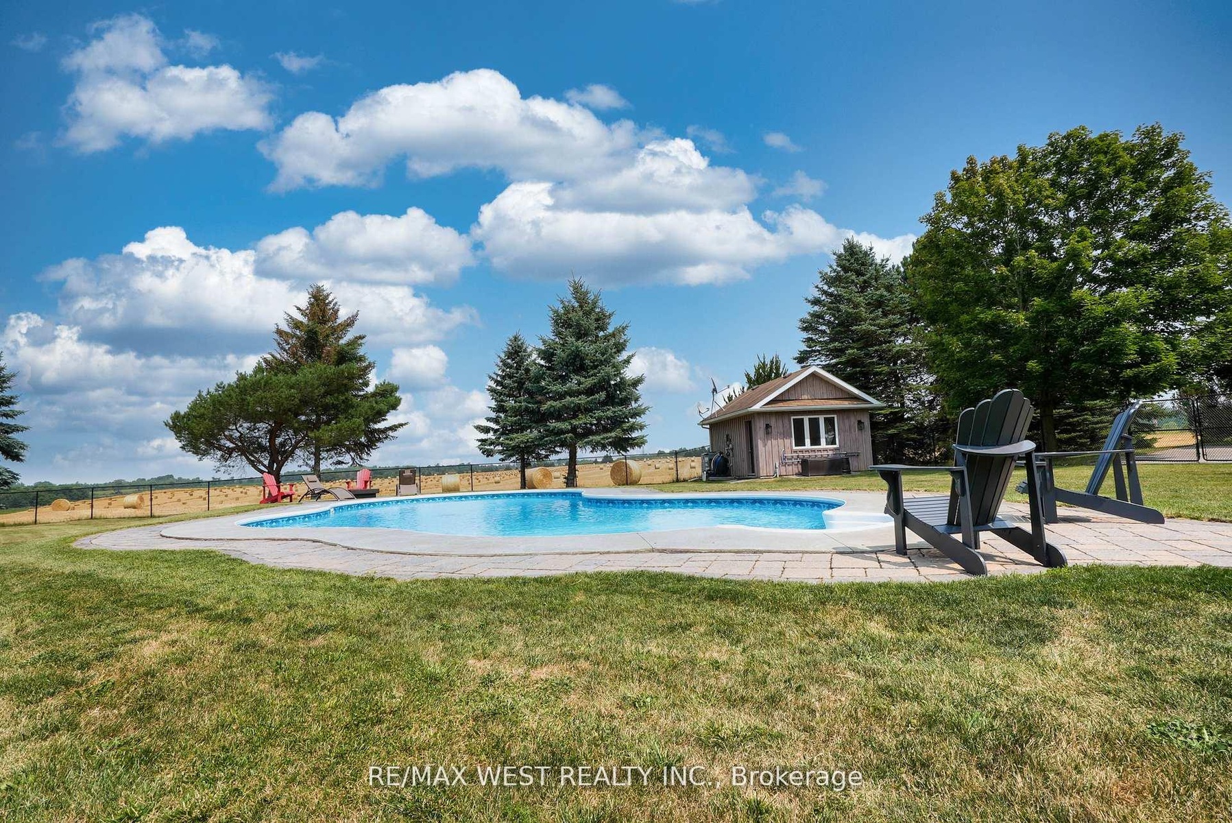 Luxurious private country retreat on 1.46 acres with breathtaking views. This executive 3+1 bedroom bungaloft offers approx. 2800 sq ft of beautifully finished living space, a 3-car garage, and a fully landscaped, fully fenced yard with an inground pool. Designed for todays lifestyle, this home offers the perfect blend of comfort and functionality with bright open-concept living areas, multiple walkouts, main floor laundry, and a detached studio that can serve as a poolside cabana, home office, or creative space. The fully finished walkout basement includes a rec room, home gym, additional bedroom and bathroom, ideal for in-law suite potential. Enjoy cozy evenings by the wood-burning fireplace and stove. With $$$ spent on recent upgrades and plenty of parking, this property is perfect for working, relaxing, entertaining, and making lasting family memories. A rare opportunity to own a luxurious country home that truly checks all the boxes while also only being minutes away from the hwy.