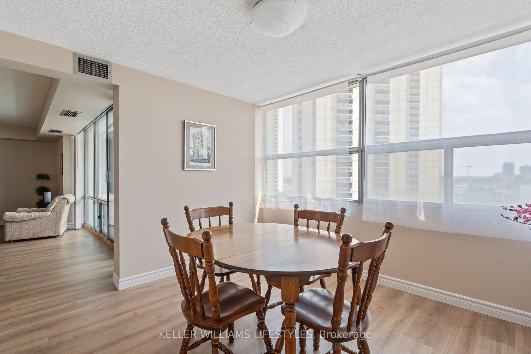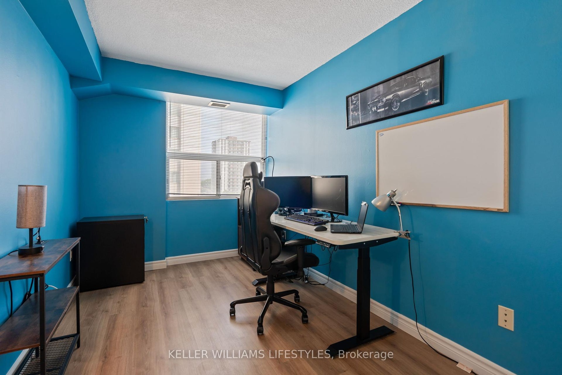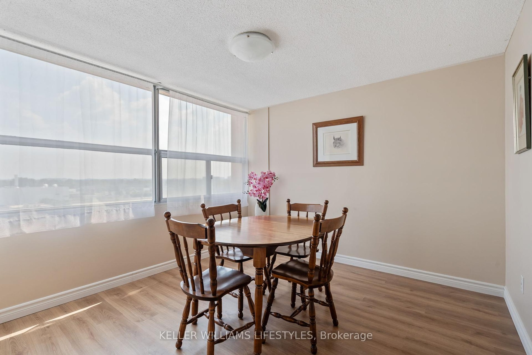 Welcome to 380 King Street in downtown London, ideally located on rapid transit routes and steps from shops, dining, and entertainment. This bright and spacious 6th-floor condominium offers two bedrooms, two full bathrooms, and a large covered balcony with plenty of sunshine and attractive city views. The generous primary bedroom includes an ensuite, while the second bedroom is perfect for guests, a home office, or additional living space. The unit features a spacious living room with an adjoining dining area, a functional kitchen, and a good-sized storage room that could be converted to in-suite laundry. Shared laundry facilities are also available in the building. Residents enjoy access to a variety of amenities, including a heated indoor pool, gym, fitness room, sauna, family events room, library, and beautifully maintained outdoor seating areas. Pets are welcome, making this an ideal home for animal lovers. The monthly condo fee covers heat, hydro, water, Rogers internet, cable TV and one underground parking space making for truly stress-free downtown living.