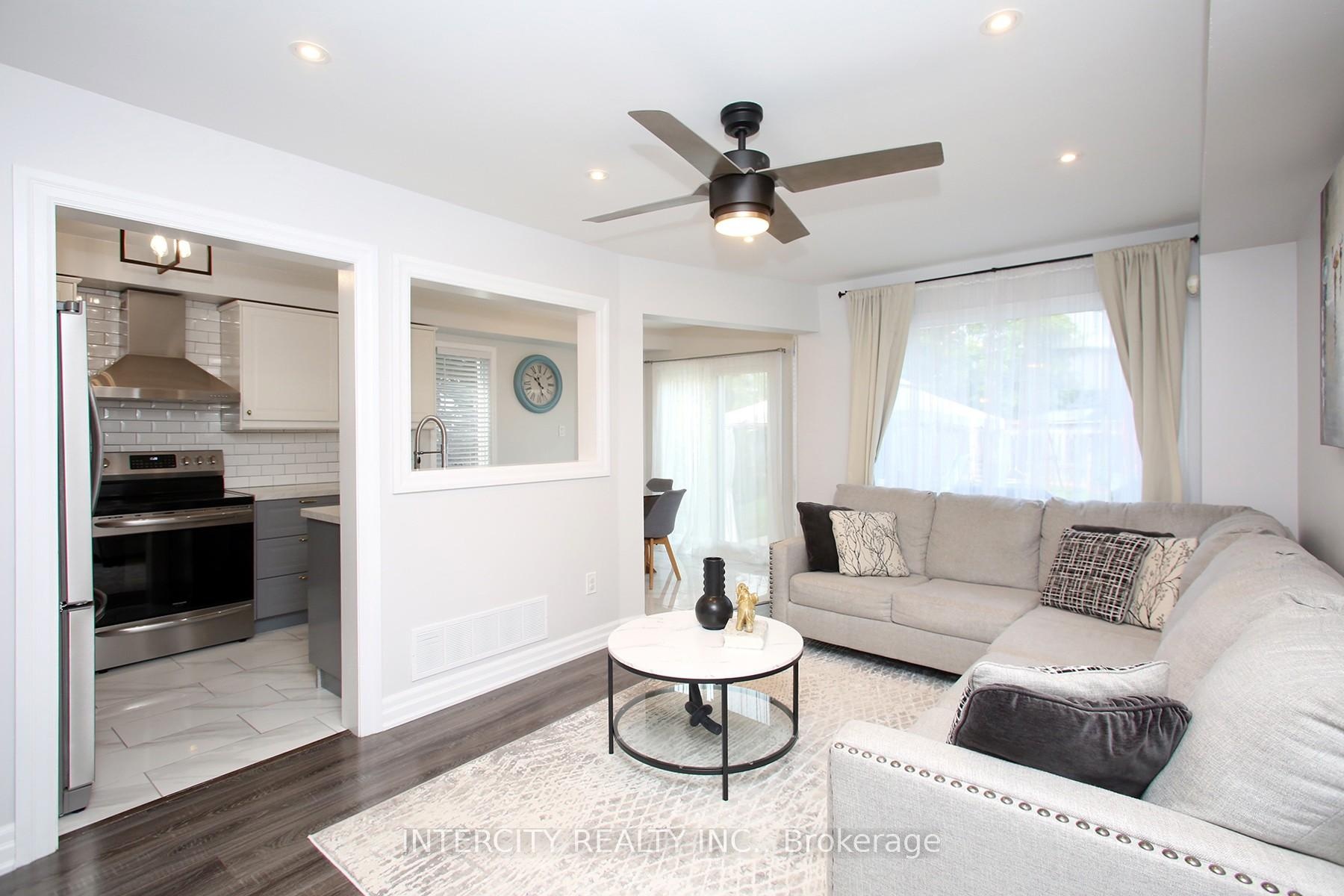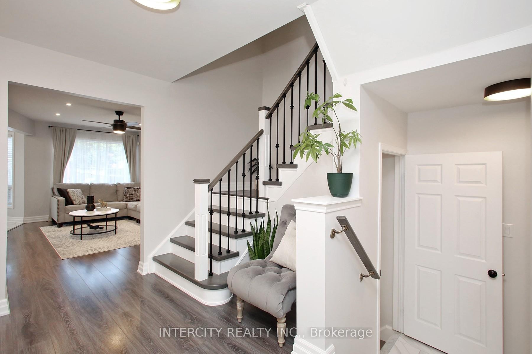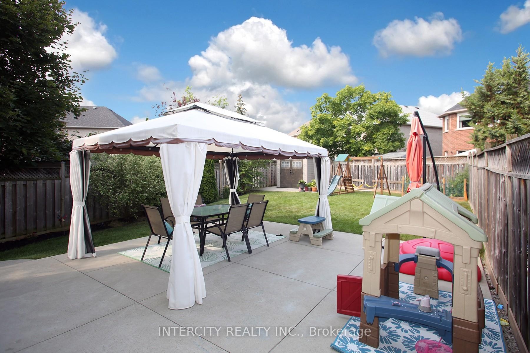 DescriptionPat Fera presents an exceptional renovated home on a rare premium pie-shaped lot in Bolton West most desired crescent! Discover this rare gem on a quiet street in one of Bolton's most desirable, family-friendly neighbourhoods. Situated on an irregular pie-shaped lot with a maximum depth of 149.13 ft and a rear width of 42.06 ft, this property offers a spacious backyard oasis that is ideal for entertaining, gardening, or outdoor living. Unlike many homes in the area, this lot does not back onto the railway lines, offering enhanced privacy and long term value. This home has been thoughtfully updated throughout, including a complete Kitchen renovation with new cabinets, Quartzite countertops, pot lights and ceramic flooring. Enjoy new premium laminate flooring on both main and second floors, a newly refinished staircase with hardwood and wrought iron balusters, and an upgraded powder room with new fixtures and marble flooring. The front entrance closet has been updated with modern doors for added style and function. Additional upgrades include R60- Value insulation in attic (2025), poured concrete front steps and walkway to backyard, and a large concrete patio with gazebo-perfect for hosting. The finished basement rec room is ideal for a children's play area or additional family space. Large windows throughout bring in natural light, and the landscaped front and backyard completes the curb appeal. Located near parks, top schools, conversation areas, and all local amenities- this is a turn-key opportunity in a highly sought-after pocket of Bolton West.Amenities- Auto Garage Door Remote