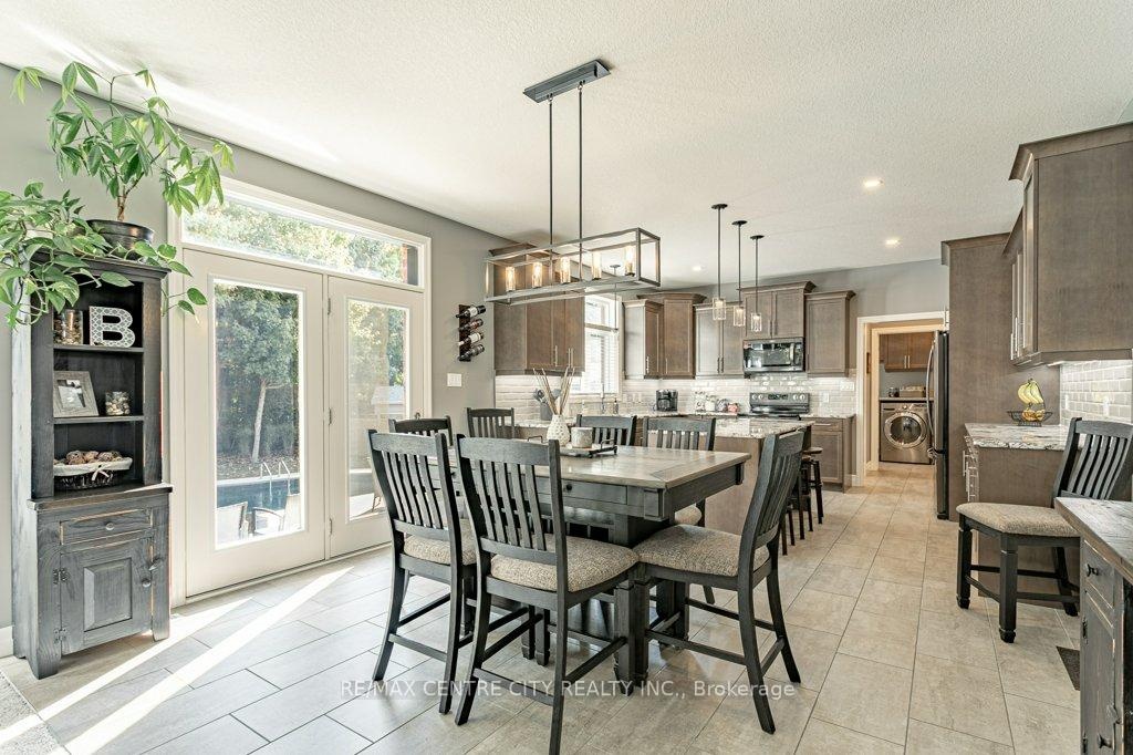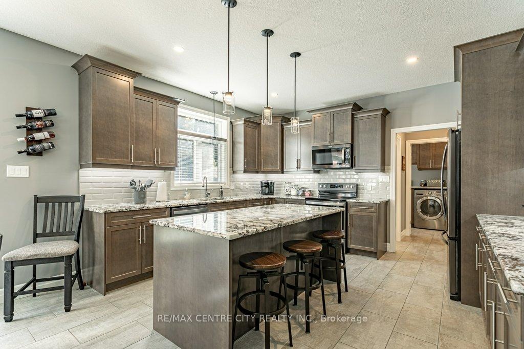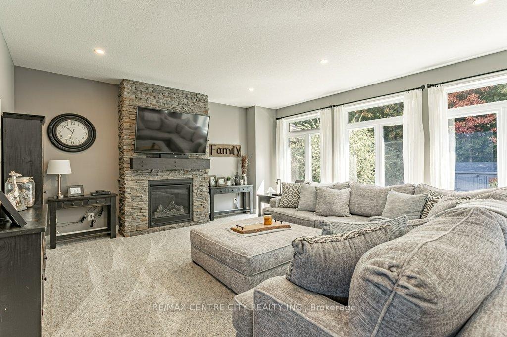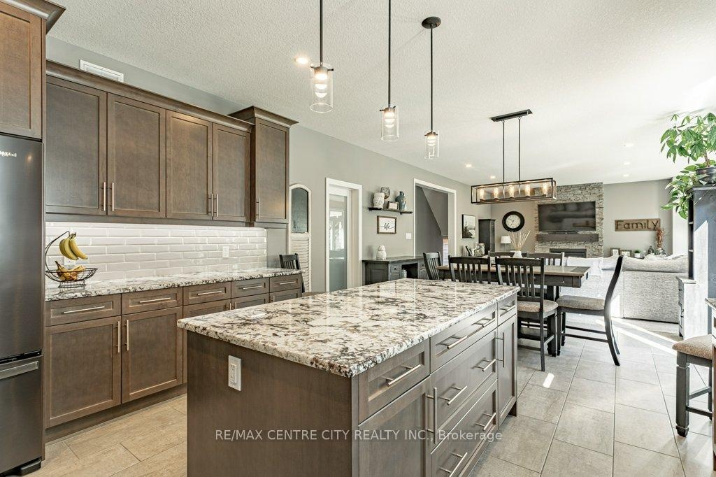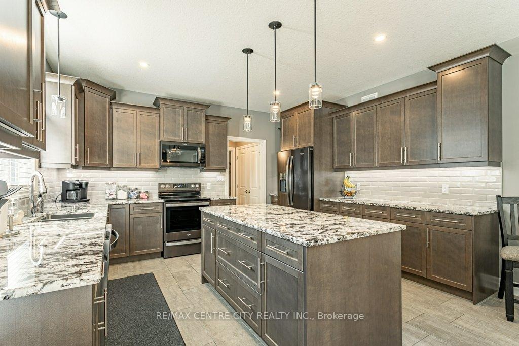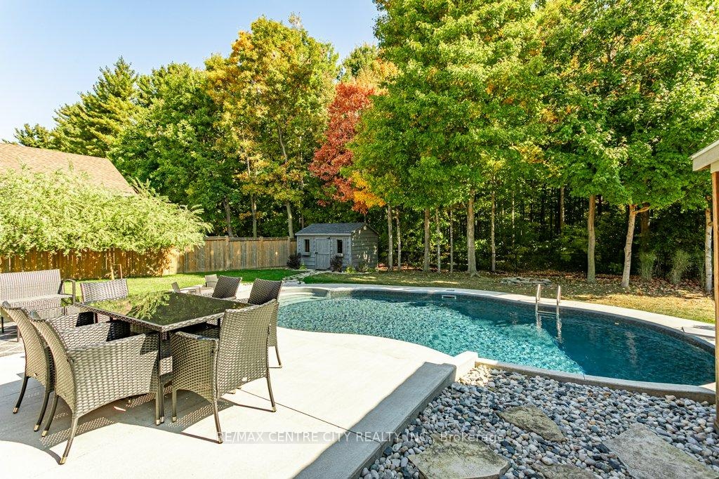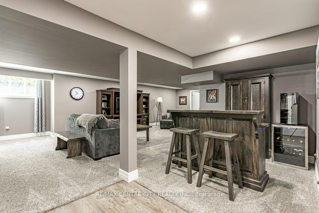 148 Elliott Trail, a stunning red-brick home located in the desirable Trails of Wye Creek neighbourhood in Thorndale, Ontario. This inviting 4 bed, 4 bath home boasts over 4000 sq. feet with a 3 car garage, perfect for those with multiple vehicles. Prepare to be captivated by the large family room, boasting a cozy gas fireplace and beautiful views through expansive windows that overlook your personal backyard paradise. The open-concept layout effortlessly blends socializing and functionality with the well-appointed kitchen, complete with ample storage, large counter space, and a convenient eat-in island. The main floor conveniently accommodates a laundry area. Upstairs, three out of the four bedrooms offer spacious walk-in closets, while the fourth bedroom features a charming alcove perfect for creating a separate workspace. The primary bedroom boasts its very own private 4-piece ensuite. Venture downstairs to discover a fully finished recreational space, complete with an elegant bar area. A finished den offers endless possibilities as a playroom, home gym, or whatever suits your imagination. With the powder room and three additional storage spaces, there's no need to clutter up your 3-car garage with miscellaneous items. Outside, revel in the delights of the fully fenced yard, where you can luxuriate in the allure of the in-ground pool or unwind by the cozy fire pit. For those in need of extra storage or workspace, a handy shed awaits your convenience.