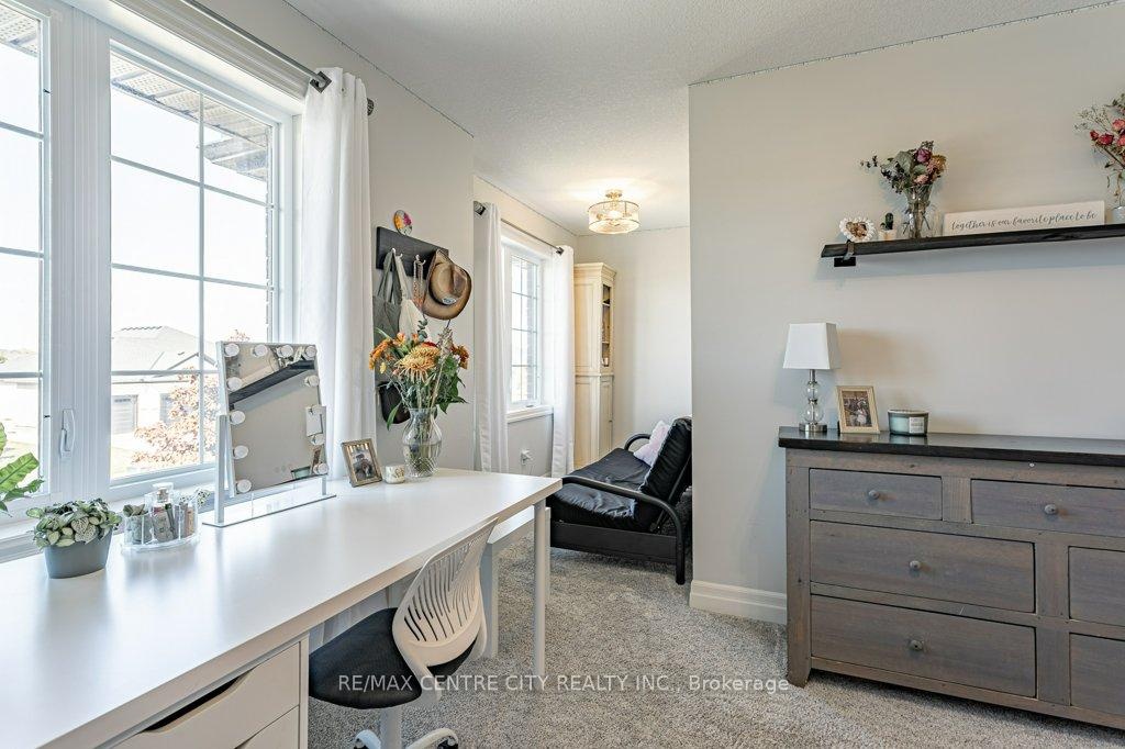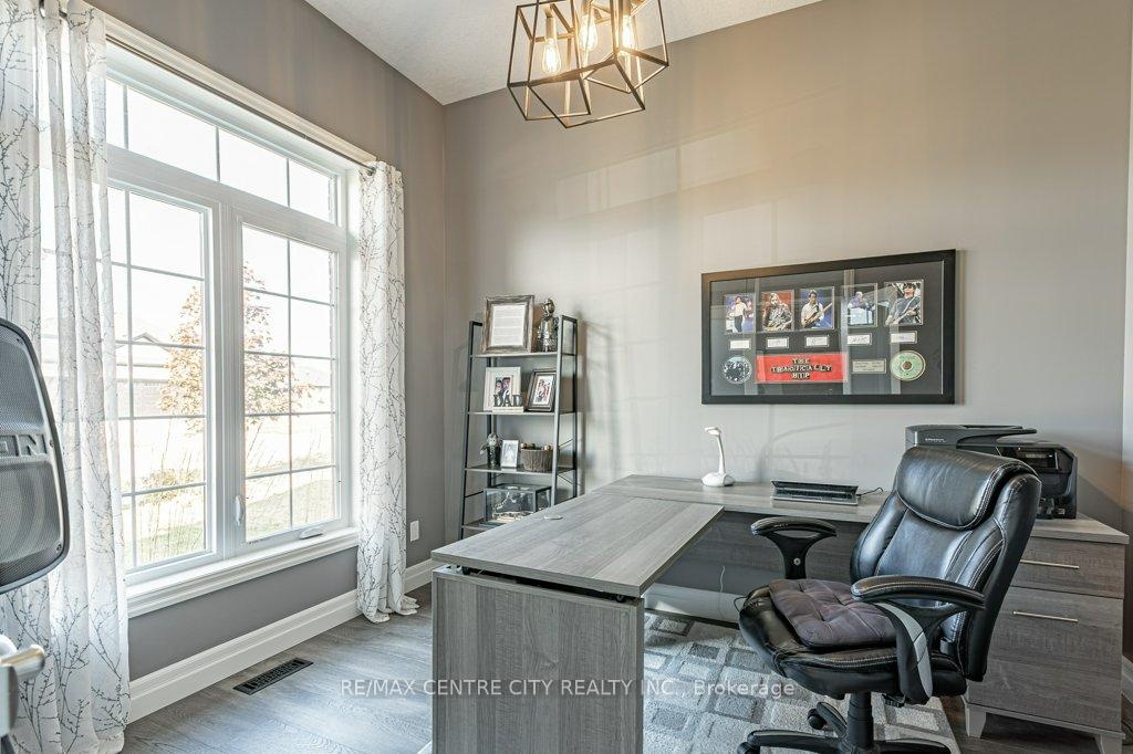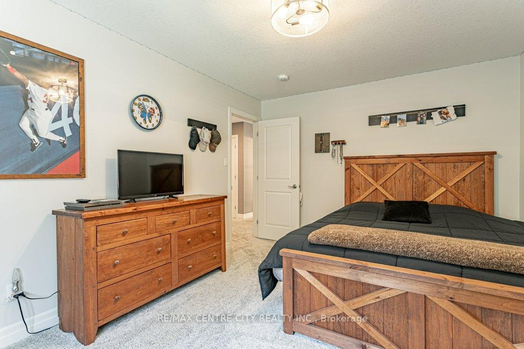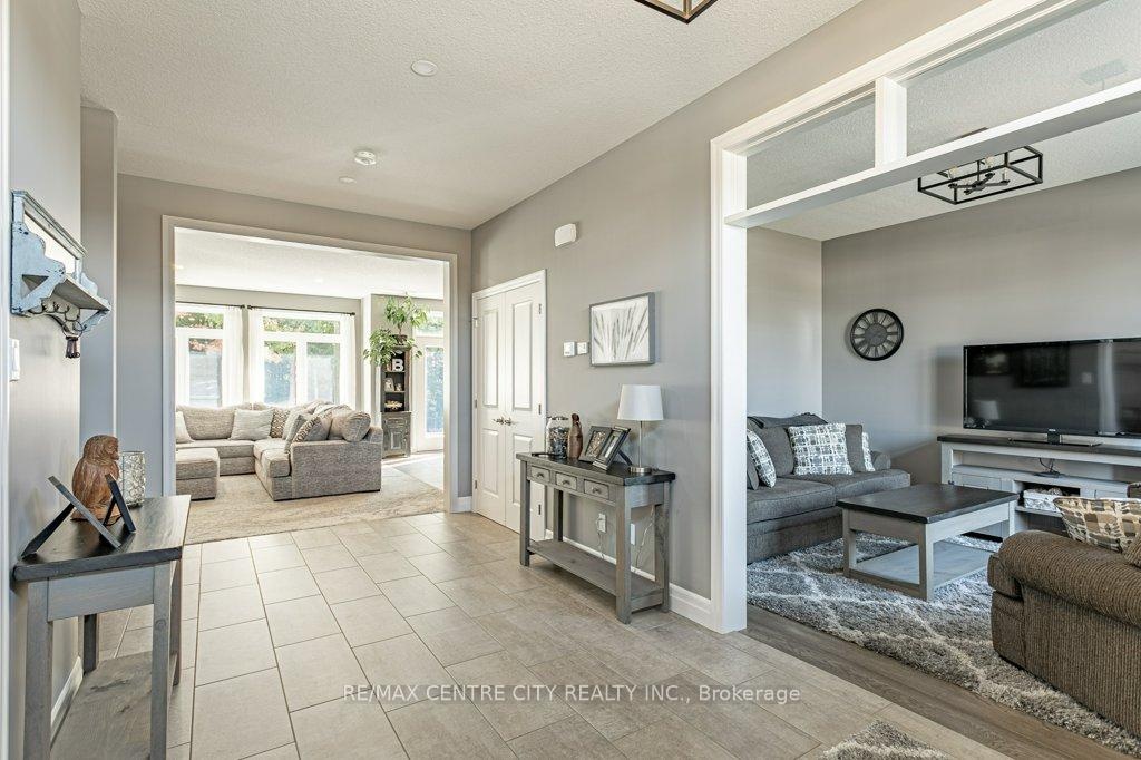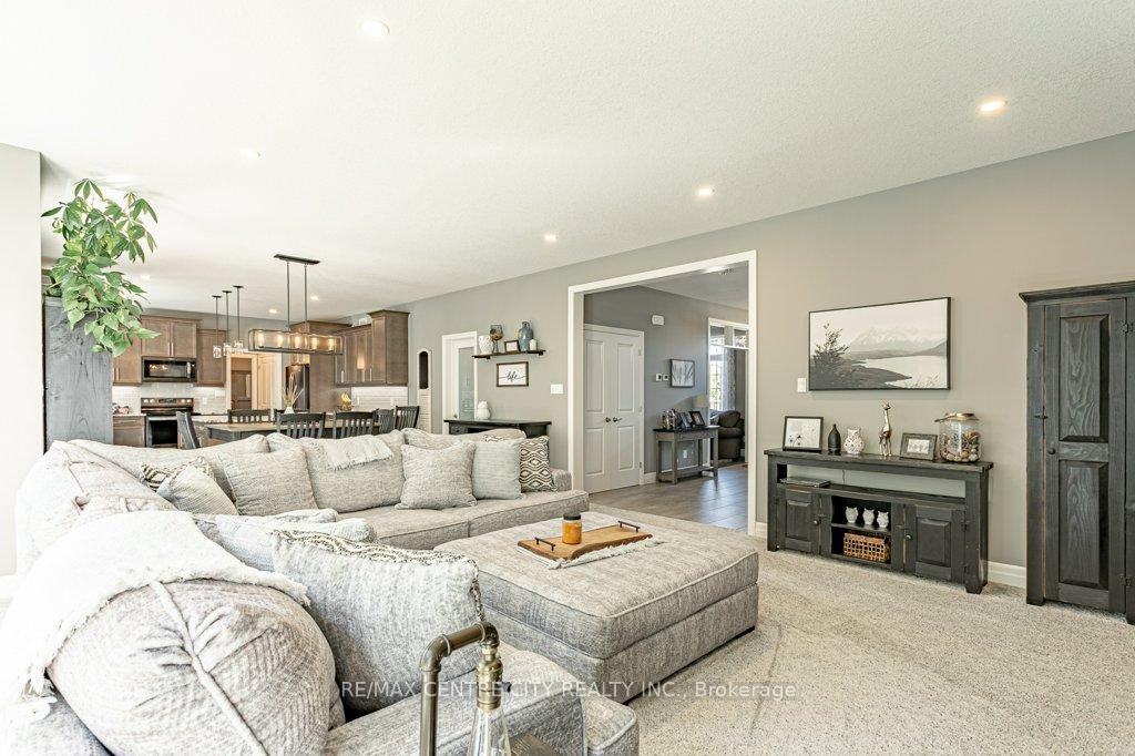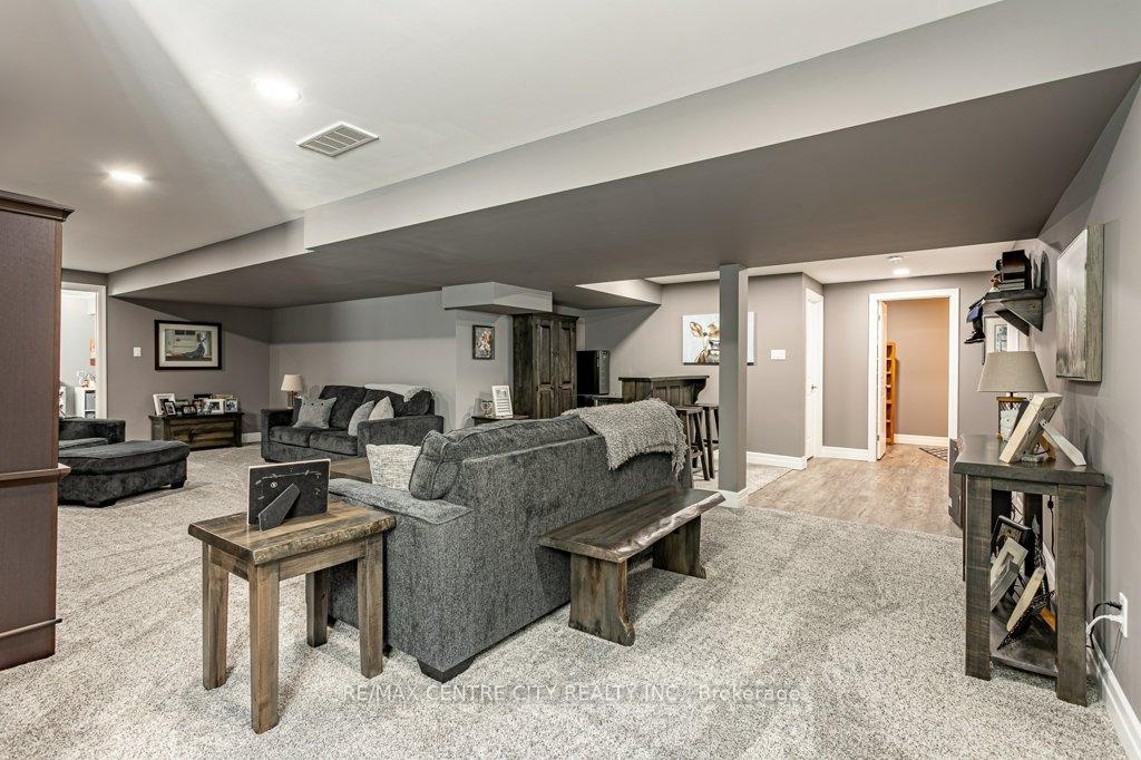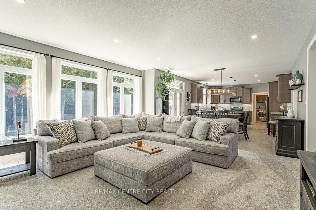 148 Elliott Trail, a stunning red-brick home located in the desirable Trails of Wye Creek neighbourhood in Thorndale, Ontario. This inviting 4 bed, 4 bath home boasts over 4000 sq. feet with a 3 car garage, perfect for those with multiple vehicles. Prepare to be captivated by the large family room, boasting a cozy gas fireplace and beautiful views through expansive windows that overlook your personal backyard paradise. The open-concept layout effortlessly blends socializing and functionality with the well-appointed kitchen, complete with ample storage, large counter space, and a convenient eat-in island. The main floor conveniently accommodates a laundry area. Upstairs, three out of the four bedrooms offer spacious walk-in closets, while the fourth bedroom features a charming alcove perfect for creating a separate workspace. The primary bedroom boasts its very own private 4-piece ensuite. Venture downstairs to discover a fully finished recreational space, complete with an elegant bar area. A finished den offers endless possibilities as a playroom, home gym, or whatever suits your imagination. With the powder room and three additional storage spaces, there's no need to clutter up your 3-car garage with miscellaneous items. Outside, revel in the delights of the fully fenced yard, where you can luxuriate in the allure of the in-ground pool or unwind by the cozy fire pit. For those in need of extra storage or workspace, a handy shed awaits your convenience.