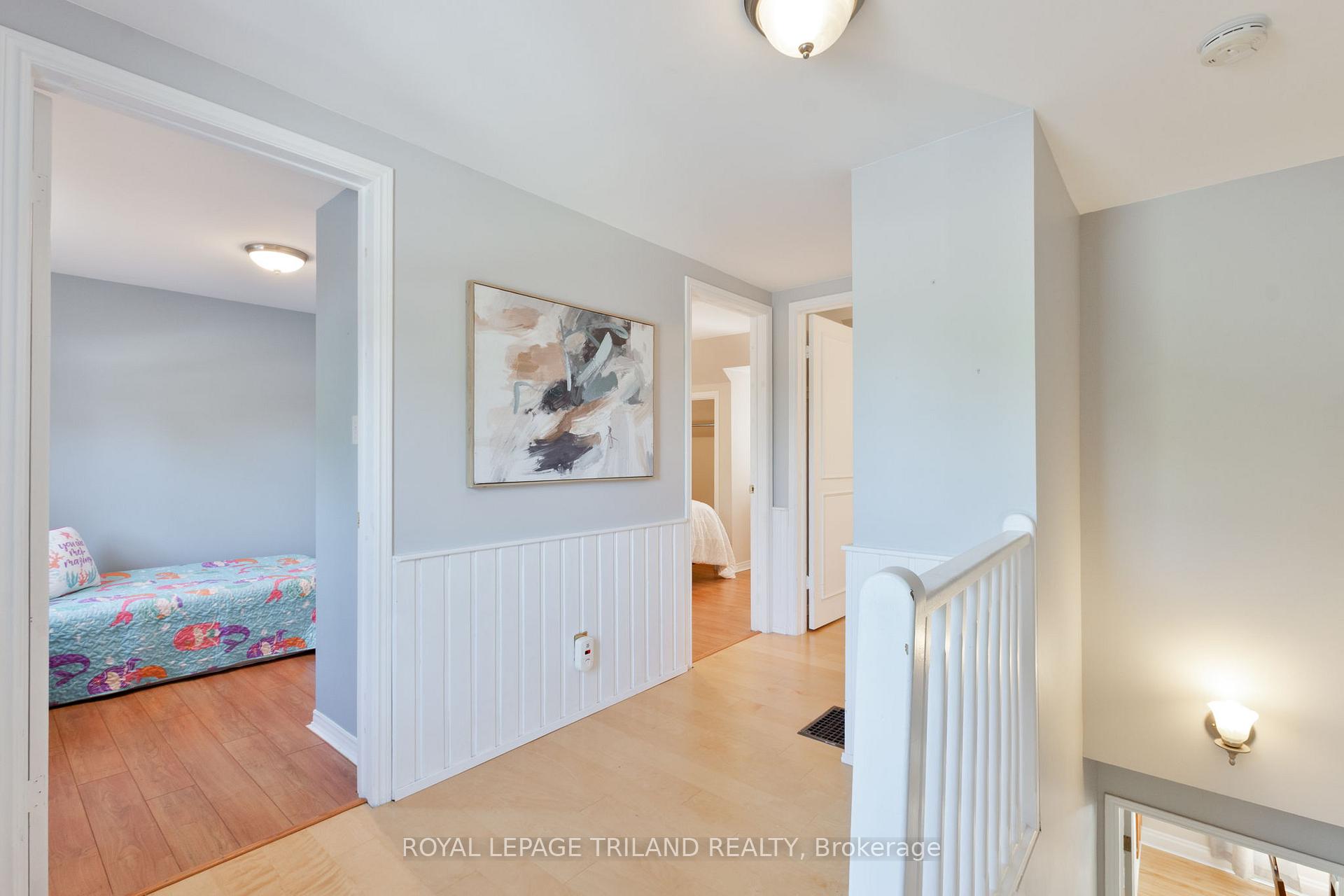 DescriptionWelcome to 130 Duchess Avenue in the heart of Lucan. This charming 1.5 storey detached home sits proudly on a large 70 by 90 foot corner lot, offering both space and convenience just steps from Wilberforce Elementary School and all the amenities of Main Street. With approximately 1,290 square feet above grade plus an additional 457 square feet of finished space (Matterport measurements) in the lower level, this home is designed for family living. A heated, L-shaped attached garage with inside entry and a spacious mudroom ensures daily convenience, while the large front porch and meticulous landscaping welcomes guests in style. The main floor is bright and inviting thanks to oversized windows and a thoughtful layout. The living and formal dining rooms showcase beautiful hardwood flooring, while a galley-style kitchen provides plenty of cabinet and counter space. A full 4-piece bathroom and a versatile bedroom or office complete the main level. Upstairs, you'll find three generously sized bedrooms with ample storage. The lower level expands the living space with a large rec room, fifth bedroom (or storage), multiple windows that bring in natural light, and a laundry/utility area with a 3-piece bathroom. Step outside to a large fenced yard perfect for kids, pets, or entertaining. The updated sundeck (2025) offers the ideal spot for summer gatherings, and a storage shed adds extra practicality. Major mechanicals have also been updated in 2025, including the furnace, central air conditioning, and owned hot water tank, giving you peace of mind for years to come. Situated in a family-friendly neighbourhood, this home is walking distance to Wilberforce Elementary, Lucan's parks, shops, and dining. With no carpets throughout, plenty of natural light, and flexible living spaces, 130 Duchess Avenue is the perfect blend of comfort, functionality, and small-town charm.Amenities- Auto Garage Door Remote