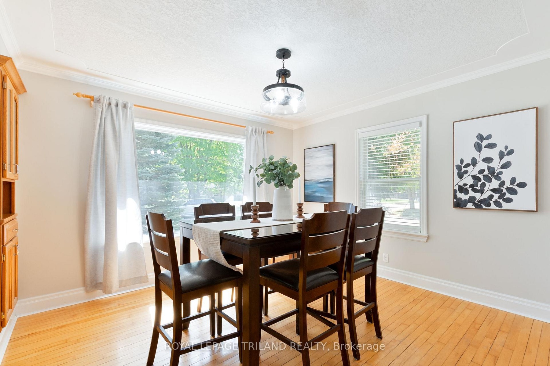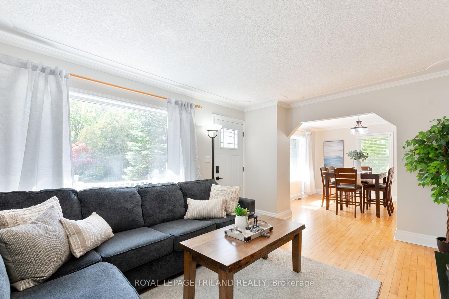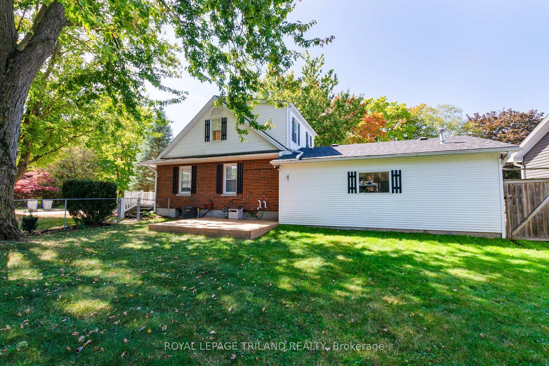 Welcome to 130 Duchess Avenue in the heart of Lucan. This charming 1.5 storey detached home sits proudly on a large 70 by 90 foot corner lot, offering both space and convenience just steps from Wilberforce Elementary School and all the amenities of Main Street. With approximately 1,290 square feet above grade plus an additional 457 square feet of finished space (Matterport measurements) in the lower level, this home is designed for family living. A heated, L-shaped attached garage with inside entry and a spacious mudroom ensures daily convenience, while the large front porch and meticulous landscaping welcomes guests in style. The main floor is bright and inviting thanks to oversized windows and a thoughtful layout. The living and formal dining rooms showcase beautiful hardwood flooring, while a galley-style kitchen provides plenty of cabinet and counter space. A full 4-piece bathroom and a versatile bedroom or office complete the main level. Upstairs, you'll find three generously sized bedrooms with ample storage. The lower level expands the living space with a large rec room, fifth bedroom (or storage), multiple windows that bring in natural light, and a laundry/utility area with a 3-piece bathroom. Step outside to a large fenced yard perfect for kids, pets, or entertaining. The updated sundeck (2025) offers the ideal spot for summer gatherings, and a storage shed adds extra practicality. Major mechanicals have also been updated in 2025, including the furnace, central air conditioning, and owned hot water tank, giving you peace of mind for years to come. Situated in a family-friendly neighbourhood, this home is walking distance to Wilberforce Elementary, Lucan's parks, shops, and dining. With no carpets throughout, plenty of natural light, and flexible living spaces, 130 Duchess Avenue is the perfect blend of comfort, functionality, and small-town charm.