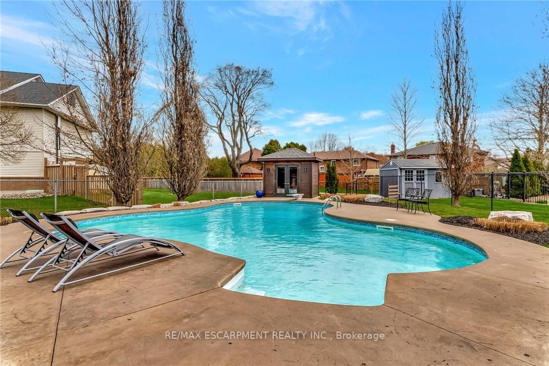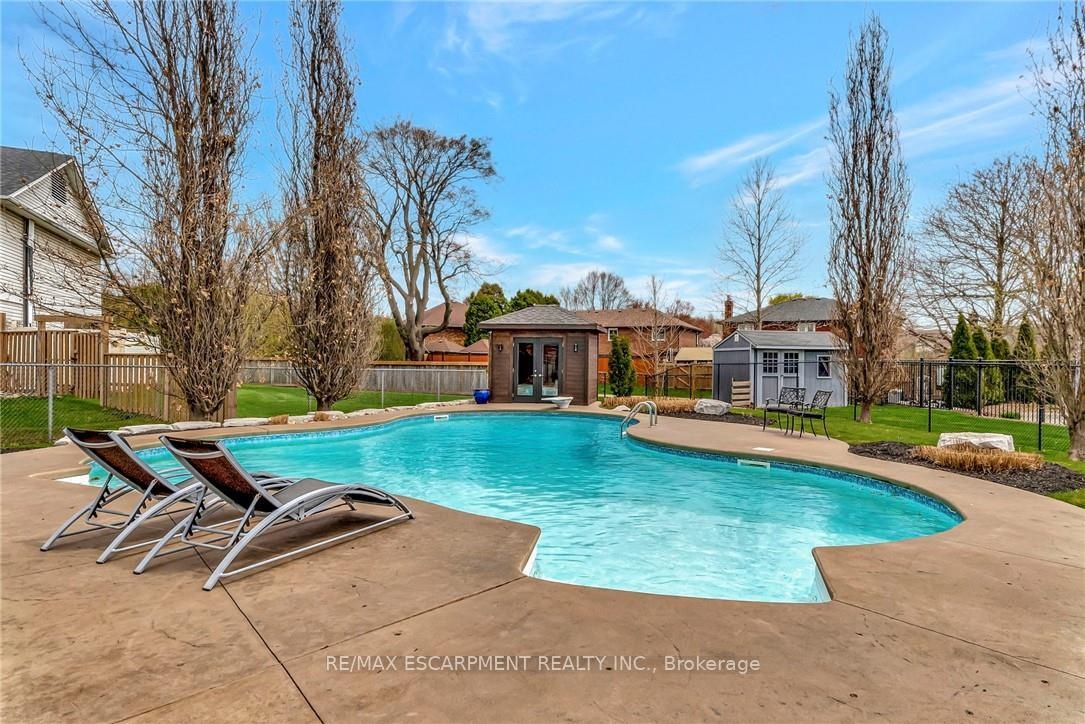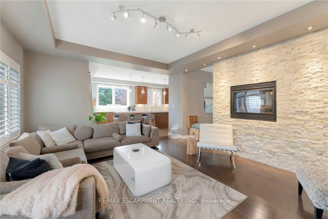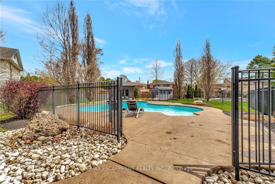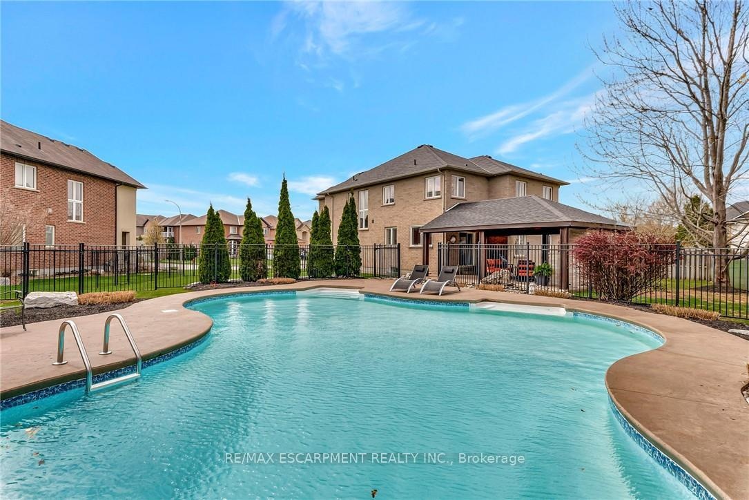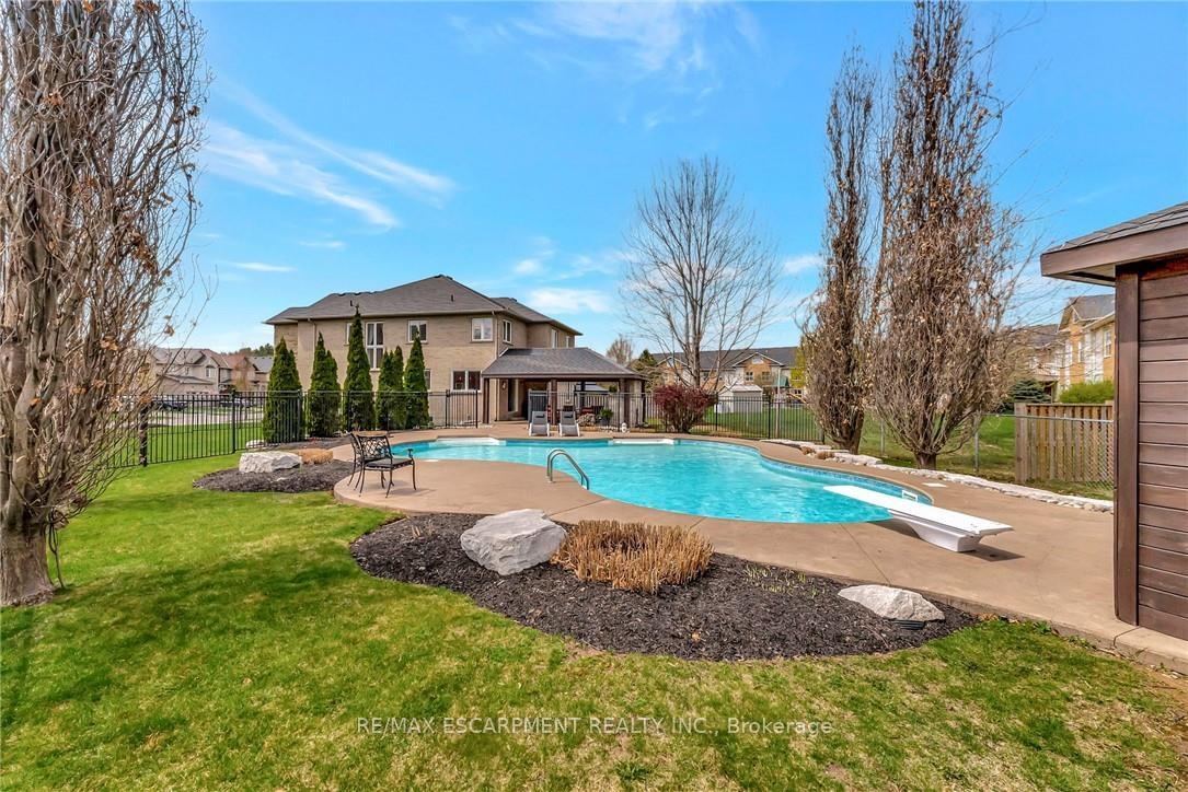 Welcome to 349 Valridge Drive in Ancaster, the home that offers space, beauty and a back yard oasis you're going to fall in love with. Built in 2009, this very unique home with custom floor plan sits on a spacious irregular shaped lot in the very popular Parkview Heights neighbourhood. Upon entering this home with approx 3300 sqft of total living space, you'll find an extra spacious foyer that leads you through the unique floorplan that includes ample pot lighting, a gorgeous kitchen with 12 Island, quartz countertops, stainless appliances with gas stove, and loads of natural light. The adjacent family room with double sided GFP shared with the dining room make this a great space for entertaining and family gatherings. Other main floor features include a beautiful 2pc Powder Room with accent lighting, and Mud Room that leads you to the double car Garage. As you make your way up the carpet free staircase with wainscoting accents, you'll find a very functional second floor that includes 4 bedrooms and Laundry Area. The spacious Primary Bedroom comes with a 5pc Ensuite Bath, WIC and California Shutters. The other 3 bedrooms also have California Shutters, with 2 of the 3 bedrooms having WIC of their own. The finished basement with GFP allows for additional living space for the kids, or for the entire family to spend time together. The stunning back yard oasis is where you'll spend your summer days and nights, whether it be swimming and lounging around the inground pool, or entertaining family and friends under the covered patio watching TV in front of the cozy GFP. Other highlights of this stunning home include, updated Furnace & A/C (2022), Sprinkler System, Cold Cellar and TV hookup above outdoor patio Fireplace. Home is all brick, stone & stucco.