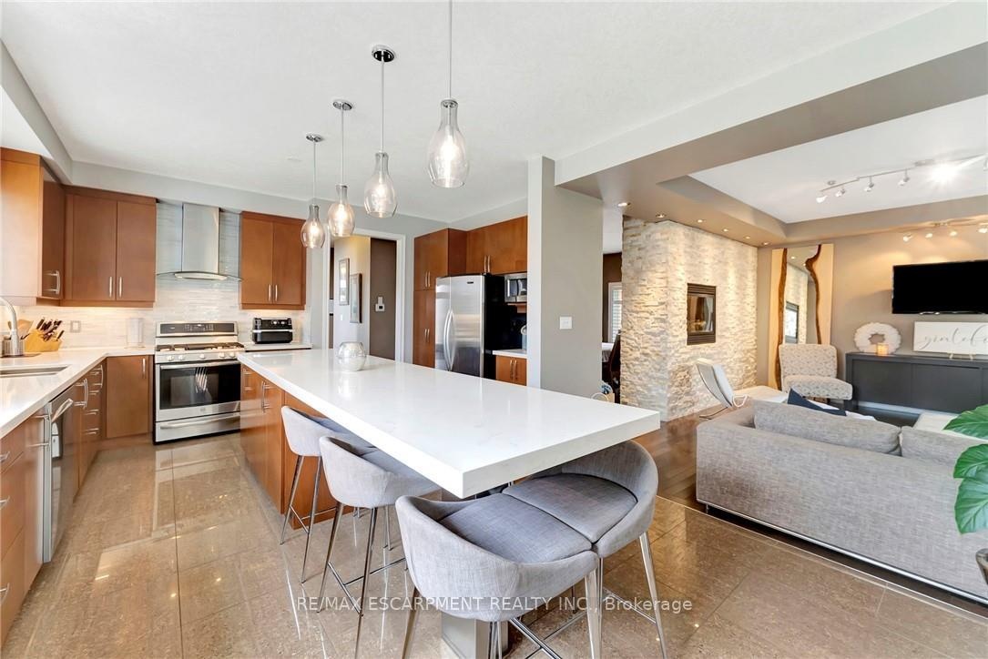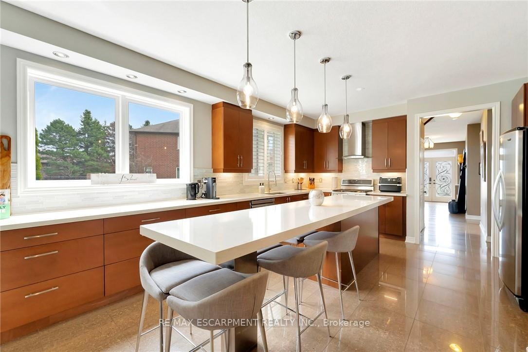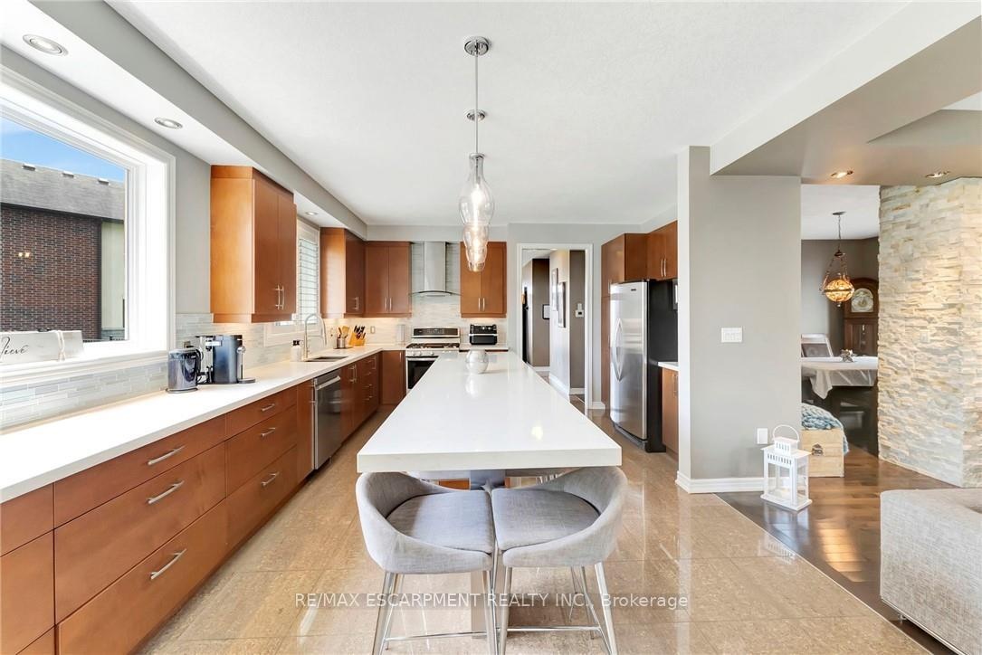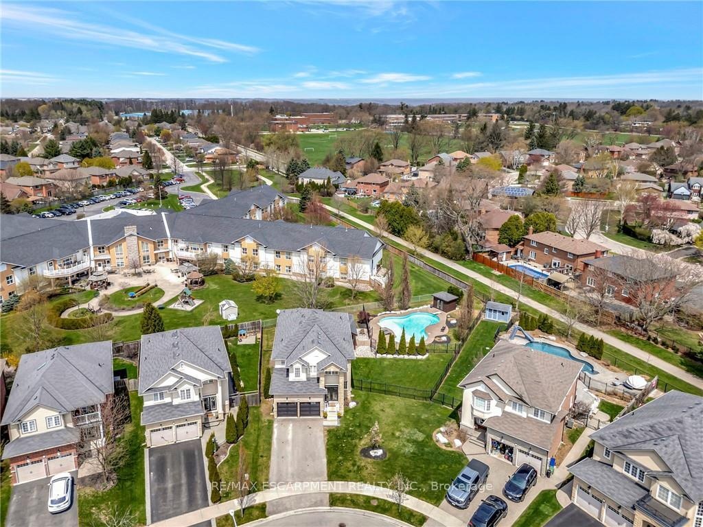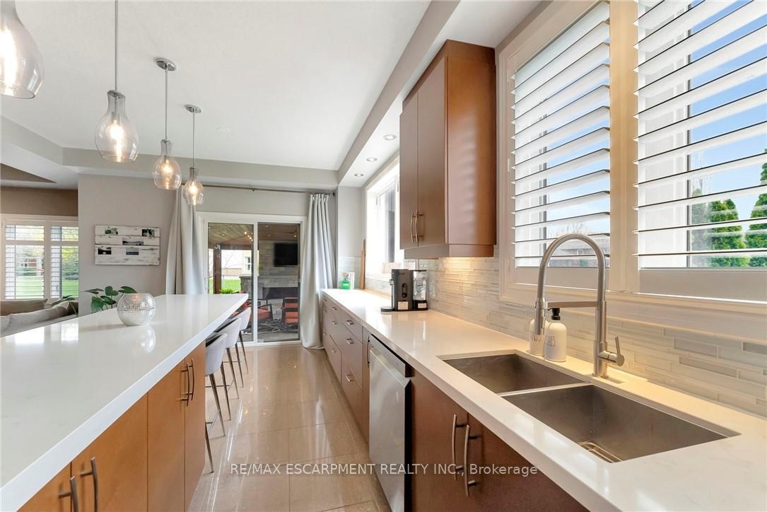Welcome to 349 Valridge Drive in Ancaster, the home that offers space, beauty and a back yard oasis you're going to fall in love with. Built in 2009, this very unique home with custom floor plan sits on a spacious irregular shaped lot in the very popular Parkview Heights neighbourhood. Upon entering this home with approx 3300 sqft of total living space, you'll find an extra spacious foyer that leads you through the unique floorplan that includes ample pot lighting, a gorgeous kitchen with 12 Island, quartz countertops, stainless appliances with gas stove, and loads of natural light. The adjacent family room with double sided GFP shared with the dining room make this a great space for entertaining and family gatherings. Other main floor features include a beautiful 2pc Powder Room with accent lighting, and Mud Room that leads you to the double car Garage. As you make your way up the carpet free staircase with wainscoting accents, you'll find a very functional second floor that includes 4 bedrooms and Laundry Area. The spacious Primary Bedroom comes with a 5pc Ensuite Bath, WIC and California Shutters. The other 3 bedrooms also have California Shutters, with 2 of the 3 bedrooms having WIC of their own. The finished basement with GFP allows for additional living space for the kids, or for the entire family to spend time together. The stunning back yard oasis is where you'll spend your summer days and nights, whether it be swimming and lounging around the inground pool, or entertaining family and friends under the covered patio watching TV in front of the cozy GFP. Other highlights of this stunning home include, updated Furnace & A/C (2022), Sprinkler System, Cold Cellar and TV hookup above outdoor patio Fireplace. Home is all brick, stone & stucco.