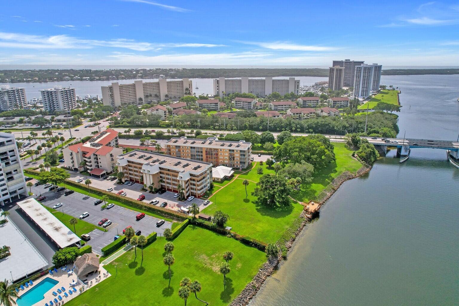 The seller has paid all assessments--move right in and enjoy this amazing community! Take in breathtaking views from the spacious balcony as boats glide by. The beautifully maintained grounds feature a lush lawn overlooking the water and the North Palm Beach Country Club Golf Course. Relax under majestic banyan trees, fish off the dock, or host a cookout with community grills. The sparkling heated pool is perfect for unwinding or socializing, while the clubhouse offers amenities like a kitchen, small gym, and library. Residents also enjoy access to the town's library, tennis courts, golf course, Olympic-sized pool, and seasonal events. With yoga, pickleball, book clubs, and activities for all ages, North Palm Beach is a charming town with an exceptional quality of life!course, and an