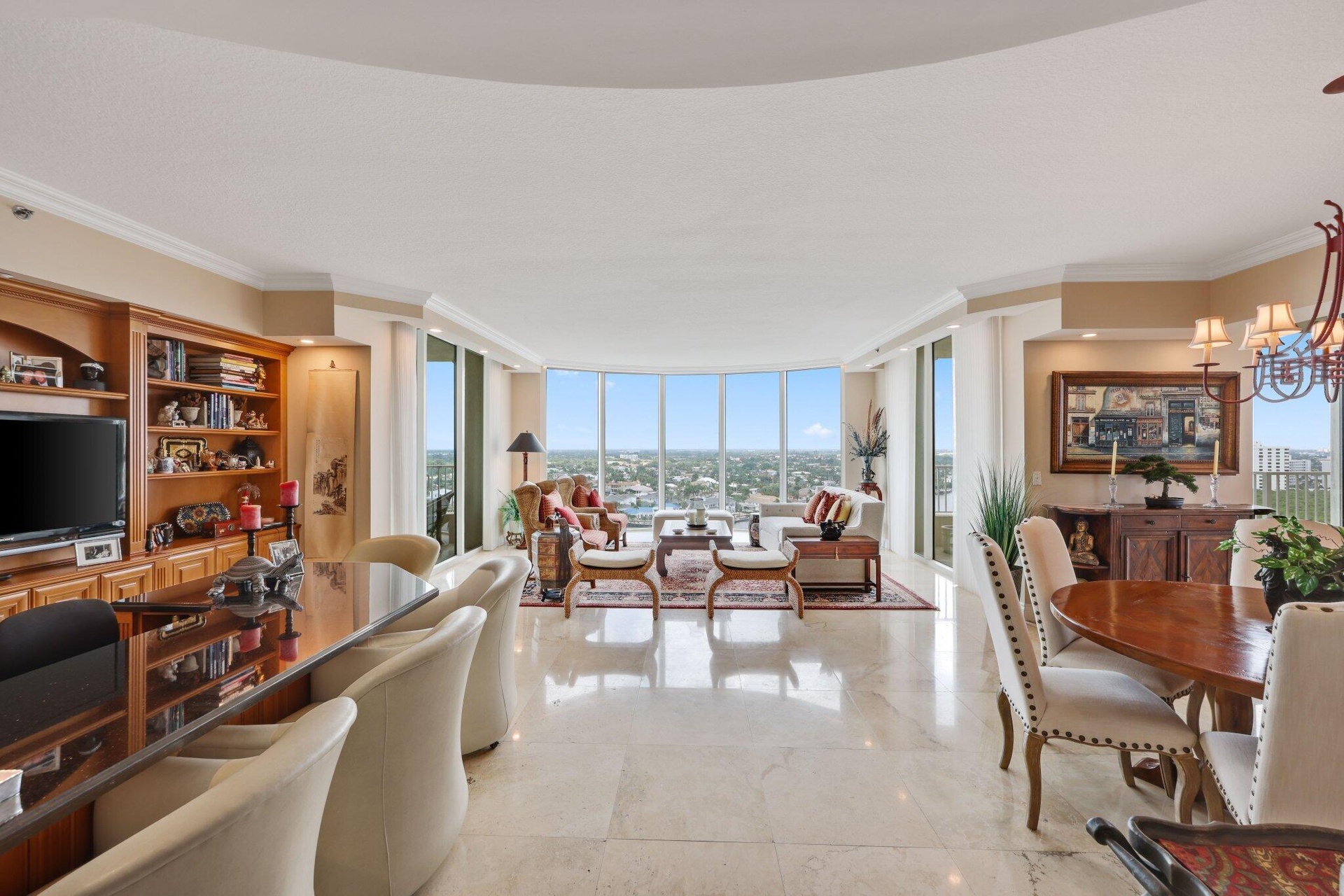 Grand Firenze, the largest floor plan in Toscana West, offering 3 beds, 3.1 baths, and spectacular ocean & Intracoastal views from every room through floor-to-ceiling impact glass. Two oversized balconies provide exceptional outdoor living. Light-filled interior features marble floors, open living/dining, and a sleek kitchen with wood cabinetry, stone counters, and stainless appliances. Primary suite has private balcony, custom closets, and spa-style bath with dual vanities, soaking tub & shower. Toscana amenities include 24-hr concierge, manned gate, valet, private beach club, 3 pools with towel & water service, fitness center, tennis, BBQ areas, billiards, card rooms, and social events. Two garage spaces included. Minutes to Delray's Atlantic Ave, Boca's Mizner Park, dining & shopping.