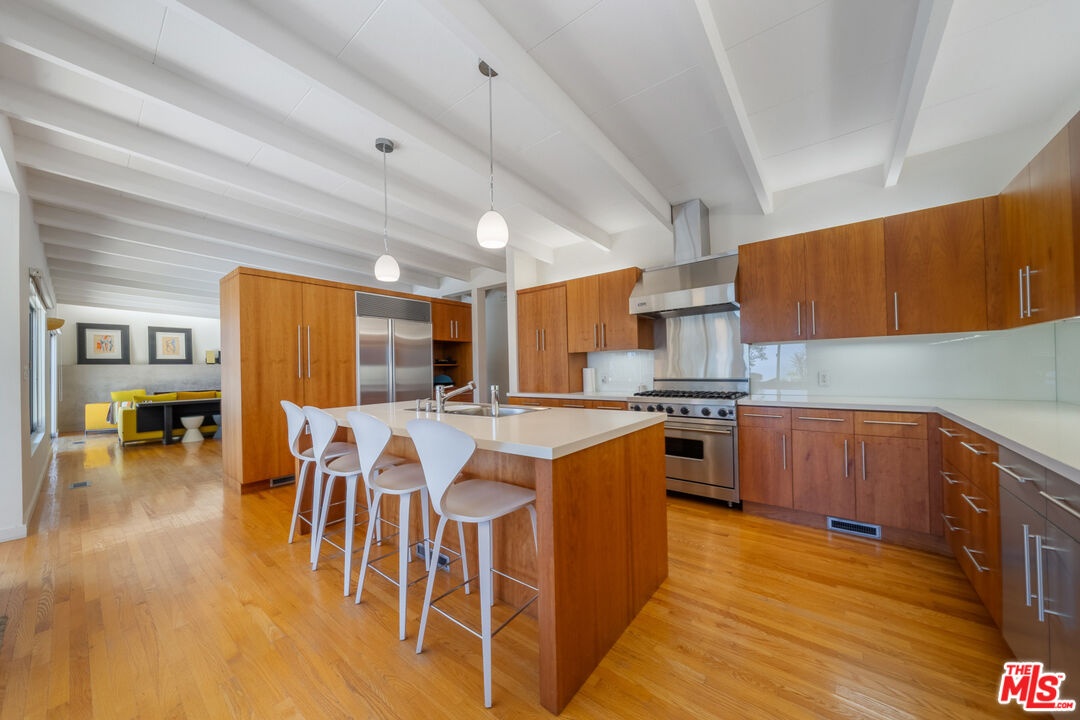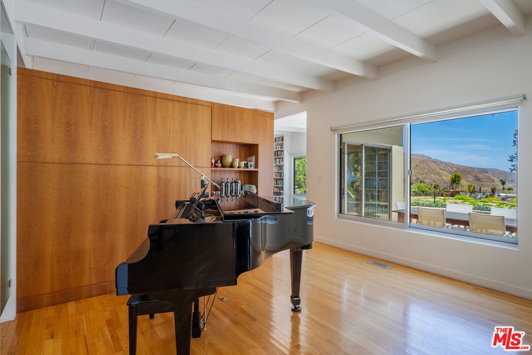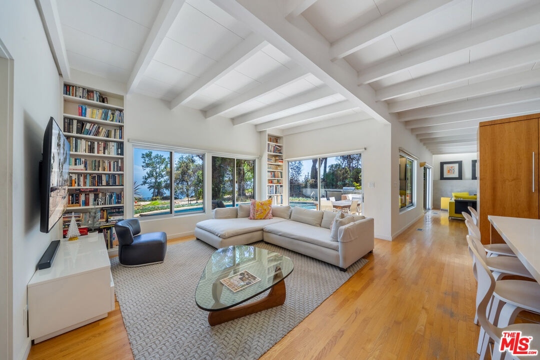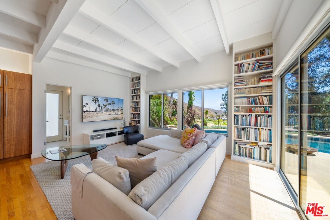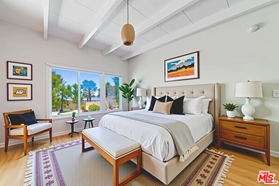 DescriptionPerched above the Pacific in Malibu's coveted Big Rock community, this extraordinary Mid-Century Modern home offers a rare fusion of sophistication and serenity. Owned by the same family for many years and painstakingly improved with meticulous care year after year, the residence embodies both timeless craftsmanship and modern refinement. Thoughtfully expanded with intentional square footage, it now includes a versatile flex space and dedicated office, complementing the home's original architectural integrity. Designed with the essence of a Zen retreat, this ultra-private 4-bedroom, 3-bath gated masterpiece once featured in Sunset Magazine effortlessly balances organic textures with timeless contemporary elegance. Every detail has been carefully curated, from warm wood finishes and artisanal tile work to striking designer accents and top-tier materials that elevate the home's aesthetic. Walls of glass invite natural light to cascade through open-concept living spaces, creating a seamless indoor-outdoor flow that enhances both intimacy and entertainment. Step outside to a resort-style oasis featuring a saltwater pool and spa, lush grassy yard, an incredible ocean view, fire pit lounge, and an alfresco kitchen with a fully equipped BBQ all framed by ocean breezes and tranquil greenery. Ascend to the private rooftop deck for panoramic sunrises and sunsets that stretch across the Pacific Ocean and Queen's Necklace. Sustainable living is also woven into the home's core, with full solar power, two Tesla Powerwalls, an EV charging station, and dual gated access to a circular driveway. Ideally located just minutes from Santa Monica, central Malibu, and some of California's most iconic beaches and hiking trails, this is coastal living at its most refined.Amenities- beamed ceilings