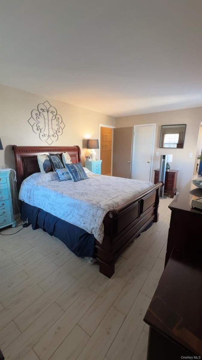 - Bedroom featuring light tile patterned floors and stainless steel refrigerator
