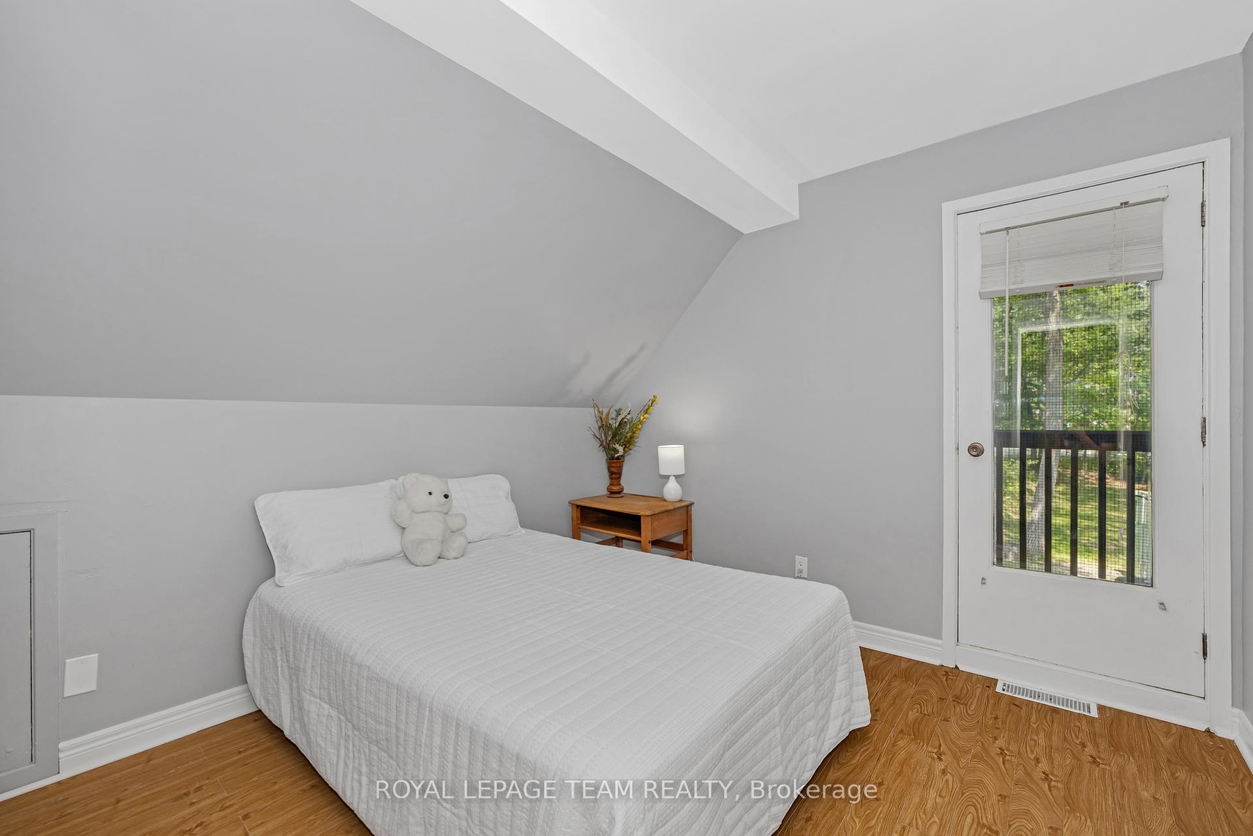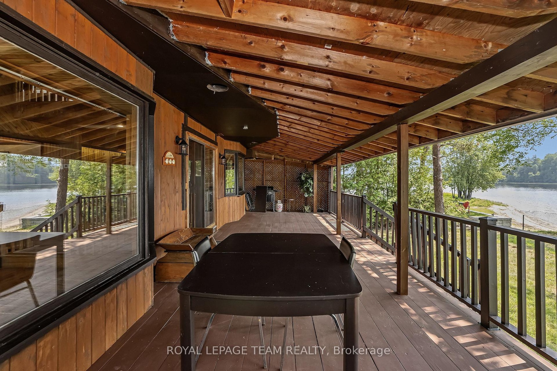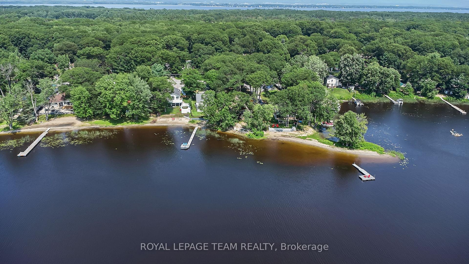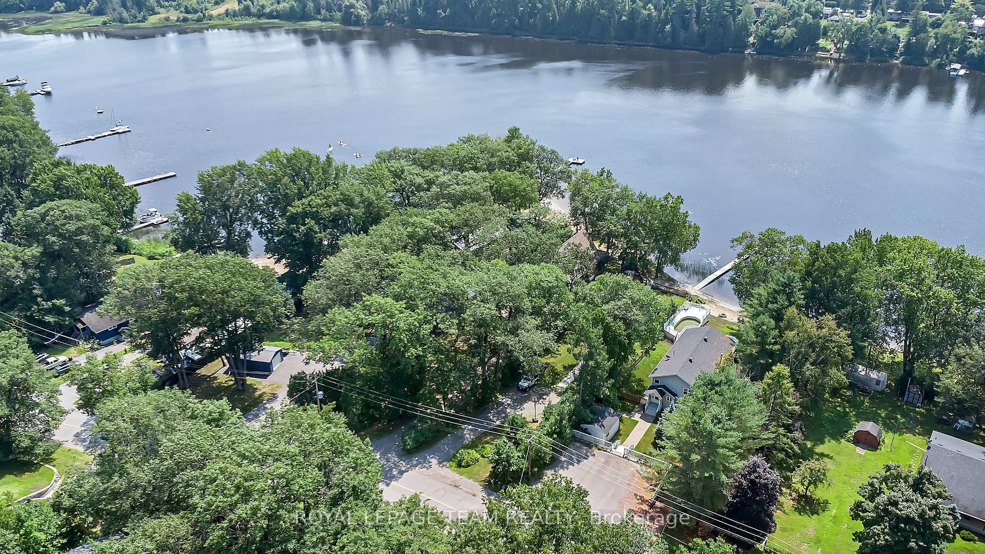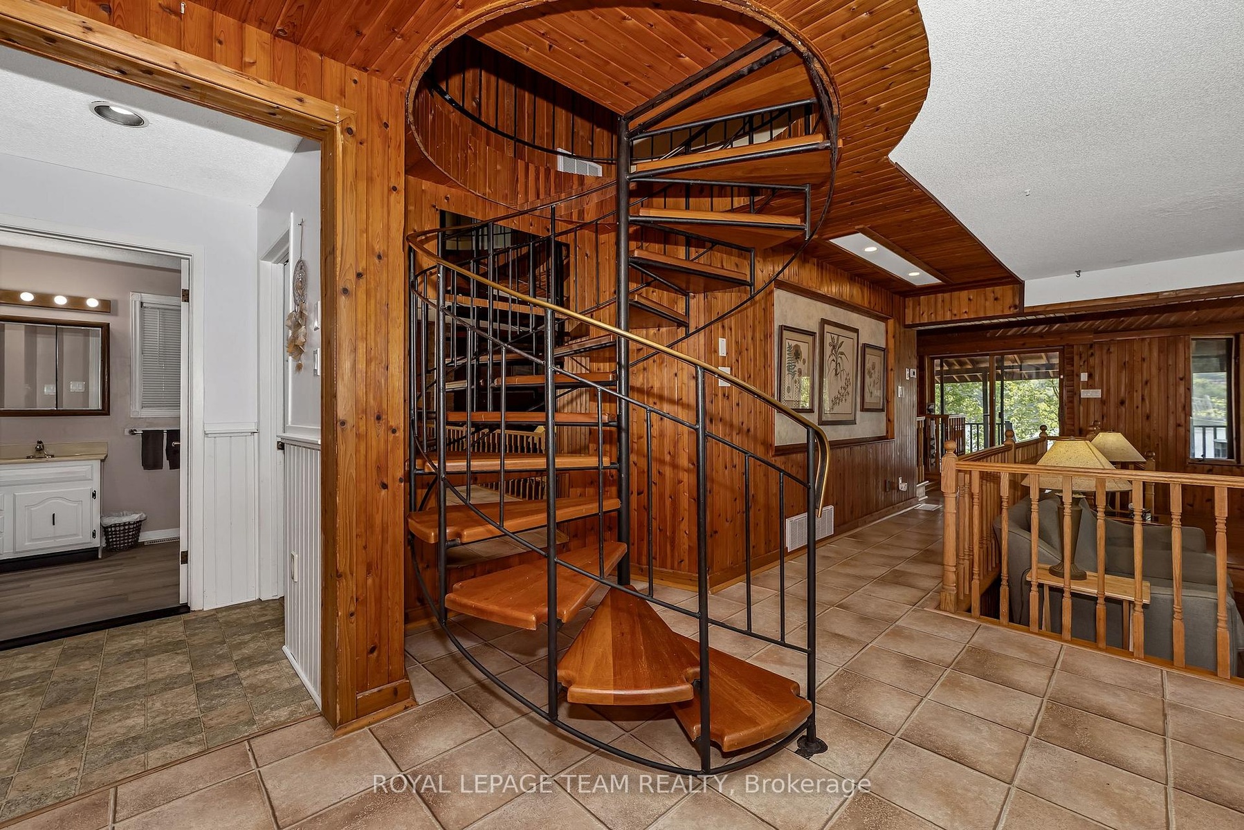 Situated on a point with a south-facing waterfront, 1210 Bayview Drive has views of the river and spectacular sunsets. Set safely outside the floodplain, the property is treed with mature oaks and maples. Built in the early seventies, this home features original wood accents and unique architectural details, with an open-concept main living area and two flexible rooms that are perfect for a home office or library. The main floor also features a den/family or bedroom, a full bathroom, and a laundry room. The circular staircase leads to the second floor, where the primary bedroom retreat features a skylight for stargazing, a private three-piece en-suite, and access to a balcony with river views. Two additional bedrooms also open onto a balcony at the front of the home, and they share a 2-piece bath. Entertain or unwind on the covered back deck, where the ebb and flow of river life provides the perfect backdrop. The unfinished basement, accessible via exterior cellar doors, offers additional storage and or a workshop. Outdoors, a movable storage container has storage space for garden tools and recreational toys. This property has tremendous potential, whether you use it as your cottage or principal residence, you can enjoy year-round waterfront living. With Kanata only 25 minutes away, you have the ideal blend of natural tranquillity and city convenience.