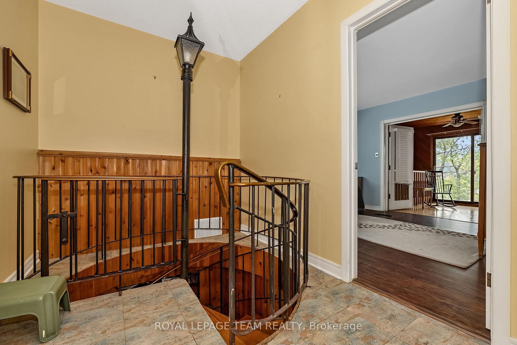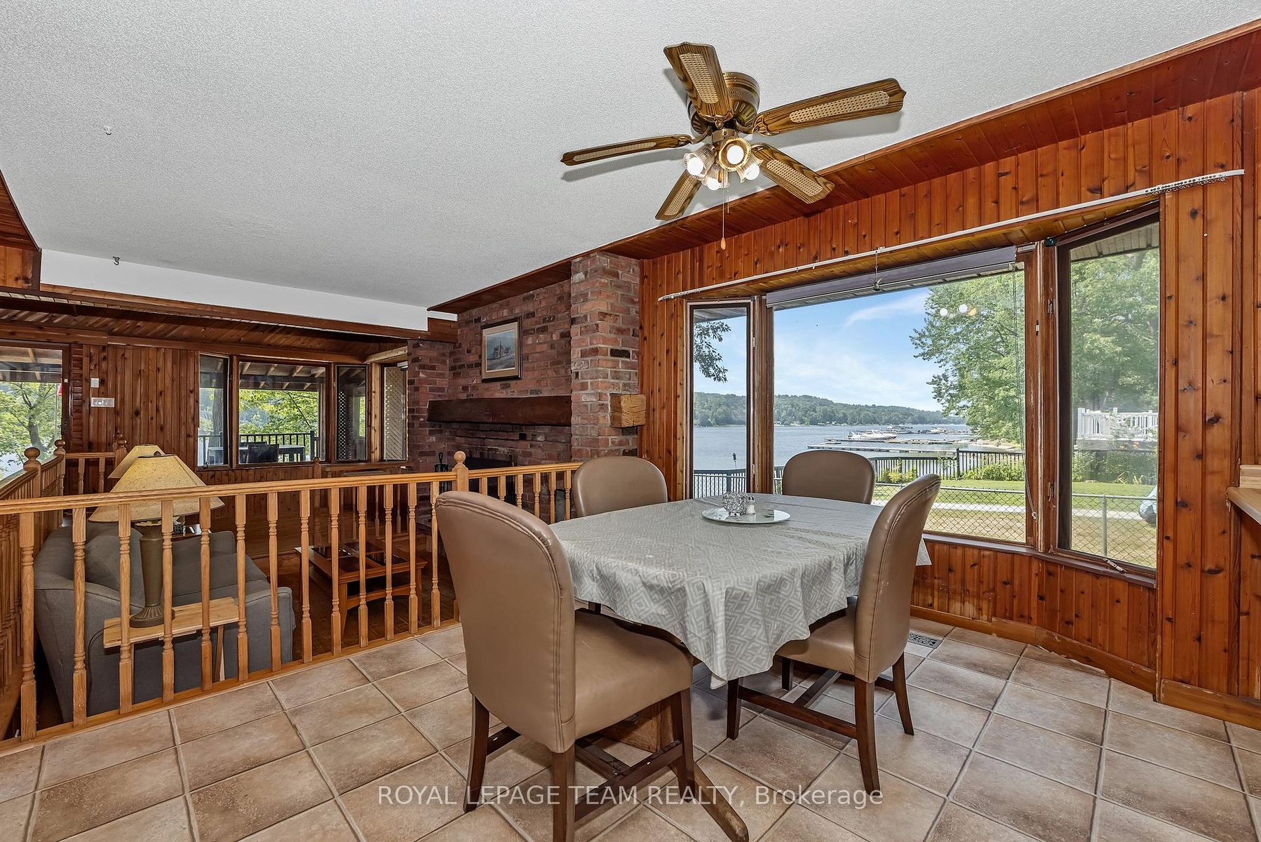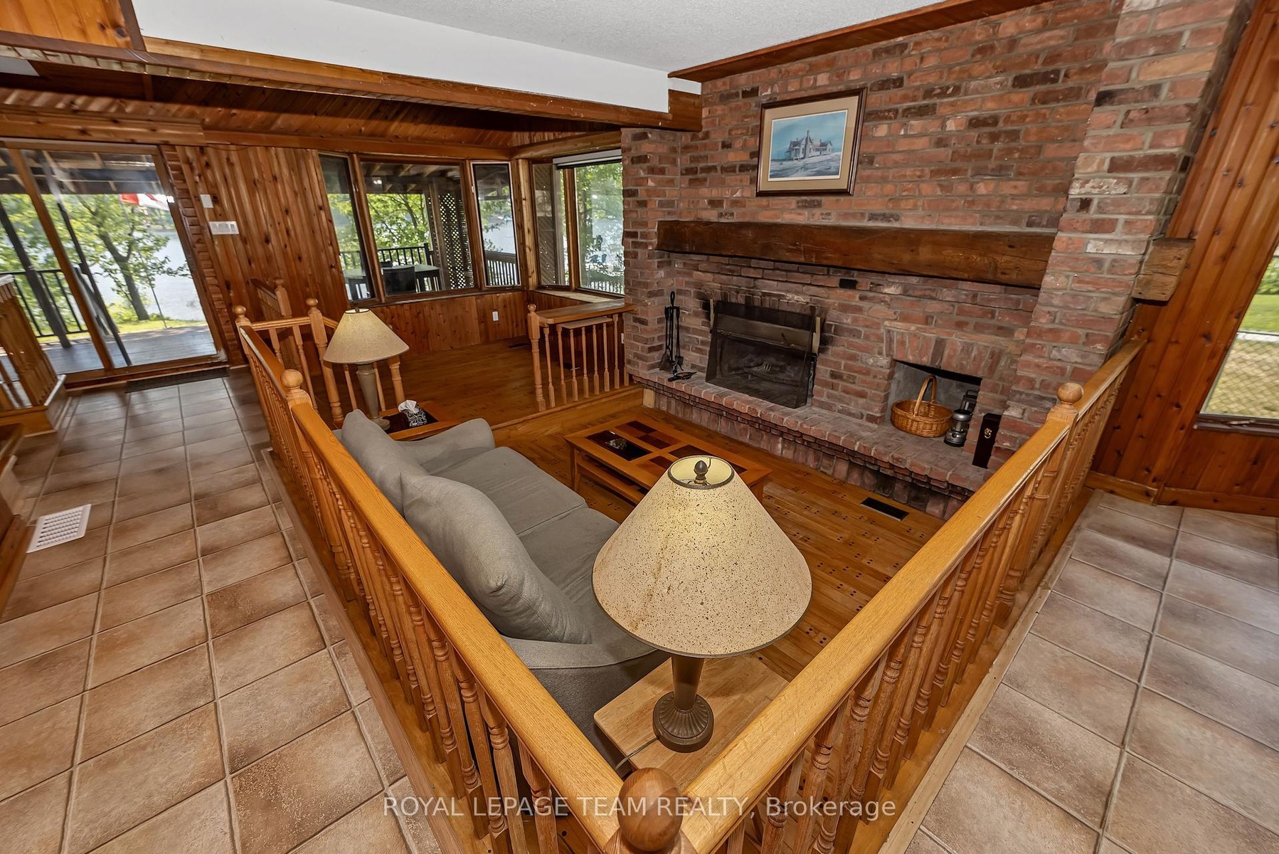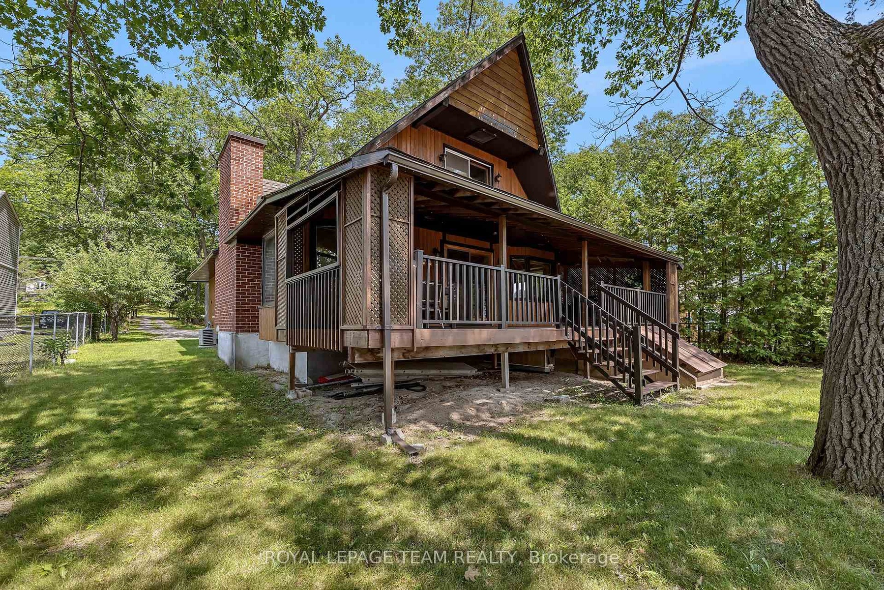 Situated on a point with a south-facing waterfront, 1210 Bayview Drive has views of the river and spectacular sunsets. Set safely outside the floodplain, the property is treed with mature oaks and maples. Built in the early seventies, this home features original wood accents and unique architectural details, with an open-concept main living area and two flexible rooms that are perfect for a home office or library. The main floor also features a den/family or bedroom, a full bathroom, and a laundry room. The circular staircase leads to the second floor, where the primary bedroom retreat features a skylight for stargazing, a private three-piece en-suite, and access to a balcony with river views. Two additional bedrooms also open onto a balcony at the front of the home, and they share a 2-piece bath. Entertain or unwind on the covered back deck, where the ebb and flow of river life provides the perfect backdrop. The unfinished basement, accessible via exterior cellar doors, offers additional storage and or a workshop. Outdoors, a movable storage container has storage space for garden tools and recreational toys. This property has tremendous potential, whether you use it as your cottage or principal residence, you can enjoy year-round waterfront living. With Kanata only 25 minutes away, you have the ideal blend of natural tranquillity and city convenience.
