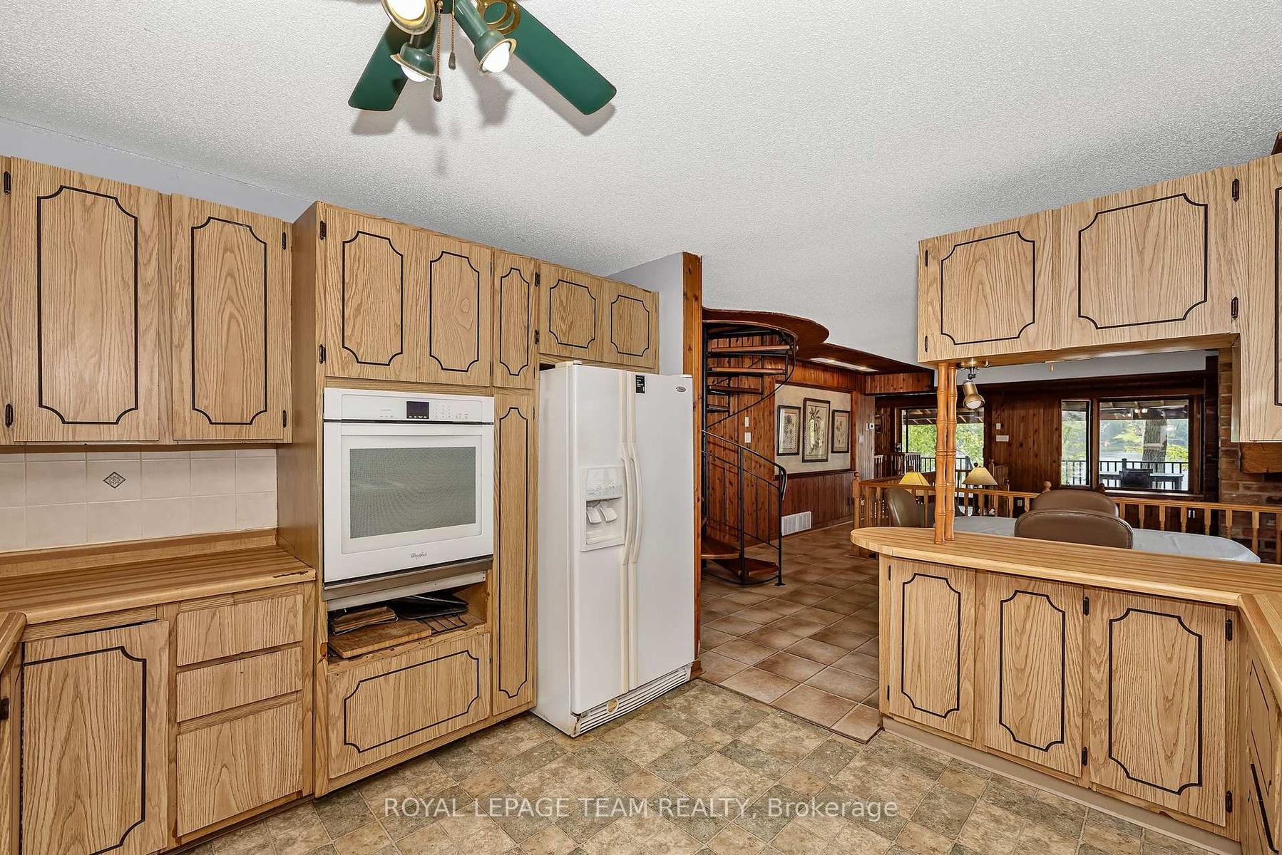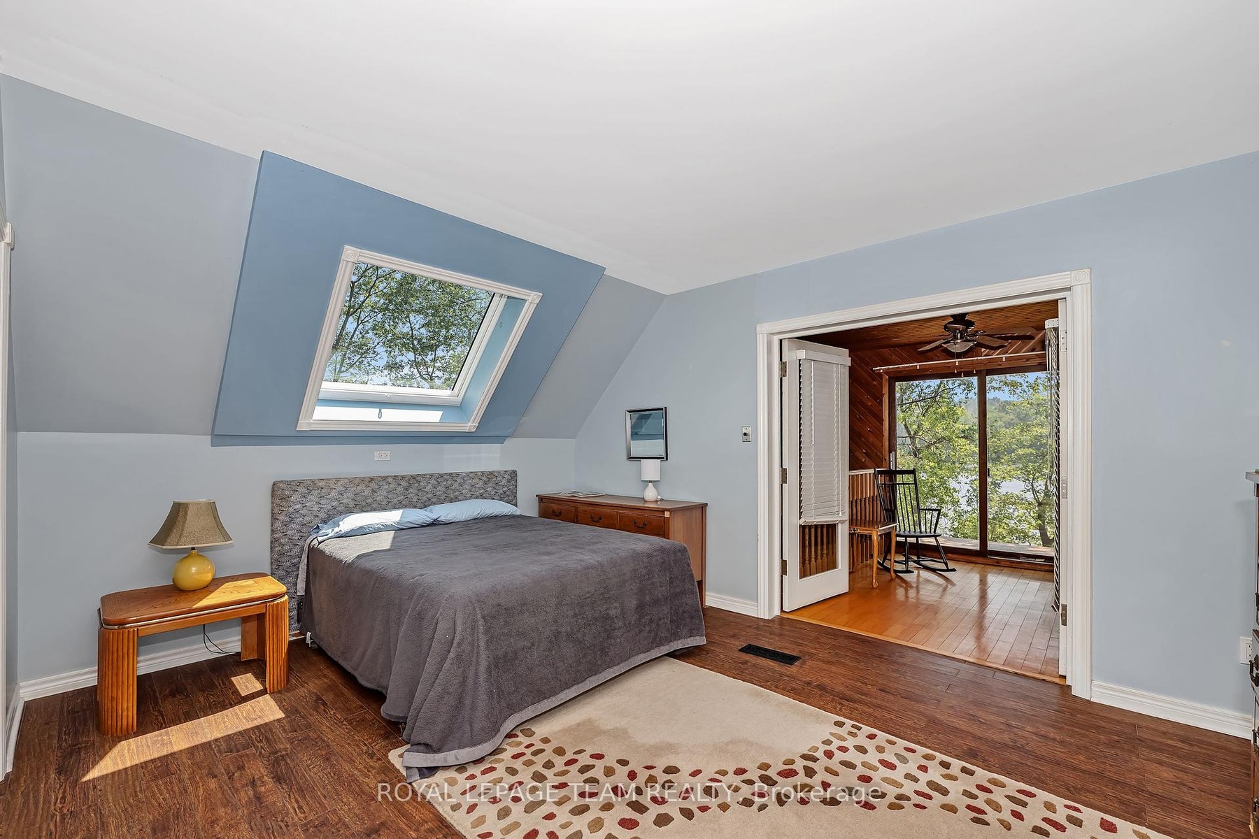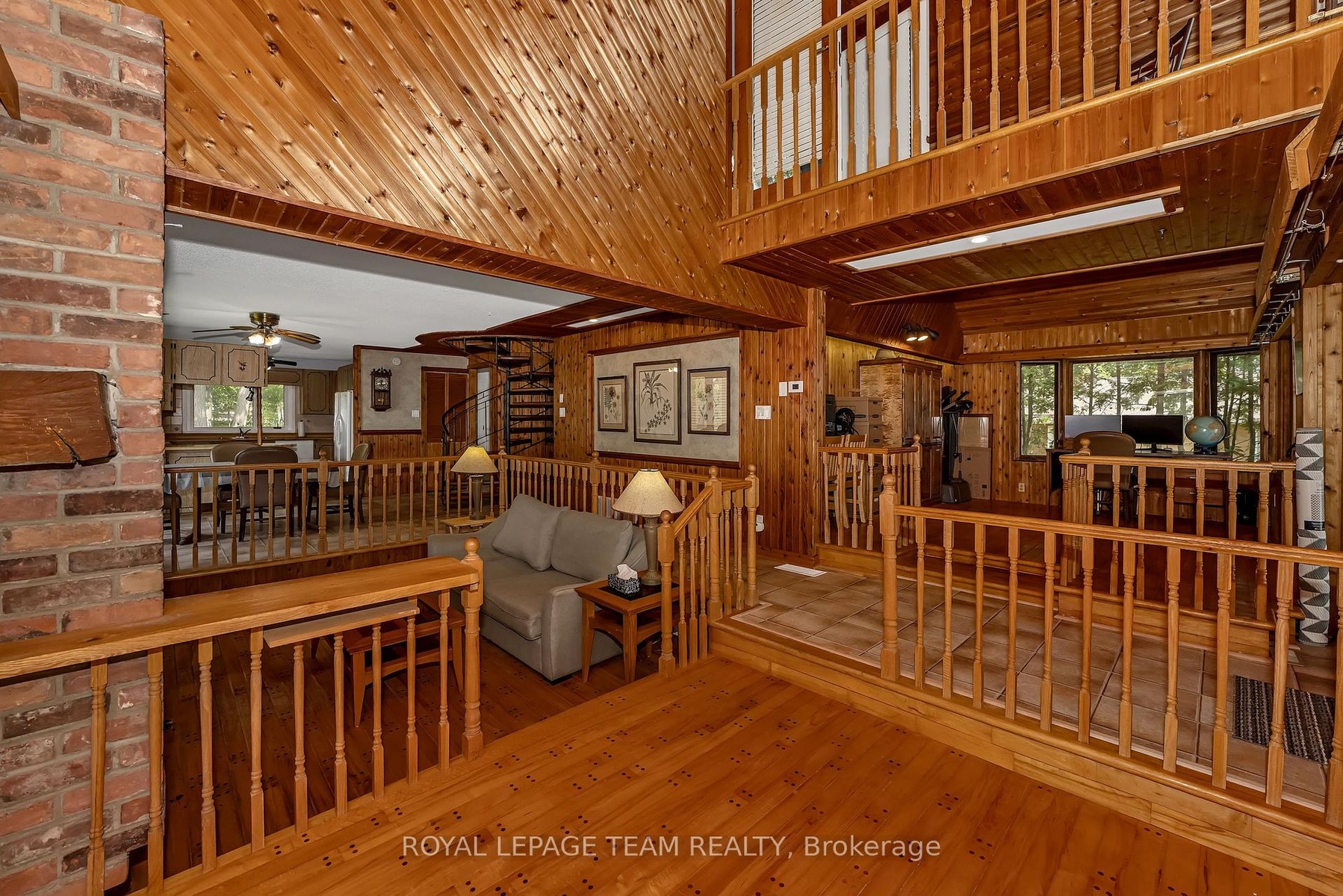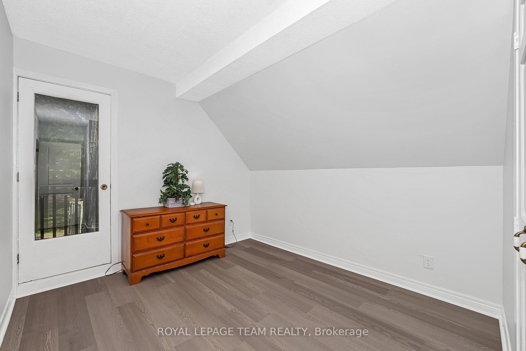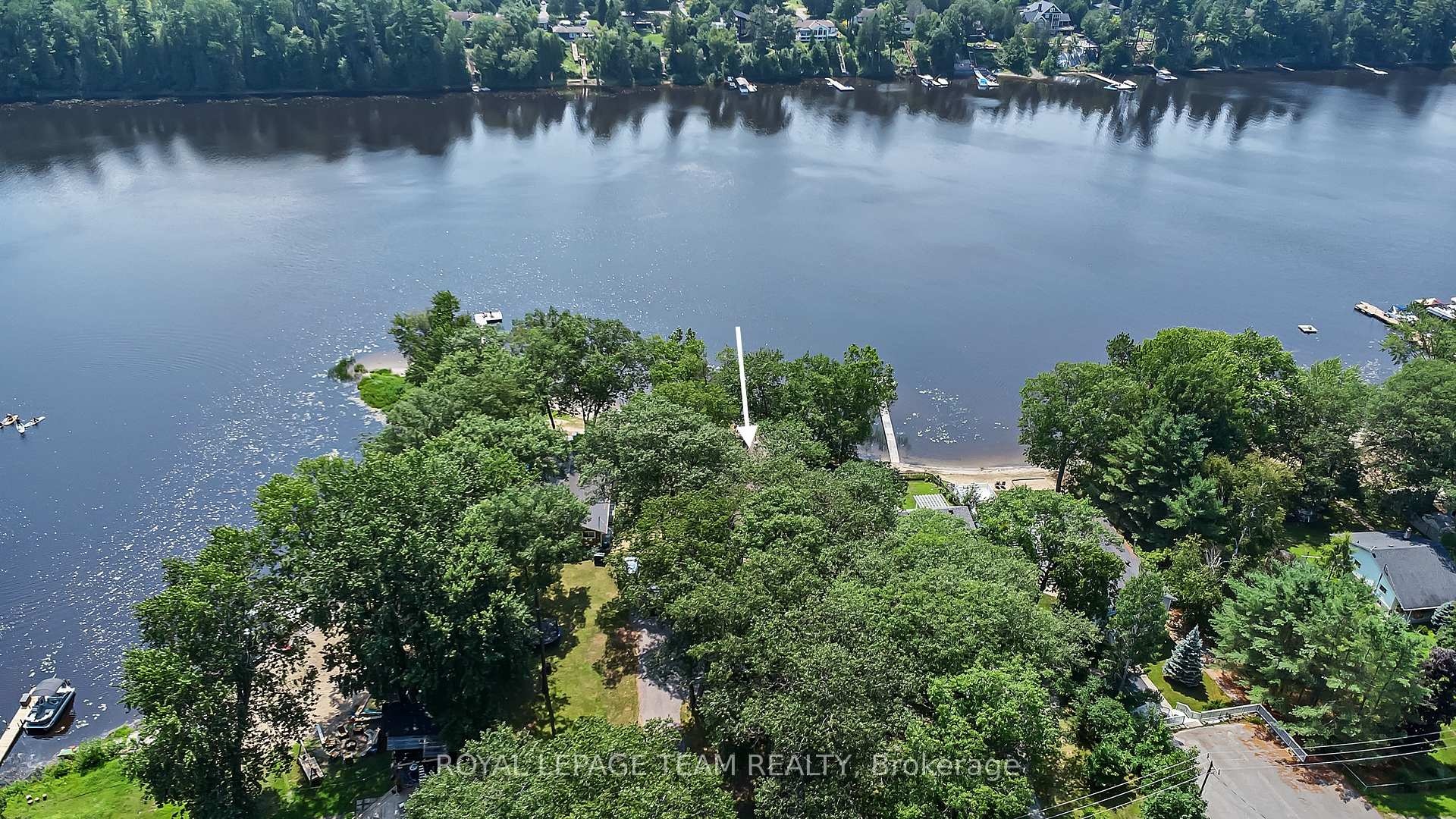Situated on a point with a south-facing waterfront, 1210 Bayview Drive has views of the river and spectacular sunsets. Set safely outside the floodplain, the property is treed with mature oaks and maples. Built in the early seventies, this home features original wood accents and unique architectural details, with an open-concept main living area and two flexible rooms that are perfect for a home office or library. The main floor also features a den/family or bedroom, a full bathroom, and a laundry room. The circular staircase leads to the second floor, where the primary bedroom retreat features a skylight for stargazing, a private three-piece en-suite, and access to a balcony with river views. Two additional bedrooms also open onto a balcony at the front of the home, and they share a 2-piece bath. Entertain or unwind on the covered back deck, where the ebb and flow of river life provides the perfect backdrop. The unfinished basement, accessible via exterior cellar doors, offers additional storage and or a workshop. Outdoors, a movable storage container has storage space for garden tools and recreational toys. This property has tremendous potential, whether you use it as your cottage or principal residence, you can enjoy year-round waterfront living. With Kanata only 25 minutes away, you have the ideal blend of natural tranquillity and city convenience.