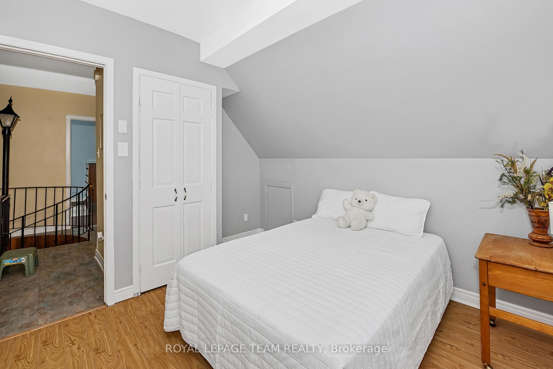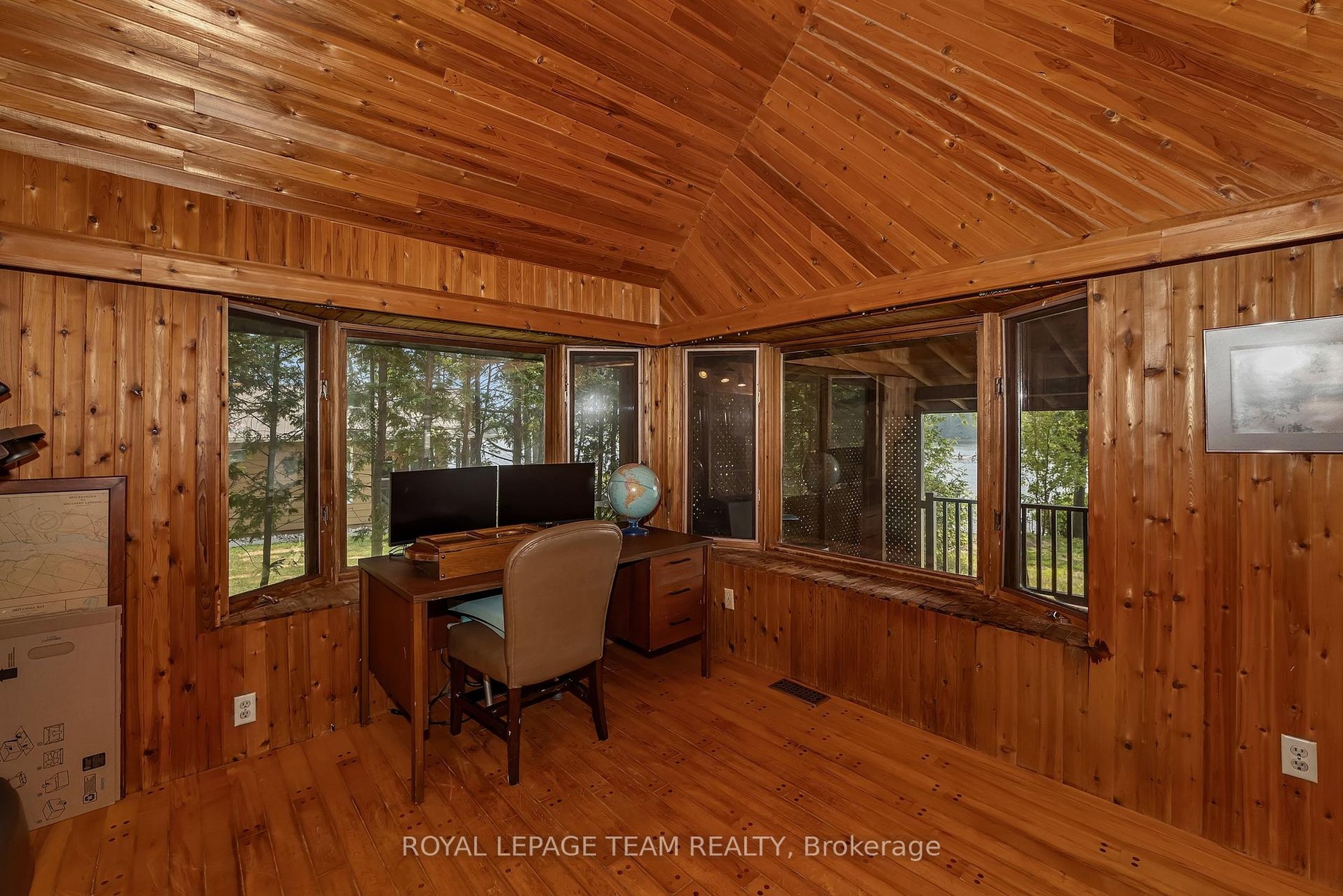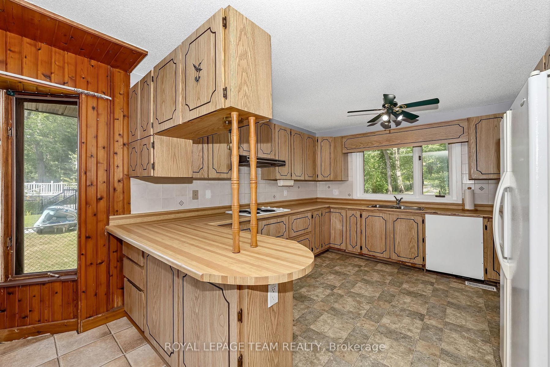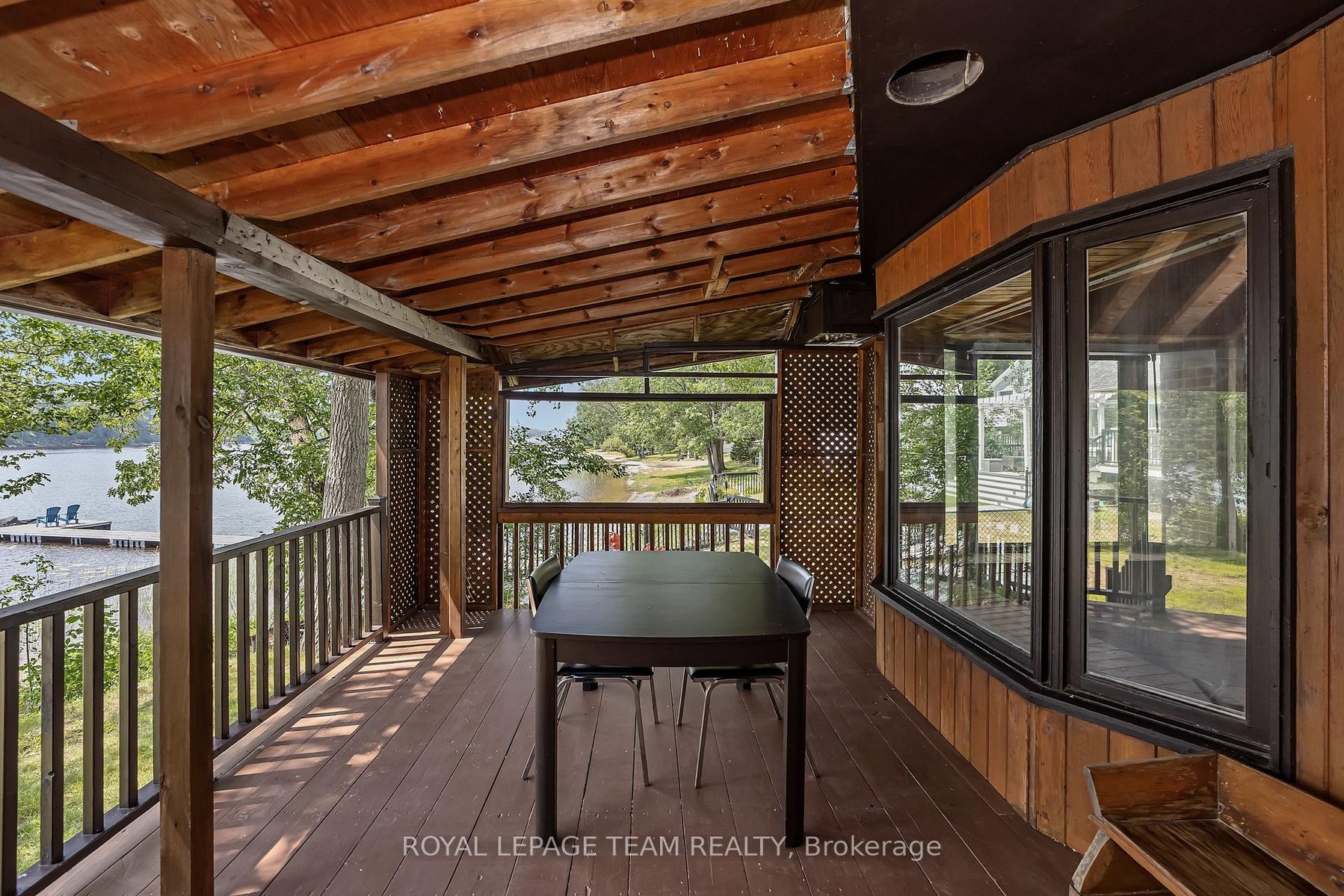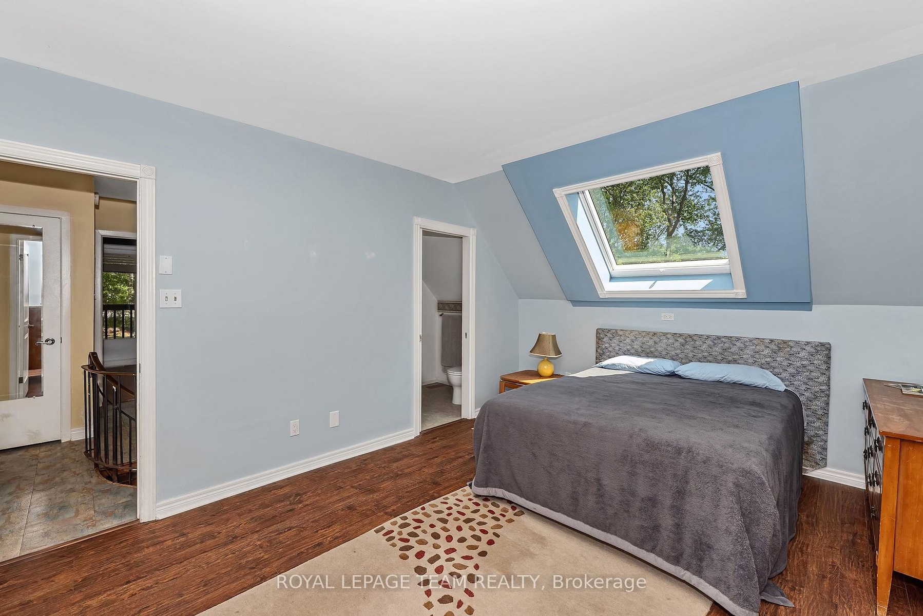 Situated on a point with a south-facing waterfront, 1210 Bayview Drive has views of the river and spectacular sunsets. Set safely outside the floodplain, the property is treed with mature oaks and maples. Built in the early seventies, this home features original wood accents and unique architectural details, with an open-concept main living area and two flexible rooms that are perfect for a home office or library. The main floor also features a den/family or bedroom, a full bathroom, and a laundry room. The circular staircase leads to the second floor, where the primary bedroom retreat features a skylight for stargazing, a private three-piece en-suite, and access to a balcony with river views. Two additional bedrooms also open onto a balcony at the front of the home, and they share a 2-piece bath. Entertain or unwind on the covered back deck, where the ebb and flow of river life provides the perfect backdrop. The unfinished basement, accessible via exterior cellar doors, offers additional storage and or a workshop. Outdoors, a movable storage container has storage space for garden tools and recreational toys. This property has tremendous potential, whether you use it as your cottage or principal residence, you can enjoy year-round waterfront living. With Kanata only 25 minutes away, you have the ideal blend of natural tranquillity and city convenience.