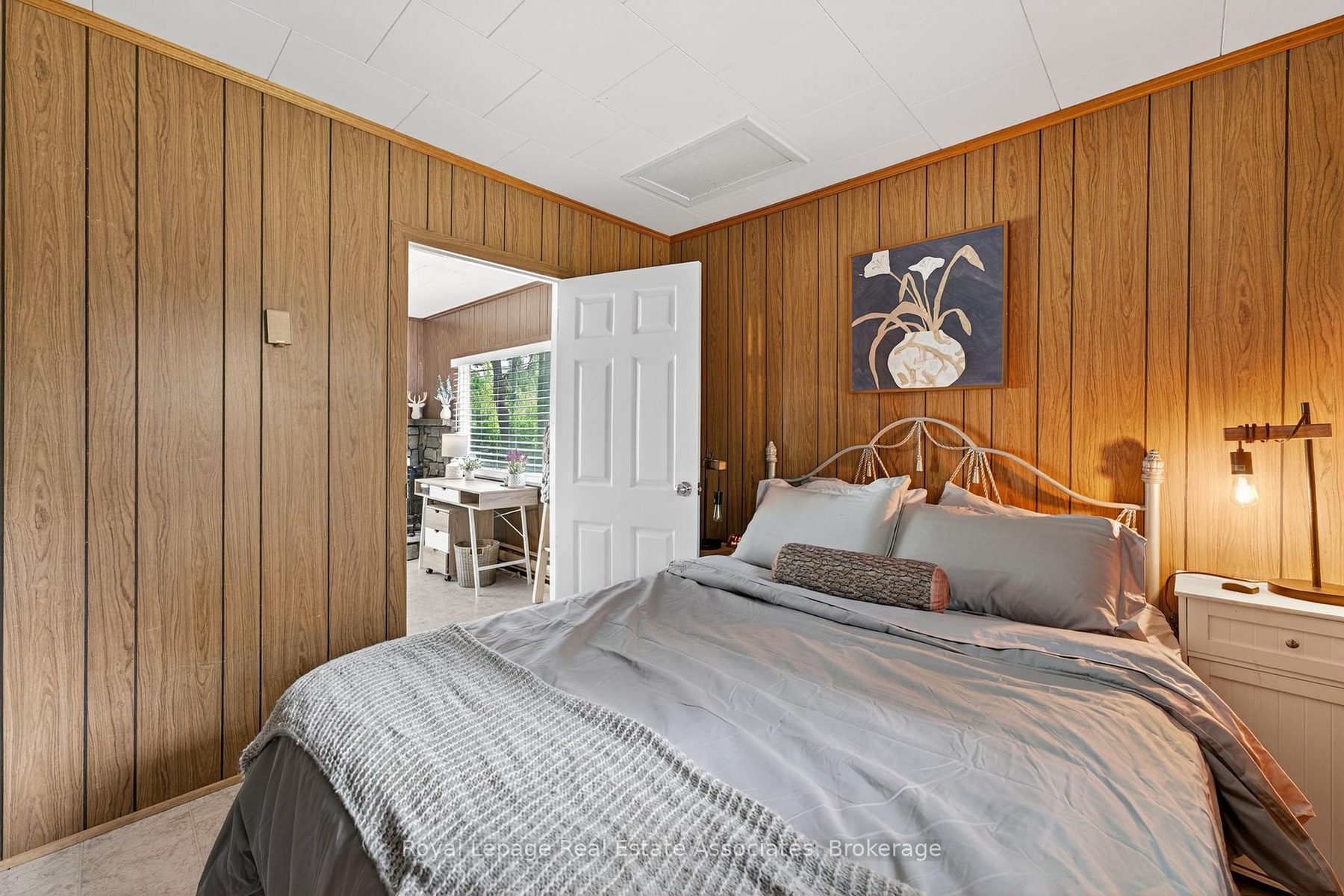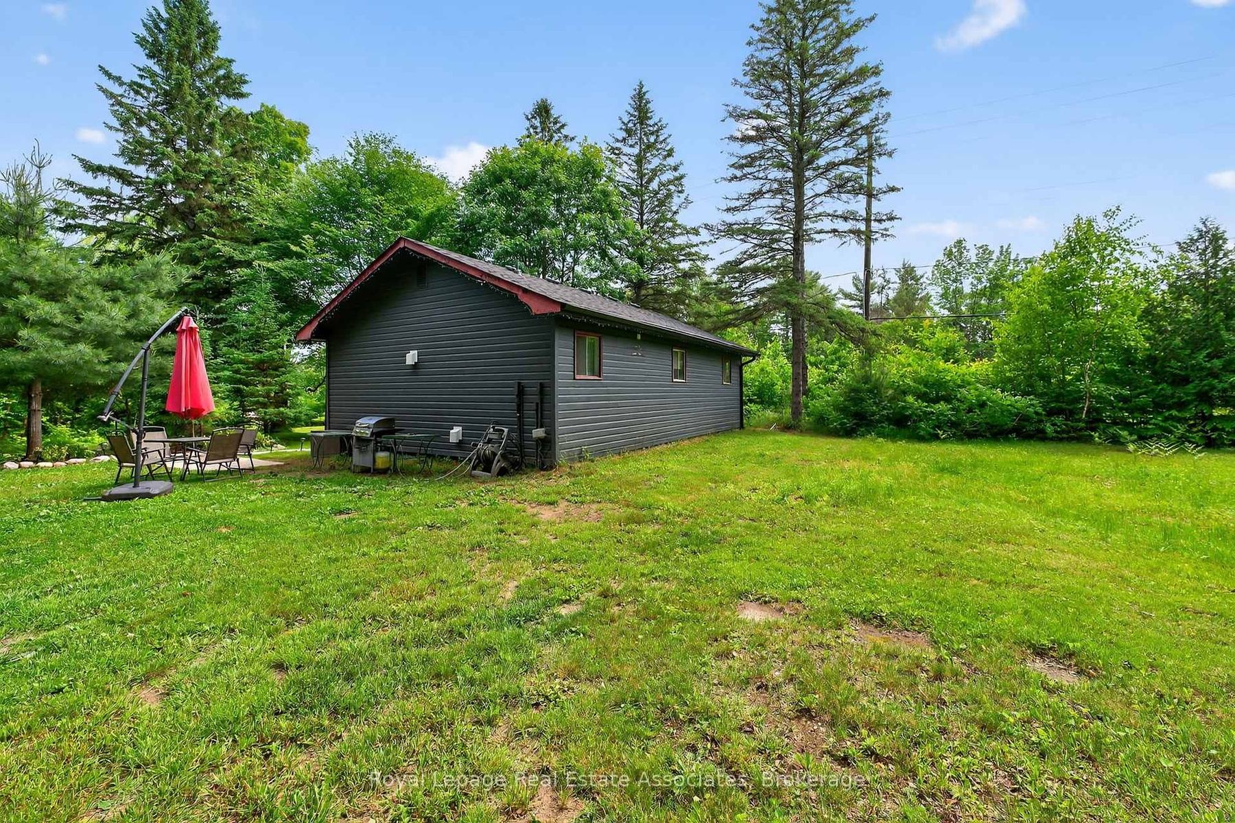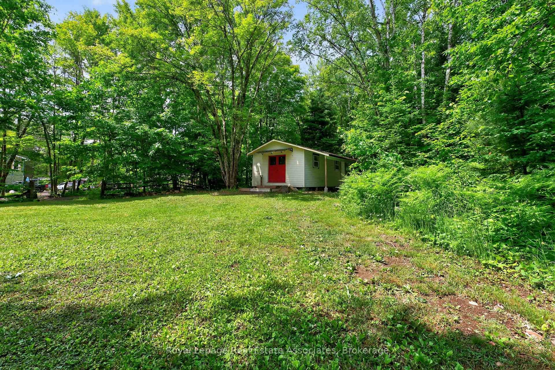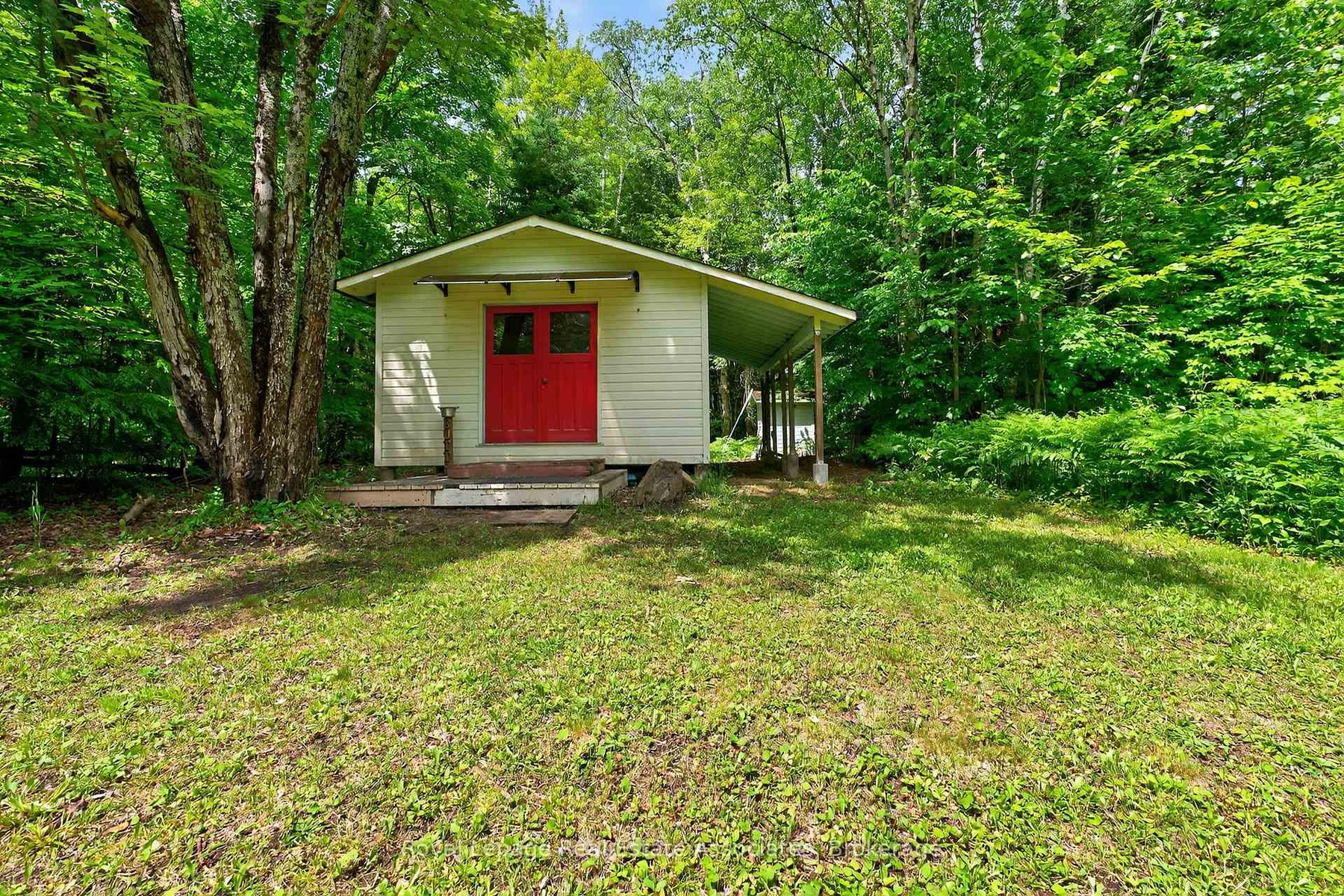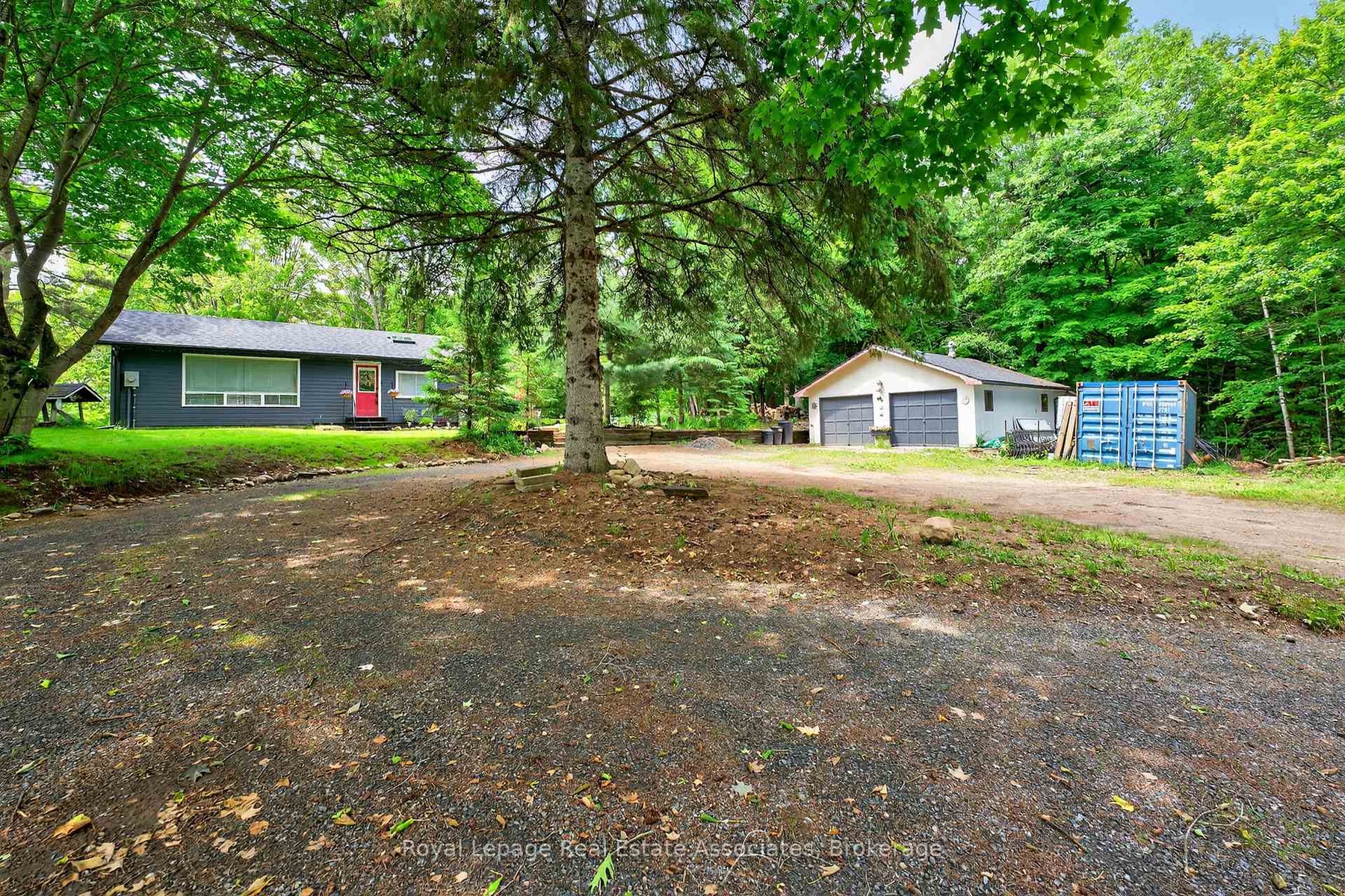 Welcome to your peaceful escape in the heart of the Algonquin Highlands! Situated directly across from the pristine waters of Halls Lake. Set on a spacious, tree-lined lot, the main home is a cozy 2-bedroom, 1-bathroom bungalow featuring an open-concept living and dining area, as well as a well-equipped and convenient kitchen and laundry area. A large picture window in the living room fills the space with natural light and serene views. Ideal for hosting family and friends or creating a private rental opportunity. The property also includes a separate 1-bedroom guest suite offering comfort, privacy, and flexibility for year-round enjoyment. This suite has been roughed in for a full bathroom and kitchenette just waiting for you to add your personal touch. A detached double car garage provides ample storage for vehicles, tools, and recreational gear, making it easy to explore everything this sought-after lakefront community has to offer. Whether you're looking for a weekend getaway or a full-time residence surrounded by nature, this property is a rare gem just steps from swimming, boating, fishing, and the scenic beauty of Halls Lake. *Please See Schedule C for a full list of additional improvements and details on the home and surrounding area