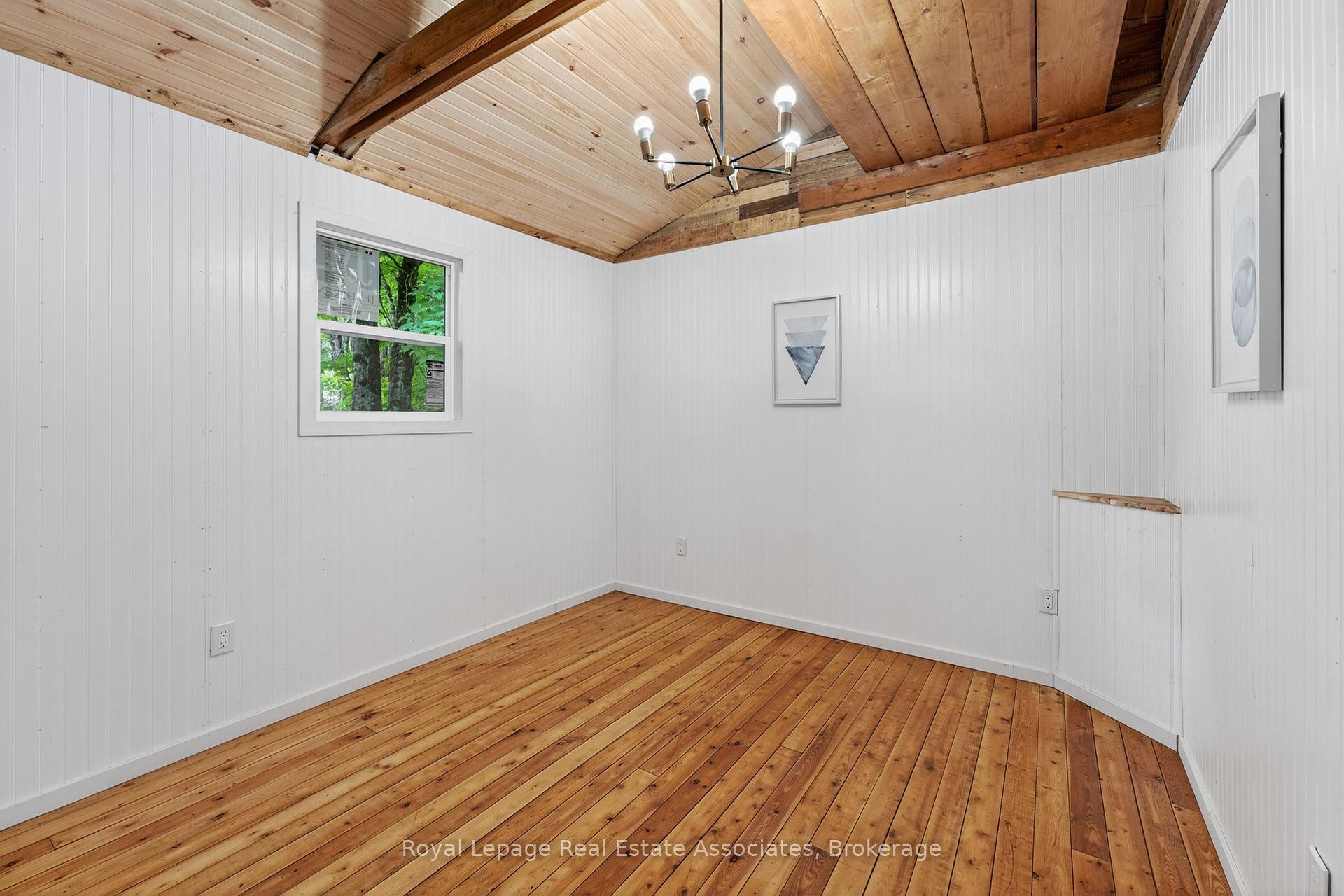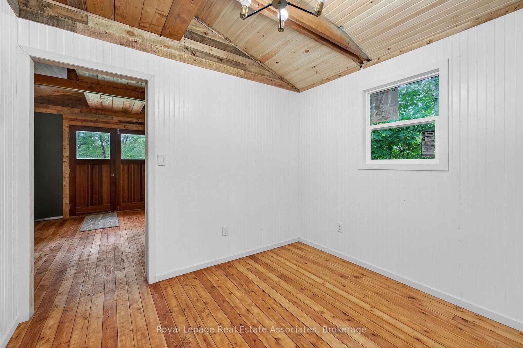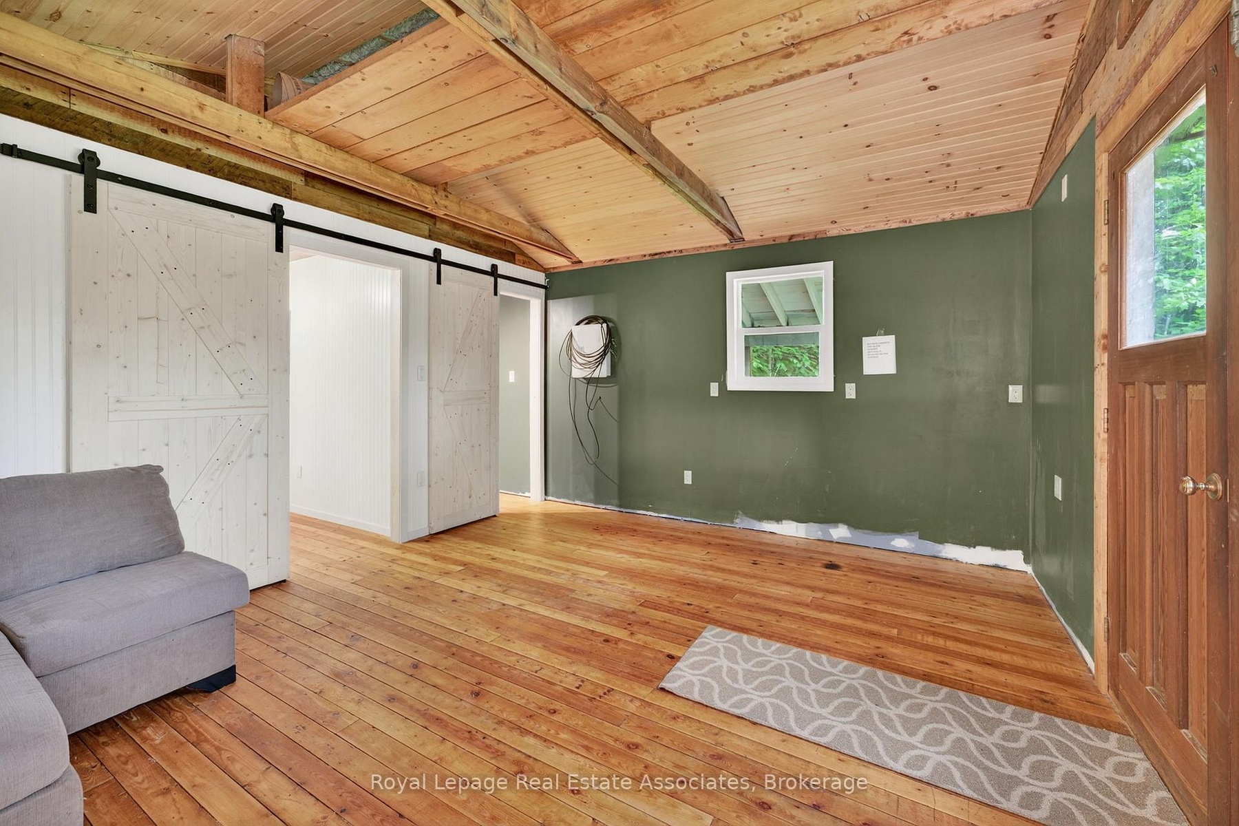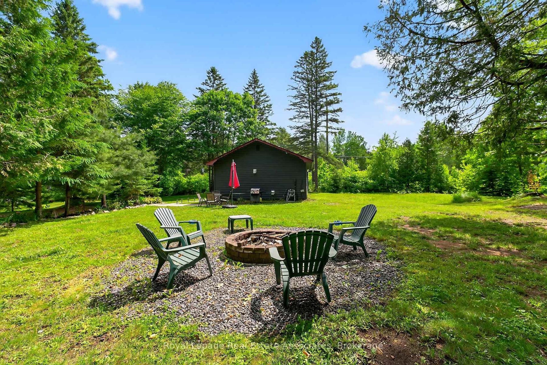 Welcome to your peaceful escape in the heart of the Algonquin Highlands! Situated directly across from the pristine waters of Halls Lake. Set on a spacious, tree-lined lot, the main home is a cozy 2-bedroom, 1-bathroom bungalow featuring an open-concept living and dining area, as well as a well-equipped and convenient kitchen and laundry area. A large picture window in the living room fills the space with natural light and serene views. Ideal for hosting family and friends or creating a private rental opportunity. The property also includes a separate 1-bedroom guest suite offering comfort, privacy, and flexibility for year-round enjoyment. This suite has been roughed in for a full bathroom and kitchenette just waiting for you to add your personal touch. A detached double car garage provides ample storage for vehicles, tools, and recreational gear, making it easy to explore everything this sought-after lakefront community has to offer. Whether you're looking for a weekend getaway or a full-time residence surrounded by nature, this property is a rare gem just steps from swimming, boating, fishing, and the scenic beauty of Halls Lake. *Please See Schedule C for a full list of additional improvements and details on the home and surrounding area