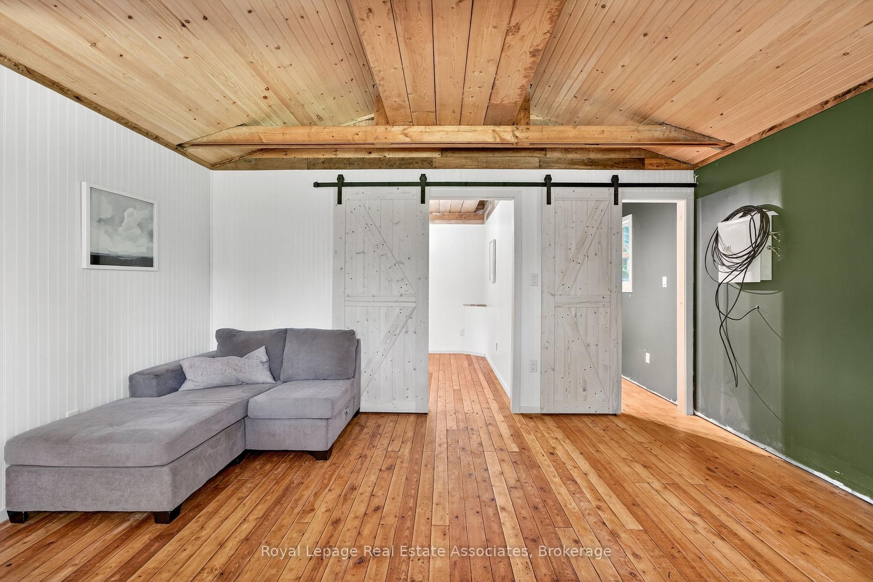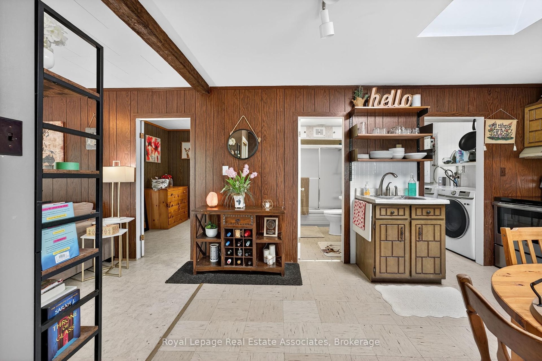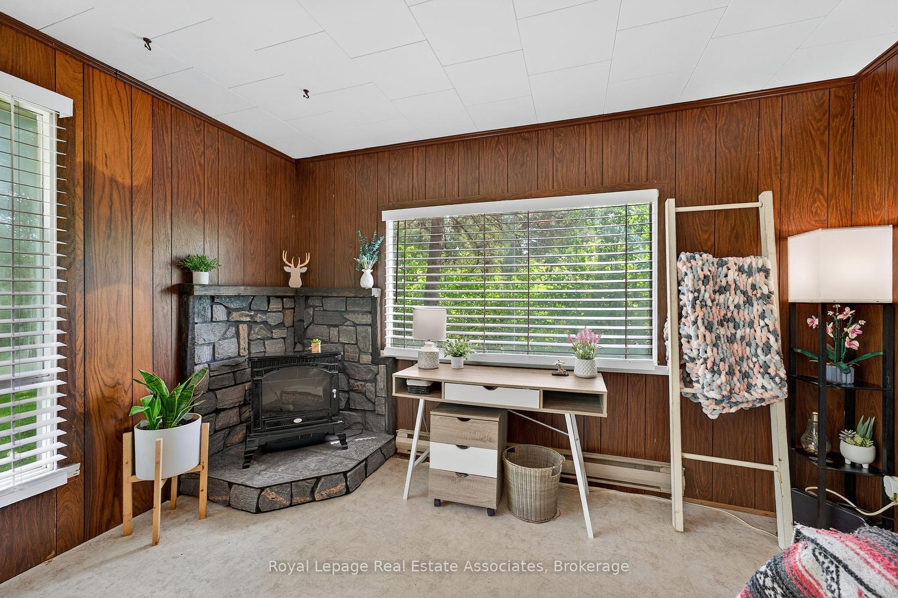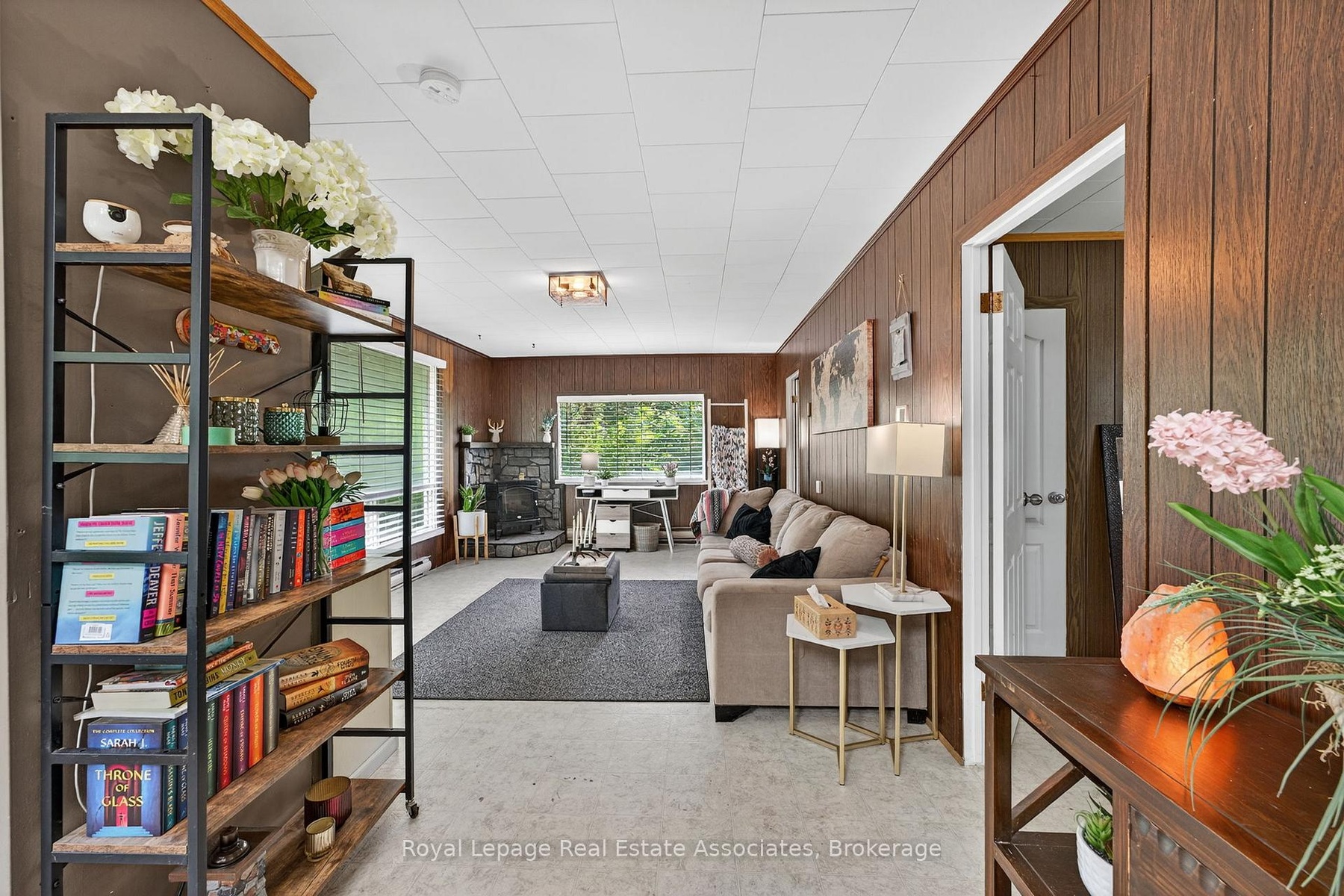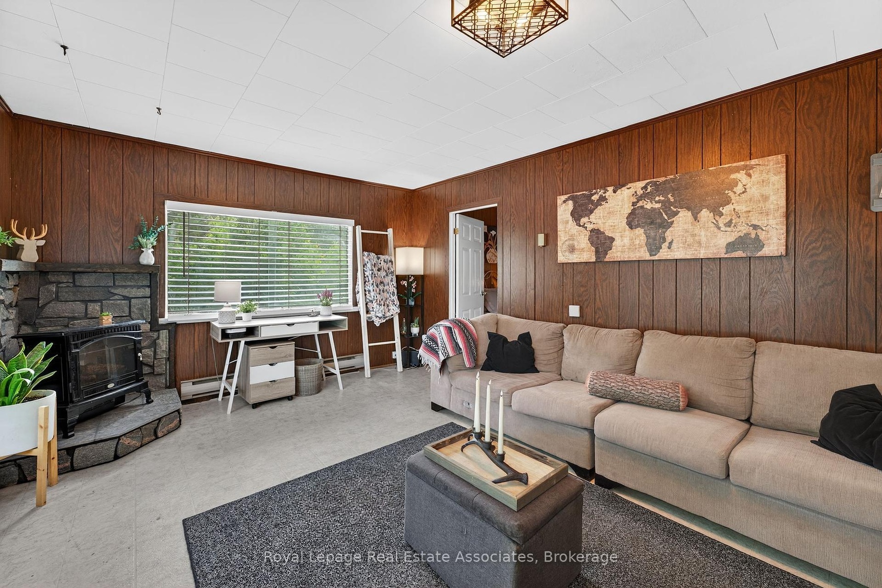 Welcome to your peaceful escape in the heart of the Algonquin Highlands! Situated directly across from the pristine waters of Halls Lake. Set on a spacious, tree-lined lot, the main home is a cozy 2-bedroom, 1-bathroom bungalow featuring an open-concept living and dining area, as well as a well-equipped and convenient kitchen and laundry area. A large picture window in the living room fills the space with natural light and serene views. Ideal for hosting family and friends or creating a private rental opportunity. The property also includes a separate 1-bedroom guest suite offering comfort, privacy, and flexibility for year-round enjoyment. This suite has been roughed in for a full bathroom and kitchenette just waiting for you to add your personal touch. A detached double car garage provides ample storage for vehicles, tools, and recreational gear, making it easy to explore everything this sought-after lakefront community has to offer. Whether you're looking for a weekend getaway or a full-time residence surrounded by nature, this property is a rare gem just steps from swimming, boating, fishing, and the scenic beauty of Halls Lake. *Please See Schedule C for a full list of additional improvements and details on the home and surrounding area