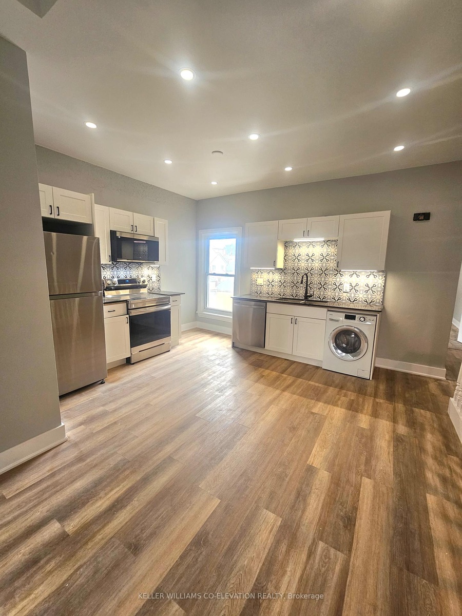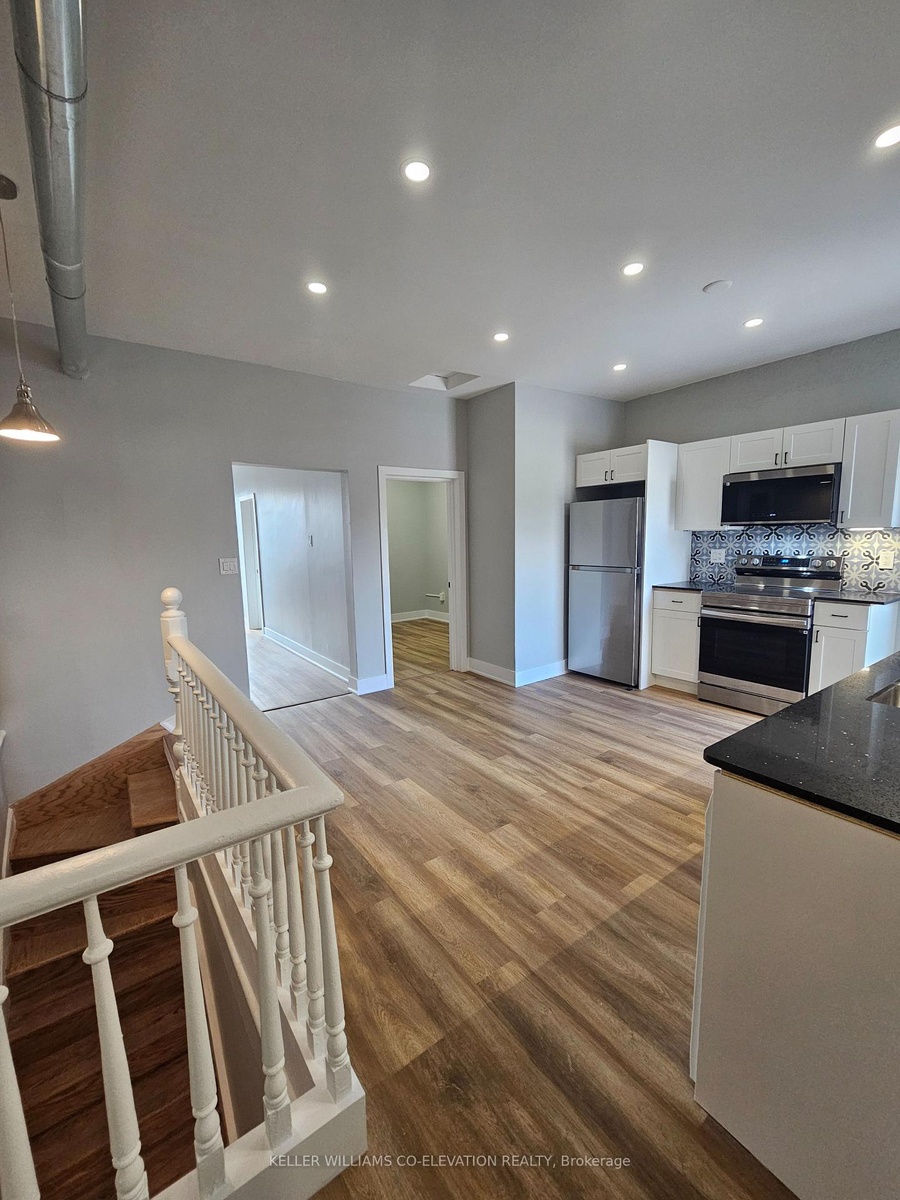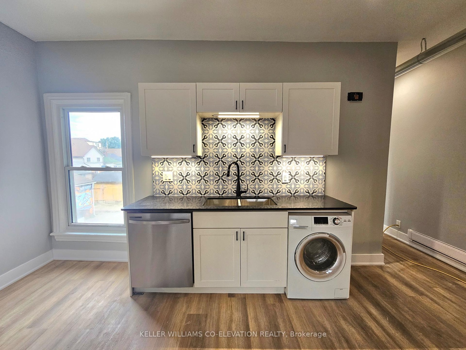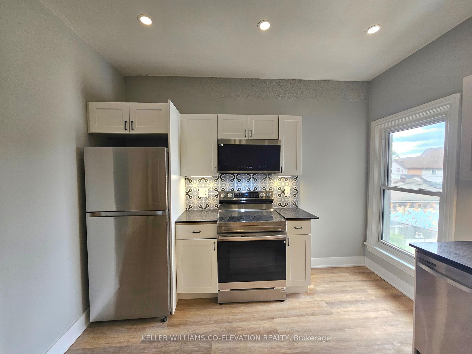 Completely Renovated! 3 Bedroom, 1 Bathroom apartment in Barton Village. Located on the 2nd floor above The Barton Salumeria at 357 Barton Street East. Brand new Kitchen Cabinets with brand new, never used Stainless steel appliances.. Fridge, Stove, Microwave Range Hood, Dishwasher, 2 in 1 Under counter Combo Washer/Dryer. Under valance lighting, Black Quartz Counters, Undermount double bowl sink, faucet with extension and vegetable sprayer function, Custom backsplash, Moen Gooseneck faucet. New floors throughout, new baseboards and trim, new doors with new casings and new matte black hardware. New electrical with pot lights and stylish light fixtures in every bedroom, foyer and hallway. Ceiling fan in living/dining room. Bathroom with bathtub and subway tile walls, new toilet and bathroom fan, modern vanity with storage. New custom oak Staircase. Extras: Separately metered Hydro (electricity) Gas and Water. Freshly painted throughout. New closet doors being installed. Professionally deep cleaned and ready for occupancy!