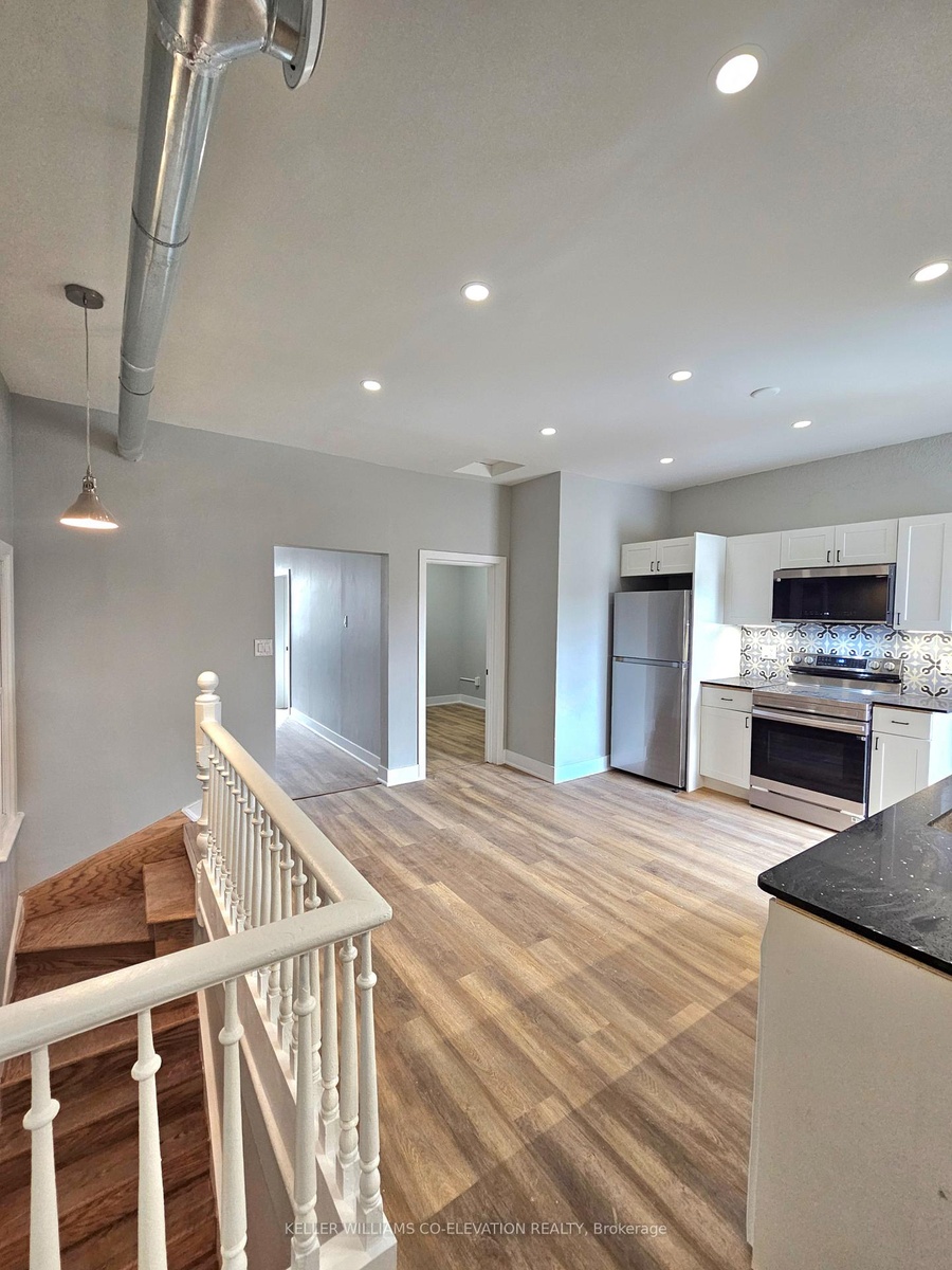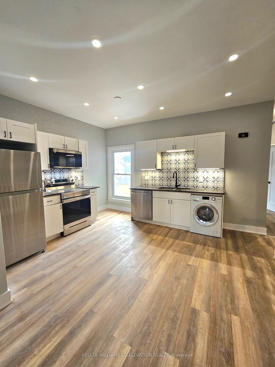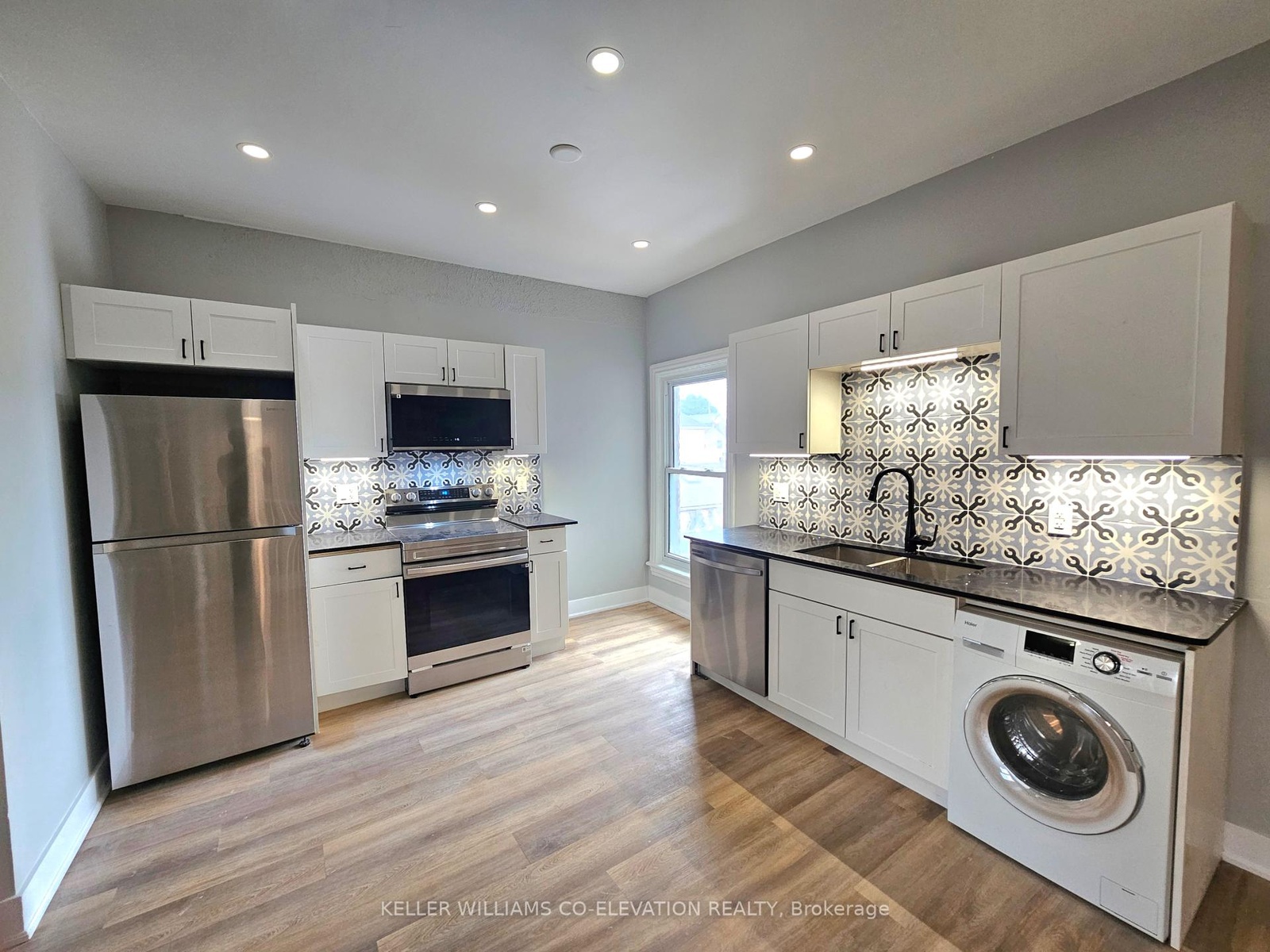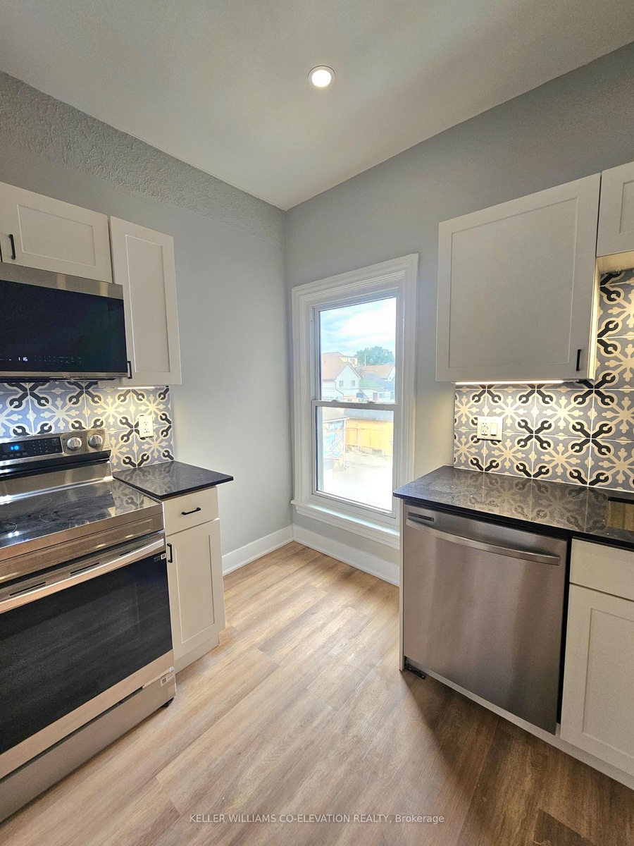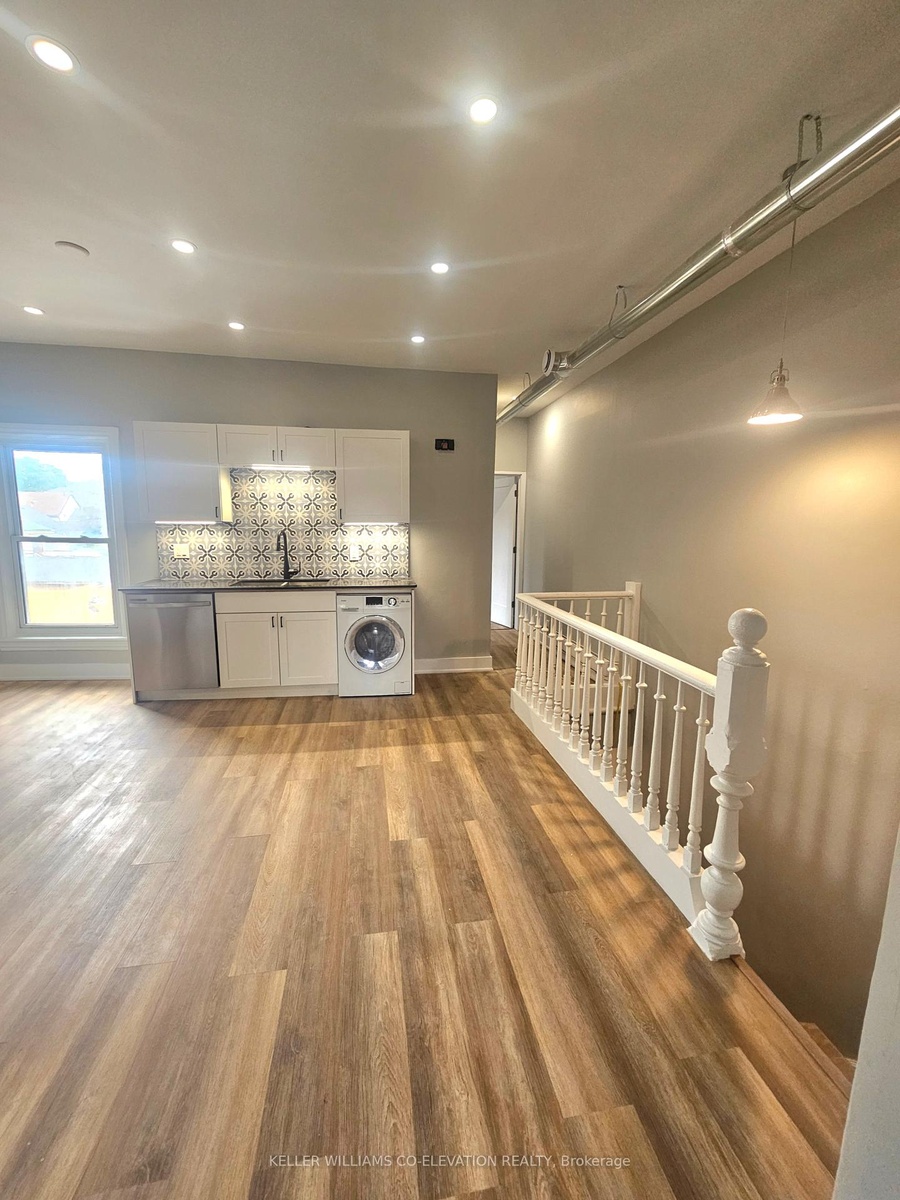 Completely Renovated! 3 Bedroom, 1 Bathroom apartment in Barton Village. Located on the 2nd floor above The Barton Salumeria at 357 Barton Street East. Brand new Kitchen Cabinets with brand new, never used Stainless steel appliances.. Fridge, Stove, Microwave Range Hood, Dishwasher, 2 in 1 Under counter Combo Washer/Dryer. Under valance lighting, Black Quartz Counters, Undermount double bowl sink, faucet with extension and vegetable sprayer function, Custom backsplash, Moen Gooseneck faucet. New floors throughout, new baseboards and trim, new doors with new casings and new matte black hardware. New electrical with pot lights and stylish light fixtures in every bedroom, foyer and hallway. Ceiling fan in living/dining room. Bathroom with bathtub and subway tile walls, new toilet and bathroom fan, modern vanity with storage. New custom oak Staircase. Extras: Separately metered Hydro (electricity) Gas and Water. Freshly painted throughout. New closet doors being installed. Professionally deep cleaned and ready for occupancy!