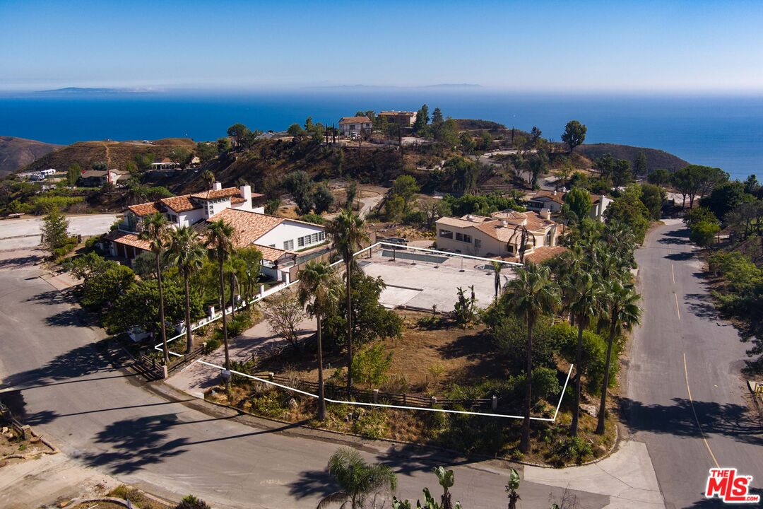Rare vacant lot in eastern Malibu at Sea View Estates. Perched on a over a third of an acre, with panoramic ocean, mountain & city-light views, this flat buildable corner lot offers privacy and proximity to Santa Monica and the Pacific Palisades. This burn out lot has utilities and services nearby . . . a perfect spot to build your dream home. Prior home had a pool.