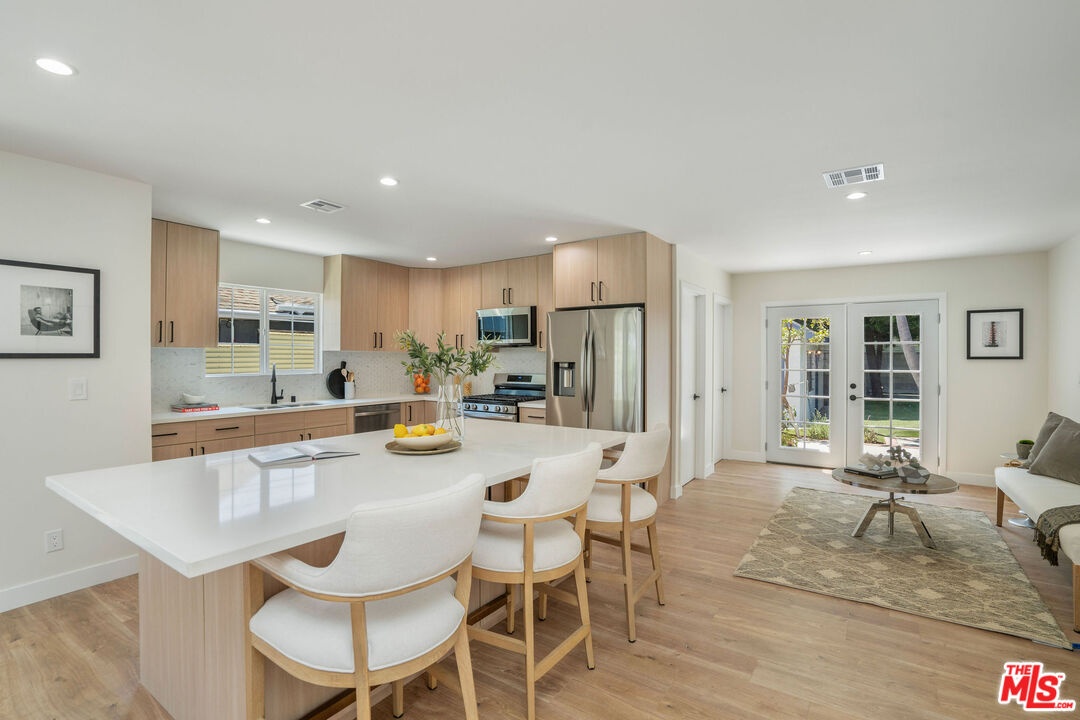 Welcome to a beautifully updated single-family home in the heart of Larchmont Village, offering 5 bedrooms and 4 bathrooms thoughtfully designed across approximately 2,600 sq. ft. of living space. Garage/ADU Included! Step through a welcoming front porch into a spacious living area, recessed lighting, and a decorative tiled fireplace. The open layout flows seamlessly into a dining space and a remodeled kitchen with stainless steel appliances, ample cabinetry, and a bright, modern feel. A garage conversion provides an additional bedroom and bathroom ideal as a guest retreat, office, or studio. Outdoor living shines with a low-maintenance turfed yard and shaded patio designed for gatherings and relaxation. The property is fully fenced with gated access and a large driveway offering generous parking options. Centrally located, this home is minutes from the farmers' market, dining, and shopping in Larchmont Village, as well as nearby parks and vibrant neighborhoods such as Hollywood and Koreatown. Approximate square footage. Tenant to verify all information independently. Pets allowed. Tenant responsible for all utilities. Gated parking, in-unit laundry, and private yard included.