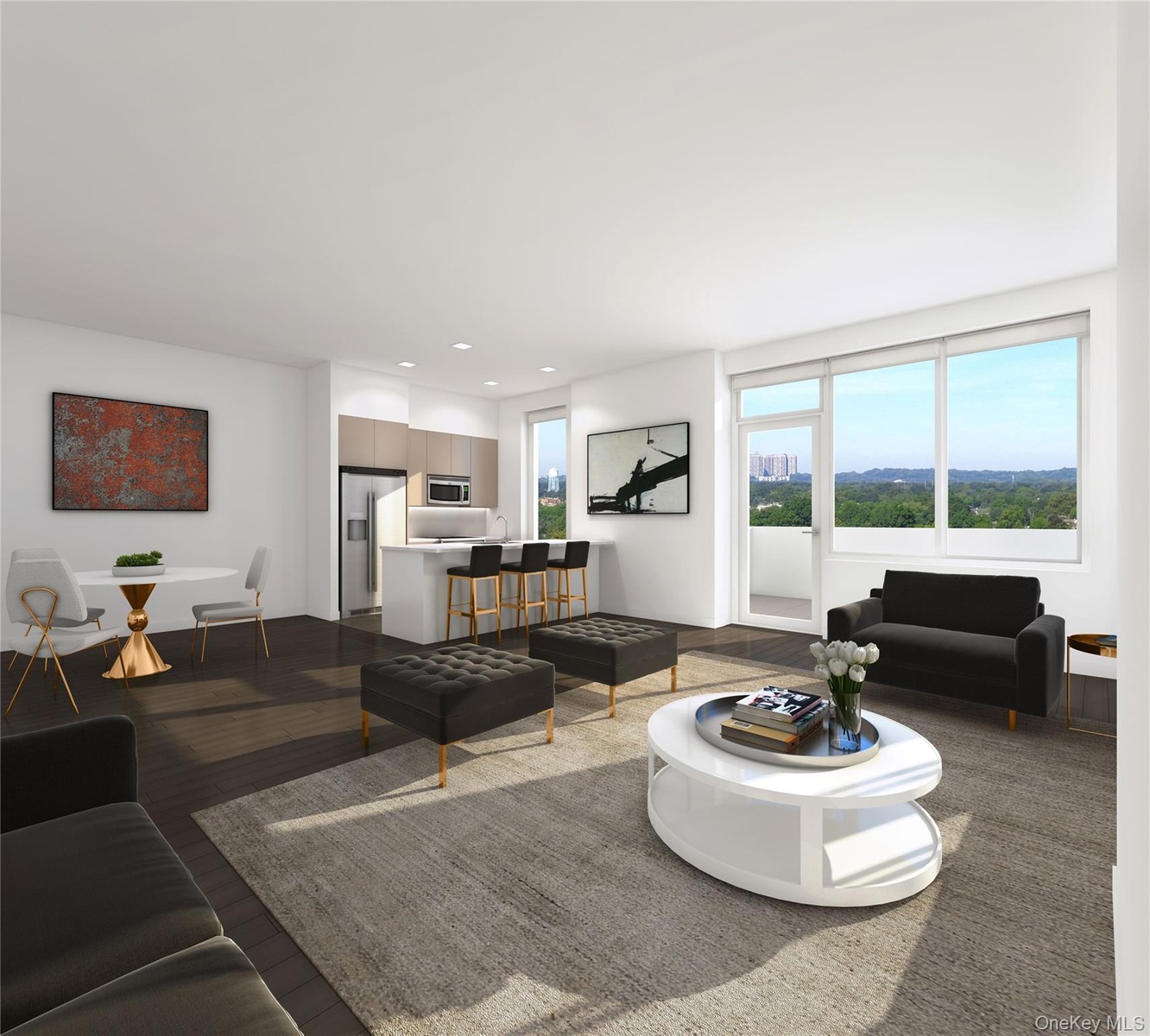 New! Modern Luxury High-Rise Doorman Building In Mineola. Complimentary Amenities: Fitness Center, Roof Lounge, Landscaped Roof Deck, Indoor Pool w/Sauna and Parking. Live In Super. S/S Appliances, In Unit W/D And Laundry On each floor. Tall ceilings w/Oversized Windows And Magnificent Hard-Wood Floors throughout. Installed Bluetooth soundbar. Convenient To All.