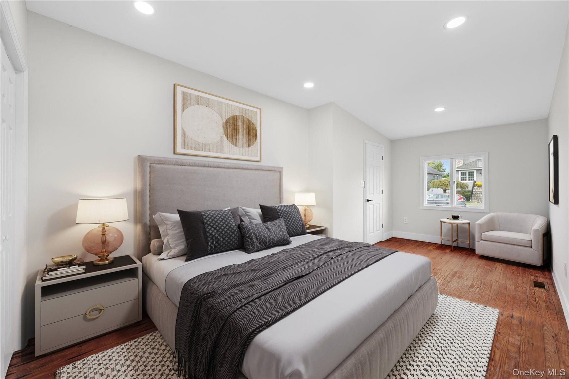 - Bedroom featuring hardwood / wood-style flooring and recessed lighting