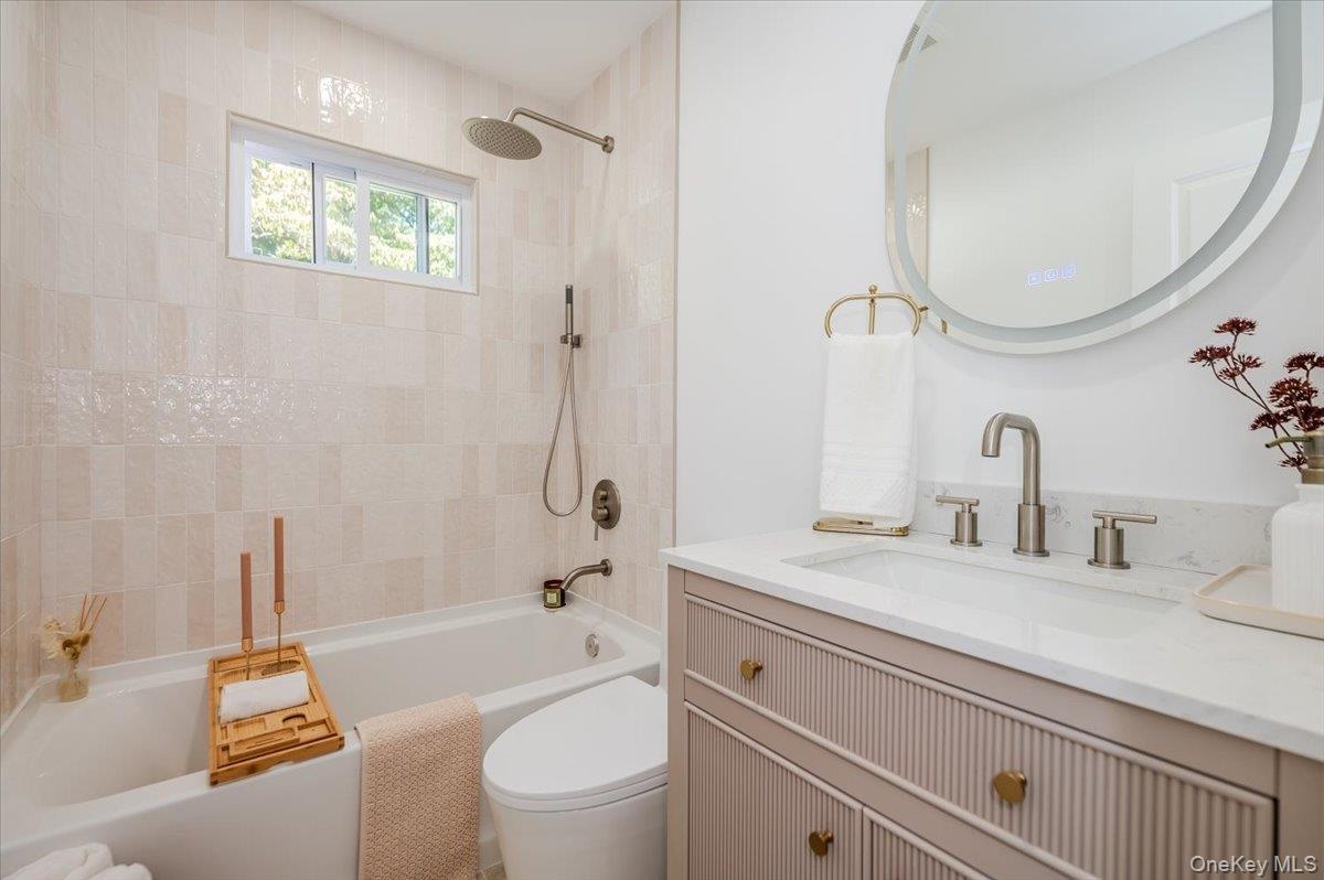 The fully renovated bathroom offers a fresh, contemporary design with premium fixtures, while modern lighting enhances the home's clean, updated aesthetic. For added convenience, you’ll appreciate the in-unit washer and dryer.