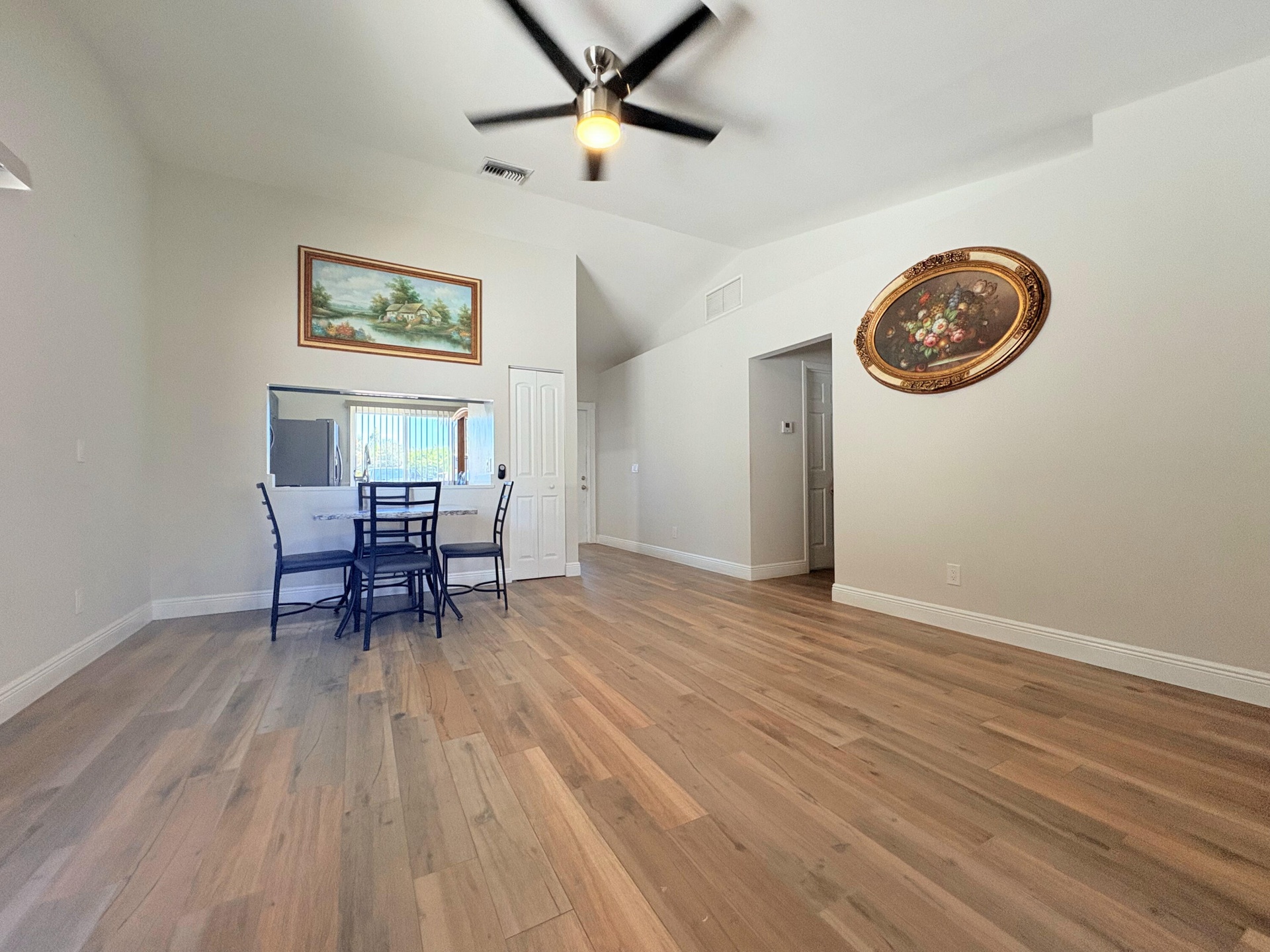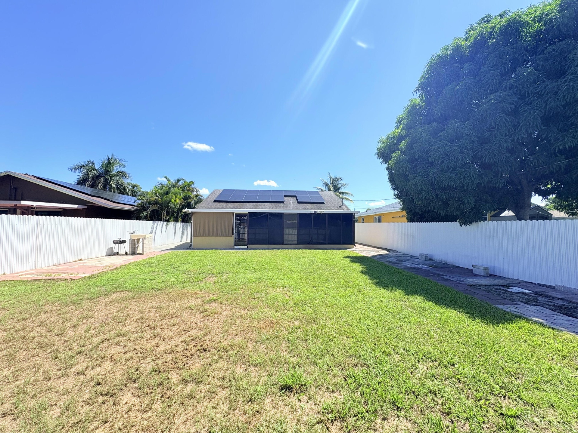 Discover this charming 2-bedroom, 2-bath home with a one-car garage in the heart of Greenacres. Featuring a spacious screened back patio and a fully fenced yard, this property is perfect for outdoor living, entertaining, and family fun. The huge backyard offers endless possibilities--whether you're looking to add a pool, garden, or simply enjoy open space. With no HOA restrictions, you'll have the freedom to make it your own. A rare find in a sought-after location, this home combines comfort, convenience, and potential.
