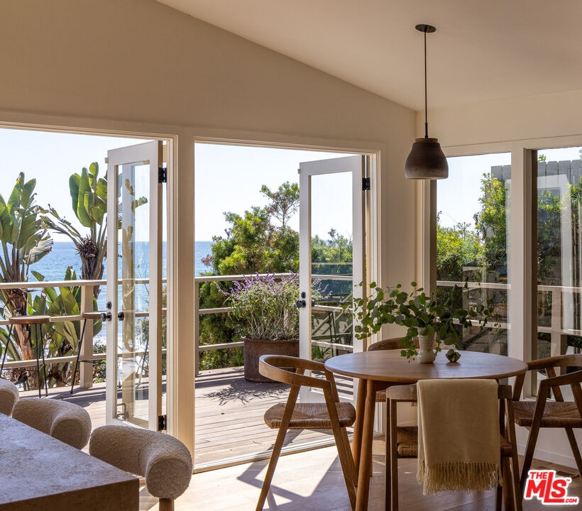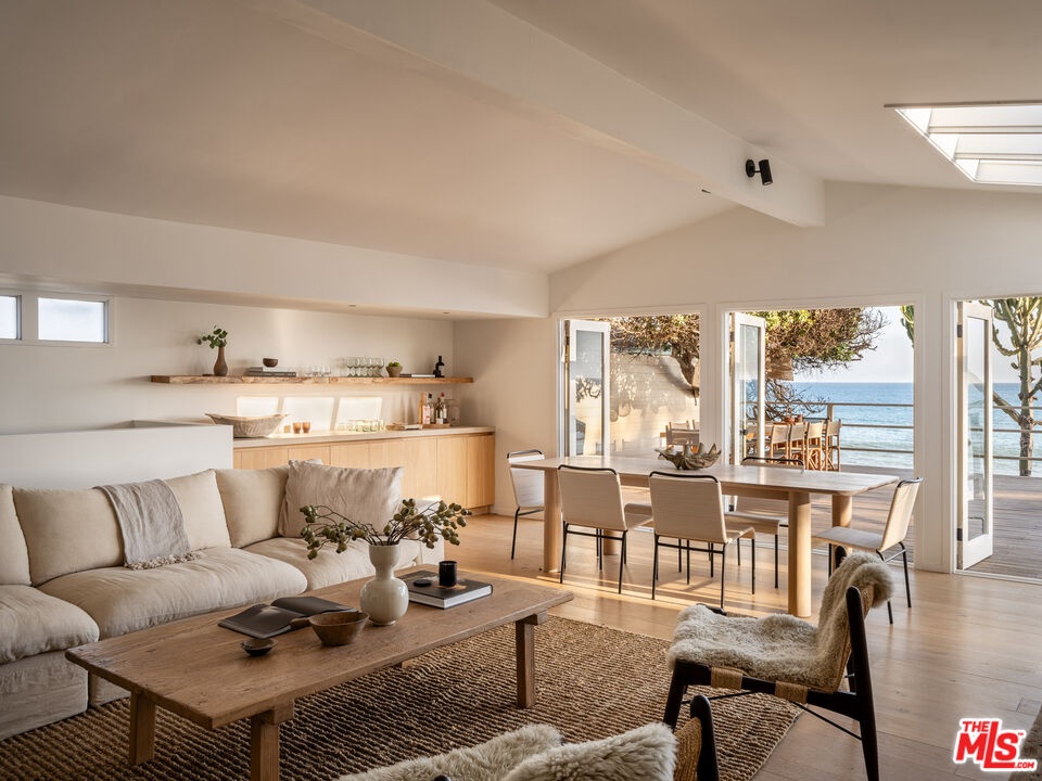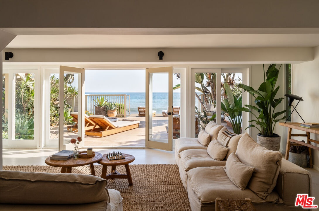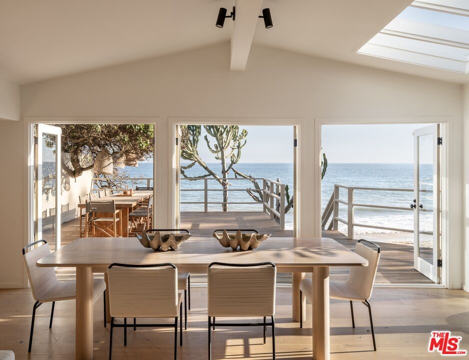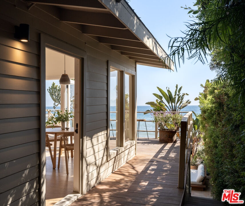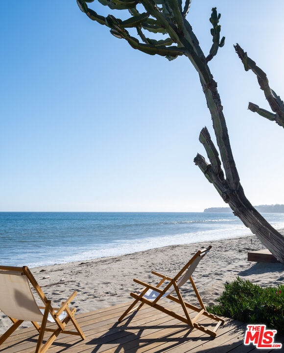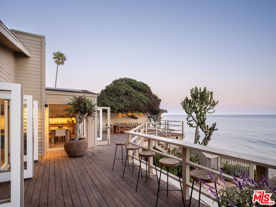 Introducing The Cactus House, a rare opportunity to experience a private mid-century beach house on one of the most exclusive rows of homes on the Malibu coastline. This unique architectural property offers unparalleled ocean views and beach frontage spanning a rare 58 feet. Originally designed by Charles Kanner, the home was meticulously reimagined in 2021, seamlessly blending classic mid-century design with the warmth and tactility of the Mediterranean. Natural Cactus front and center, the homes minimalistic design connects perfectly to nature, allowing the beauty of the surroundings to take center stage. French doors open entirely to a large teak deck with views to Point Dume, the lower level features a gated terracotta courtyard leading onto a dry sandy beach enjoyable at all tides. Escondido Beach and the stunning Pacific Ocean are your personal backyard at this extraordinary home, perfect for entertaining and serene oceanfront indoor/outdoor living. Residents will enjoy being a few yards away from the private beach staircase to one of the area's renowned dining establishments Geoffrey's, and close proximity to hike Escondido Falls or shop at Cross Creek.