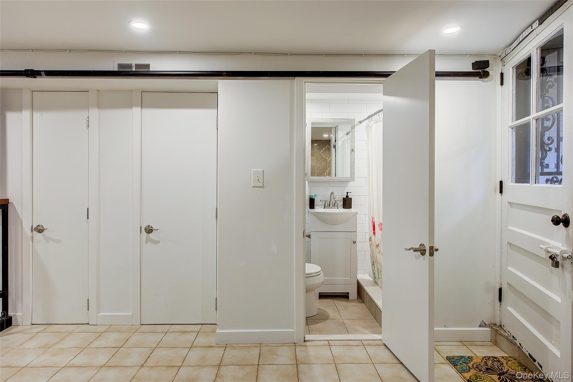 - Bedroom with light tile patterned flooring and recessed lighting