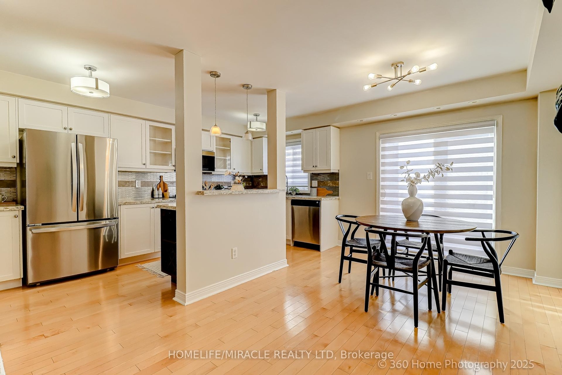 Welcome to this stunning townhome, offering the privacy and feel of a home with over 1926 sq. ft. (2400 Approximate with Basement)of beautifully designed living space. This bright and spacious home features an open-concept layout with 3+1 bedrooms and 4 Full bathrooms, perfect for families or those who love to entertain. Large windows fill every level with natural light, while gleaming hardwood floors create a warm and elegant atmosphere. The Main floor design with Family room or use as a great room also Home Office with 4 Pc Ensuite Washroom. The Second floor boasts a modern kitchen with quartz countertops, a pantry, and ample cabinet space, Living, Dining and Breakfast area ideal for both everyday living and hosting gatherings. Step out from the kitchen onto a large private deck, perfect for morning coffee or summer BBQs. A unique staircase design enhances flow and convenience throughout the home. Direct garage access is an added bonus, especially in winter, and the upper-level laundry room adds everyday practicality. The finished basement provides a versatile space with an additional bedroom or home office, plus a full bathroom perfect for guests or extended family. Or Income potential. Upstairs, the primary suite offers a private 5pc Ensuite and generous closet space, creating a relaxing retreat. Step outside to a beautifully landscaped backyard, a true highlight of this property. Whether your are a garden lover or looking for a safe play area for kids, this outdoor space blends beauty and function seamlessly. Move-in ready and meticulously maintained, this rare home combines comfort, style, and practicality in one exceptional package. Dont miss your chance to call it home!
