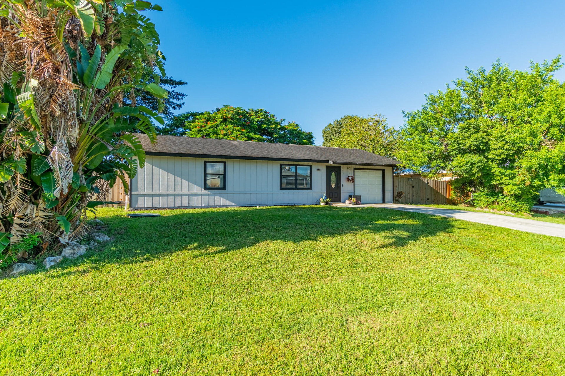 Welcome to this beautifully updated 2-bedroom, 2-bathroom home situated on a desirable corner lot in Port Saint Lucie. This property features a huge fully fenced backyard, offering privacy and plenty of space for a pool, or outdoor entertaining. The home has been refreshed with new interior and exterior paint, creating a clean and inviting feel throughout. Inside, tile and laminate flooring in all living areas, no carpet to worry about. Both bathrooms have been tastefully updated, and the hot water heater was replaced in 2020. This move-in ready home is conveniently located near shopping, dining, schools, and major roadways, an excellent choice for first-time buyers, downsizers, or investors.