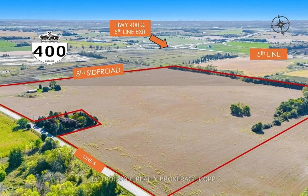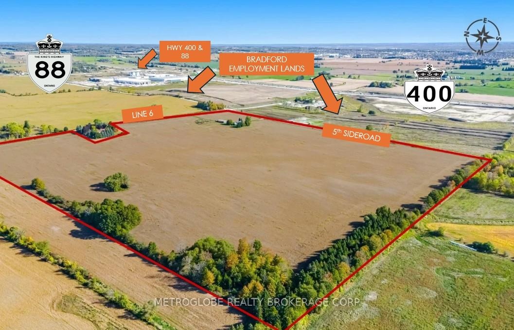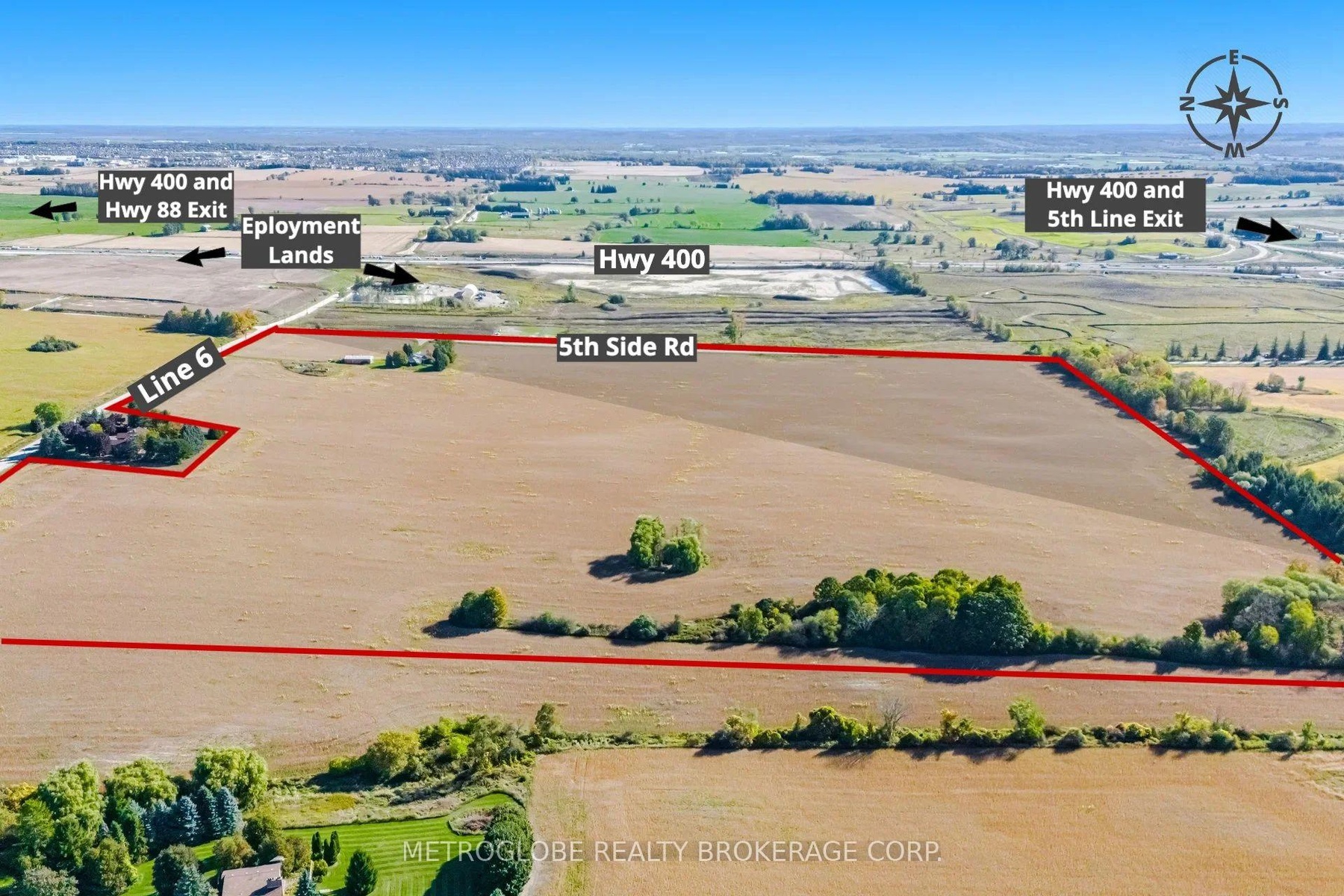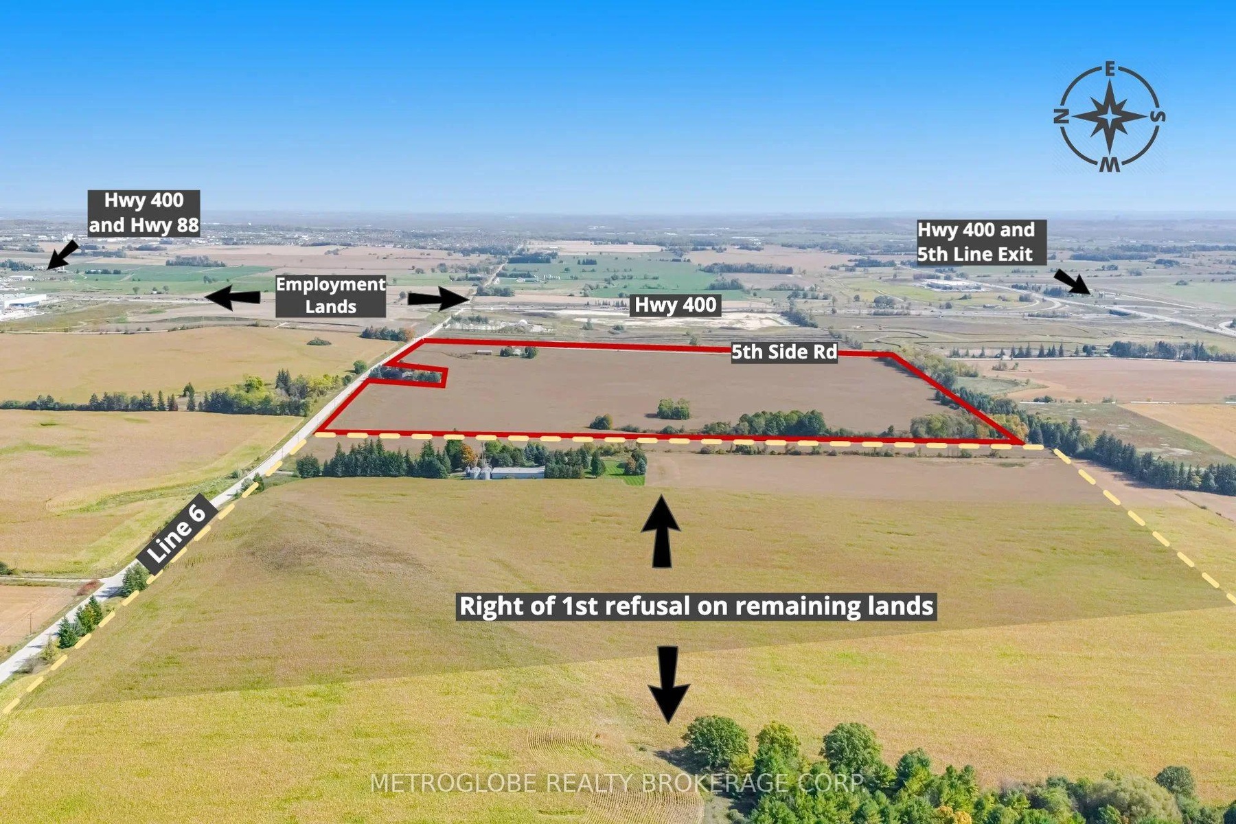 An extraordinary chance to acquire a legacy property in Bond Head. Spanning approx. 99.11 acres at the corner of 5th Sideroad and Line 6, this original family-held farm is a rare acquisition of scale and character, the kind that seldom becomes available. It offers both the presence of a landmark holding today and the promise of significant future opportunity as the area continues to evolve.The lands are free of Greenbelt restrictions, with only a small conservation portion at the rear, leaving nearly the entire acreage usable. Suitable for an estate residence, equestrian retreat, or simply as a strategic long-term investment, the property is also surrounded by major developers. Across the road, designated employment lands are now undergoing servicing, underscoring the future development horizon.The possibilities are further strengthened by a remarkable 25-year first right of refusal on approx. 201 adjoining acres, offering a rare pathway to expand and secure an even greater presence in the area. The seller is open to all reasonable offers and recognizes current market conditions. Attractive seller take-back mortgage options are available, making this both a distinctive acquisition and a forward-looking investment. Residence and lands are tenanted. Showings by appointment only. Buyer to verify all information and conduct their own due diligence.