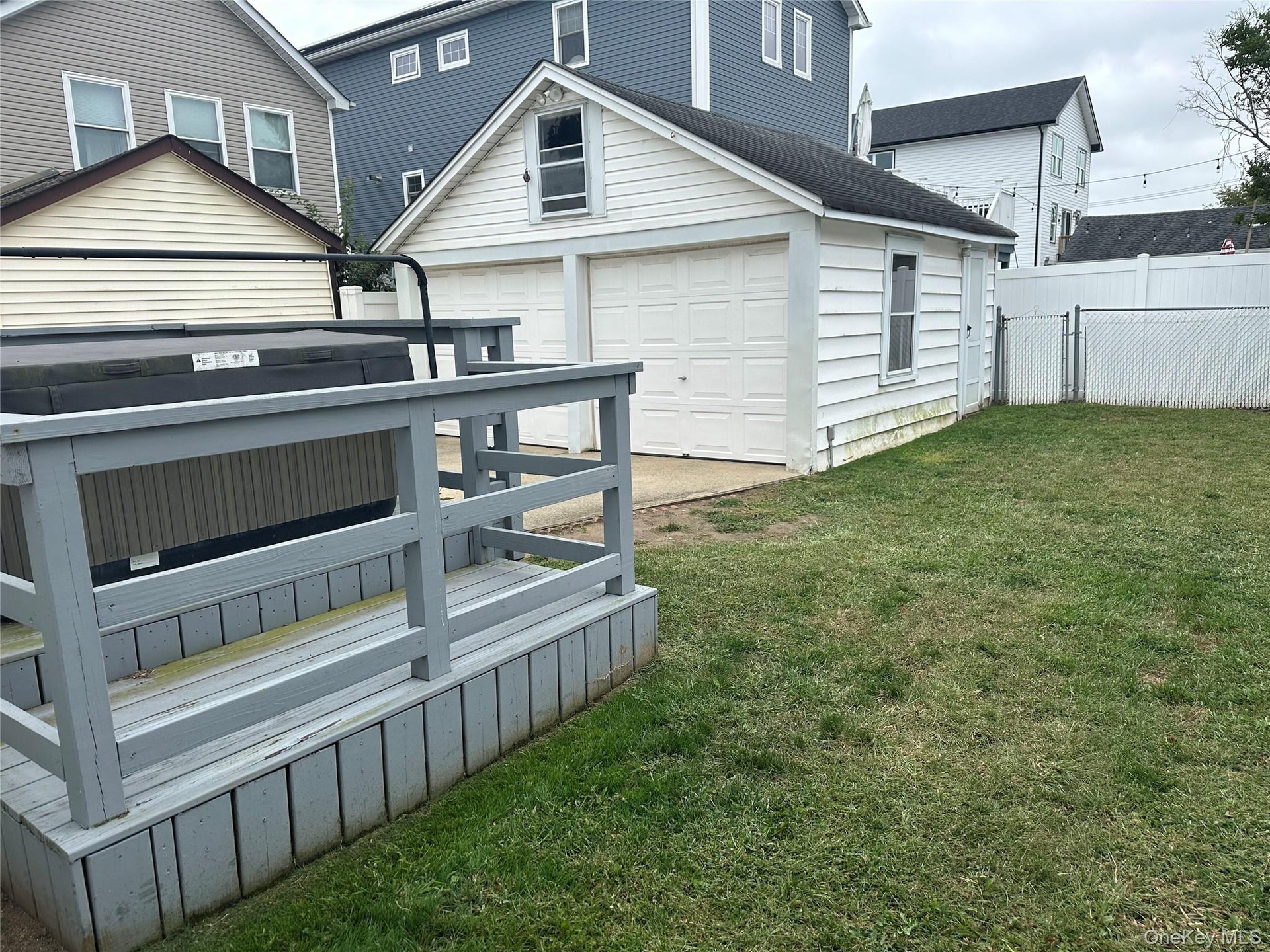 Beautiful Home at beginning of Bay Park. Walk in to beautiful Radiant Heat Hardwood Floors, Large Living Room, Dining Area , Large Eat In Kitchen w/ Corian Counters, Full Bath on First Floor with Bedroom on first floor, Washer/Dryer room shared with Utilities. Lots of closets. Up to 3 Bedrooms (one Large bedroom split into two 4 th bedroom,) small office, Large Primary Bedroom with lots of closets, Full Bathroom, Attic, 3 seat Hot Tub (not representing) included. Private Driveway, 2 Car Garage, beautiful back yard, Move in Ready. You can join Bay Park Beach Club for a small fee. Rights to Dock your Boat for a fee. Town of Hempstead beautiful Pool and Beach for a fee. Bay Park 9 Hole Golf Course for a fee and a 96 Acre Park.