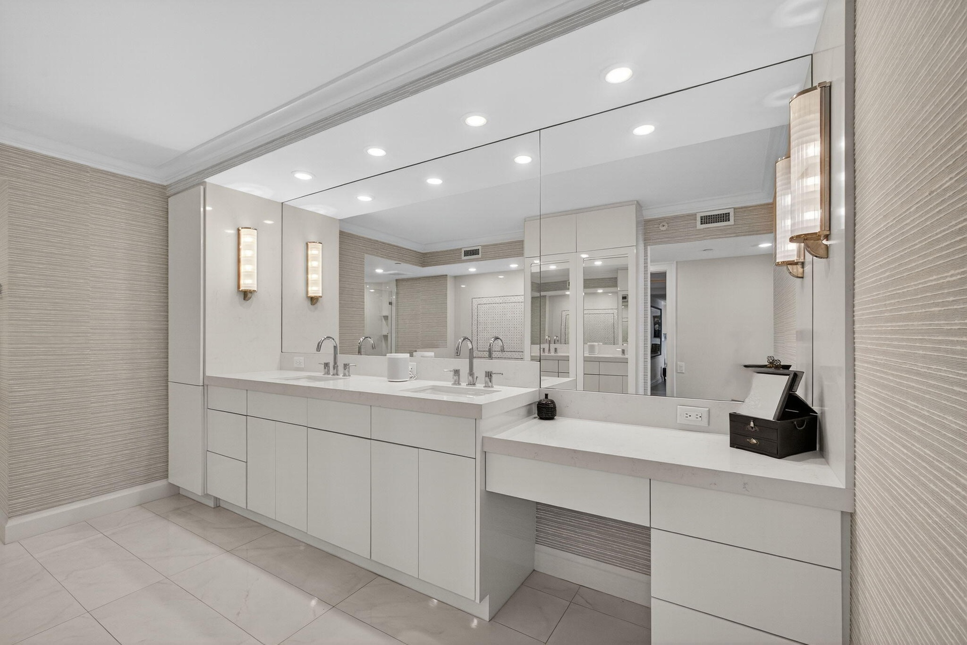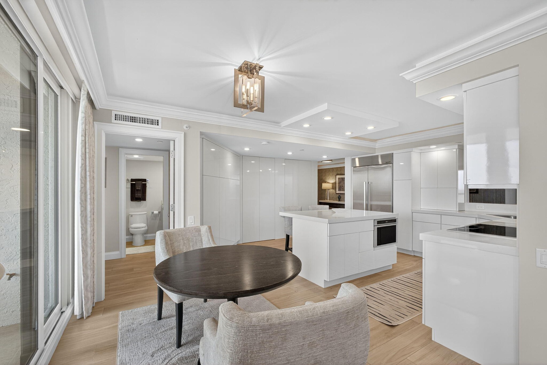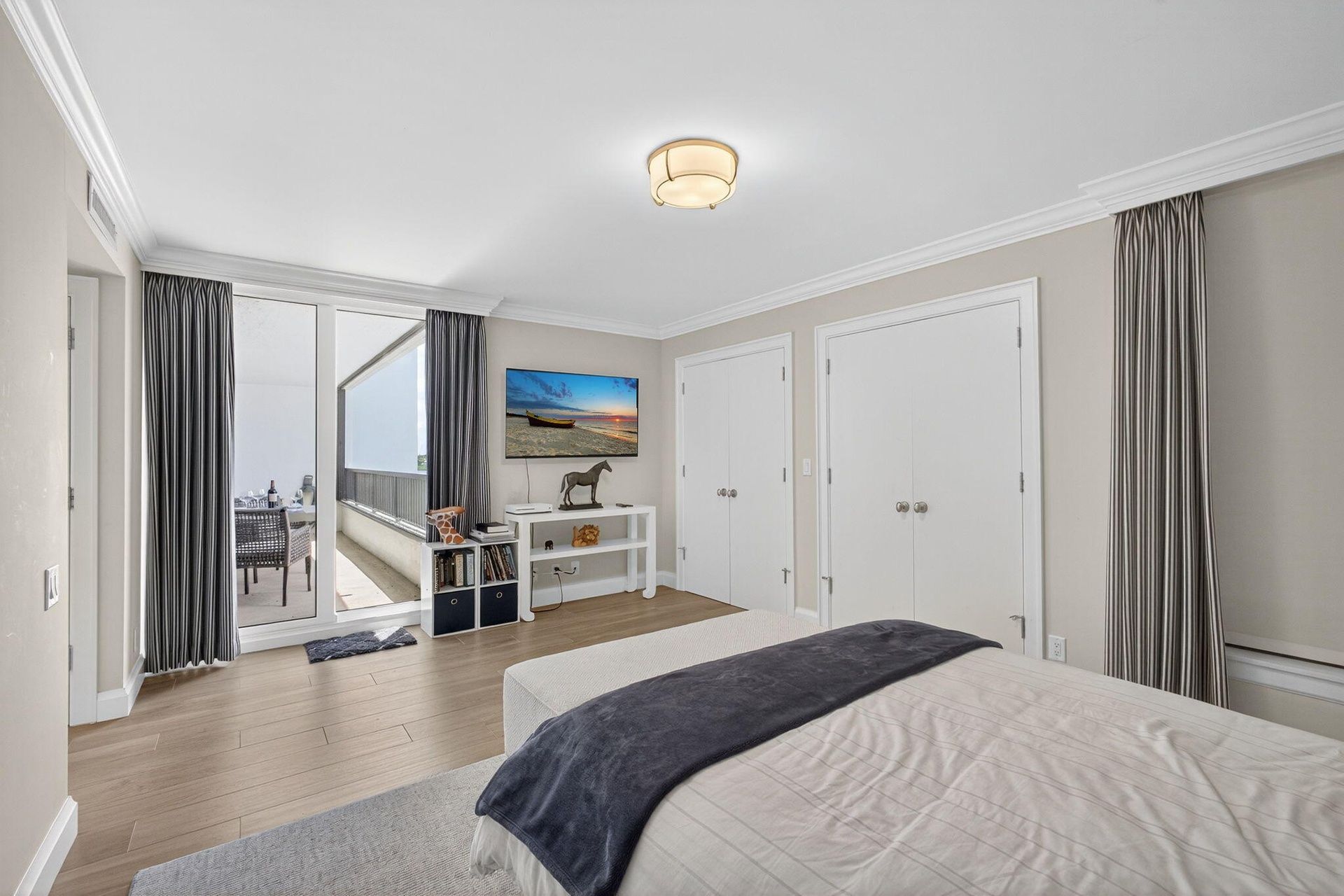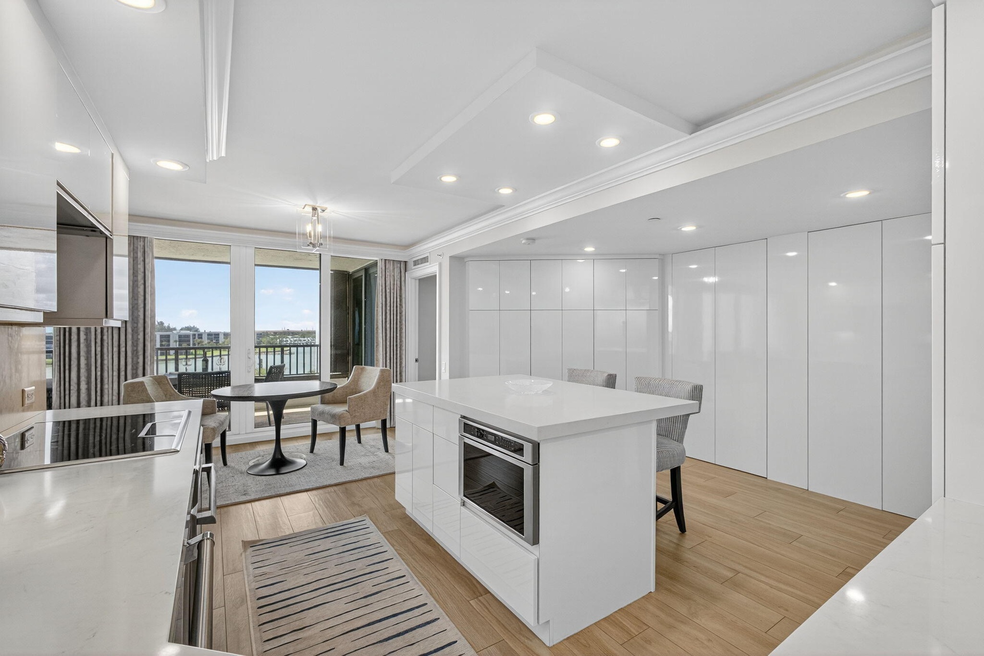 A rare opportunity awaits to own a bespoke residence within one of Jupiter Island's most exclusive enclaves. This fully reimagined 2 bedroom 2 1/2 baths home with a private office offers refined coastal living framed by sweeping views of both the Atlantic Ocean and Intracoastal Waterway. Thoughtfully designed with an open, airy floor plan, this residence exudes understated elegance. Custom finishes and meticulous craftsmanship are showcased throughout, from serene white on white kitchen with quartz countertops to expansive living areas that flow seamlessly to terraces on both sides of the residence. Impact glass, custom window treatments provide comfort and peace of mind. With only 28 residences in the building, privacy and exclusivity are paramount.