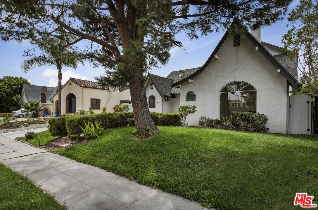 Proudly presenting a very special lease offering in Miracle Mile. Discover 833 S. Burnside Ave., c. 1923, this super-charming 4BR/3BA Country English pool home, also includes detached back house (an additional 535SF) equipped with full bathroom - perfect for multigenerational living, home office/studio or out-of-town guests. As you walk up the enchanting cobblestone pathway, you'll be transported by this gem's historic character. Inside the formal entry, you'll be met with an expansive living room featuring high-barreled ceiling, gleaming hardwood floors, large front picture window and decorative tiled fireplace. Just off the living room, the bright formal dining room serves as an ideal setting for future entertaining and holiday gatherings. Lovely cook's kitchen offers darling eat-in breakfast area, stainless steel appliances and custom cabinetry, plus dedicated laundry room, additional abundant storage/pantry and direct access to the outside. Down the hallway you'll discover 3 additional spacious bedrooms plus two full bathrooms with tub and shower combinations and skylights, as well as a versatile family room/den with direct access to the backyard. The upper level is accessible by staircase off the living room and opens into an expansive primary suite with built-in bookshelves and bench storage, high-pitched ceilings, skylights and another full bathroom. An incredible backyard is highlighted by freshly re-plastered, sun-drenched swimming pool and spa, and a versatile detached back house (over 500SF) with hardwood flooring, full bathroom, and more built-in storage. This spacious backyard offers the perfect place to relax, lounge or play. This Miracle Mile lease is enviably positioned in the center of the city - where you can enjoy nearby events at LACMA and Ray's and Stark Bar, or the plethora of desirable neighborhood restaurants including Republique, Met Her At A Bar, Uovo, Apollonia's Pizzeria, HiHo Cheeseburger, KazuNori, Genwa Korean BBQ and much more. This lease offering has it all!