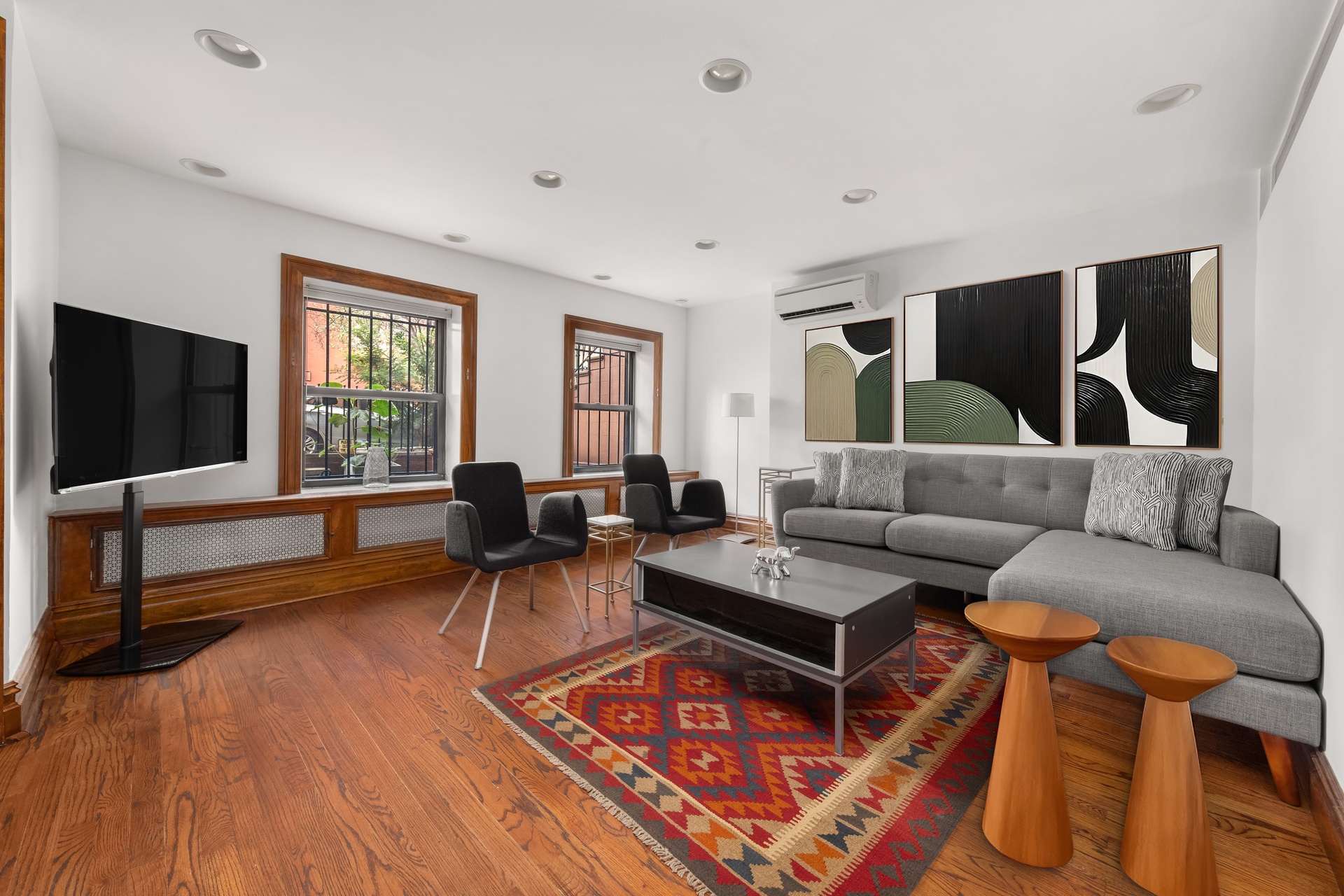 Move right in to this beautifully renovated, fully furnished 2BR x 2BA duplex apartment, featuring a private entrance and backyard, with options to rent unfurnished. It is ideally located in a classic brownstone townhouse in the heart of Clinton Hill, Brooklyn, just a quick and easy commute to Manhattan.