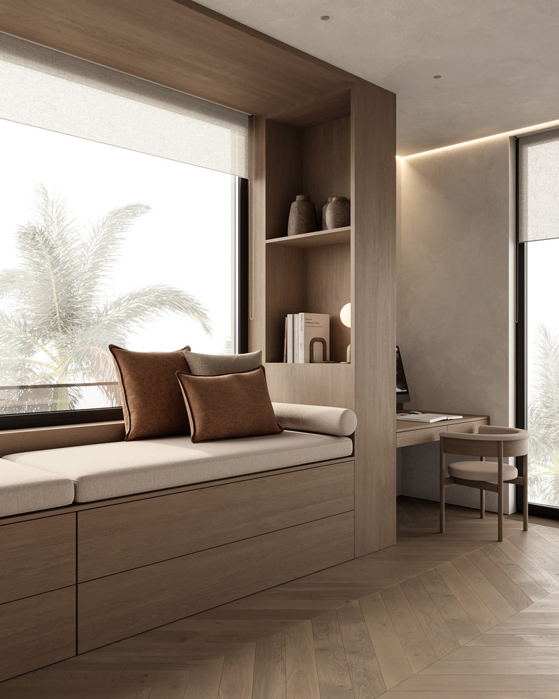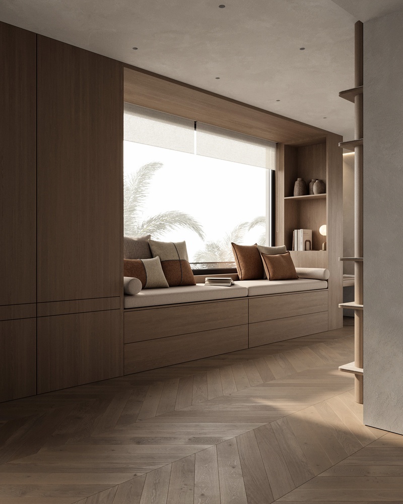 Upon entering its imposing entrance, a foyer filled with natural light leads to spacious rooms that open onto the garden. Marble floors, handcrafted woodwork, and floor-to-ceiling windows are symbols of sophistication. Each bedroom enjoys panoramic views, designer closets, and en-suite bathrooms equipped with fine materials, top-of-the-line faucets, and sanitary ware.