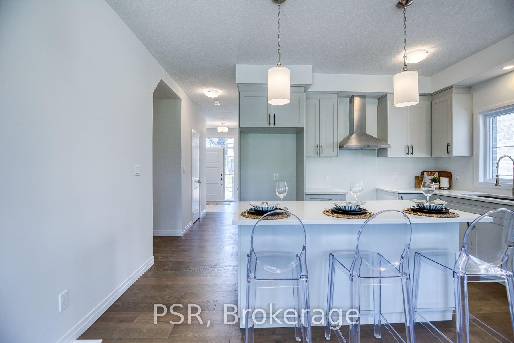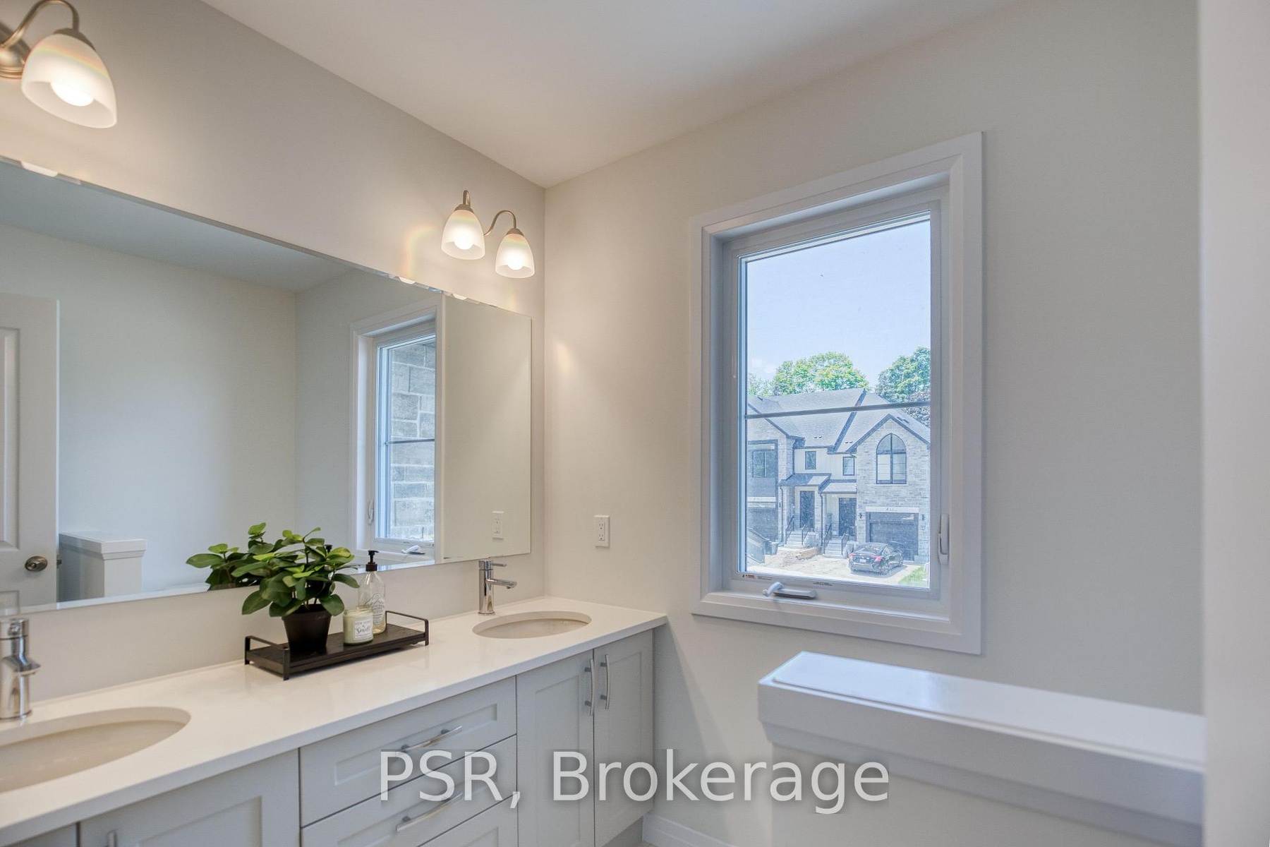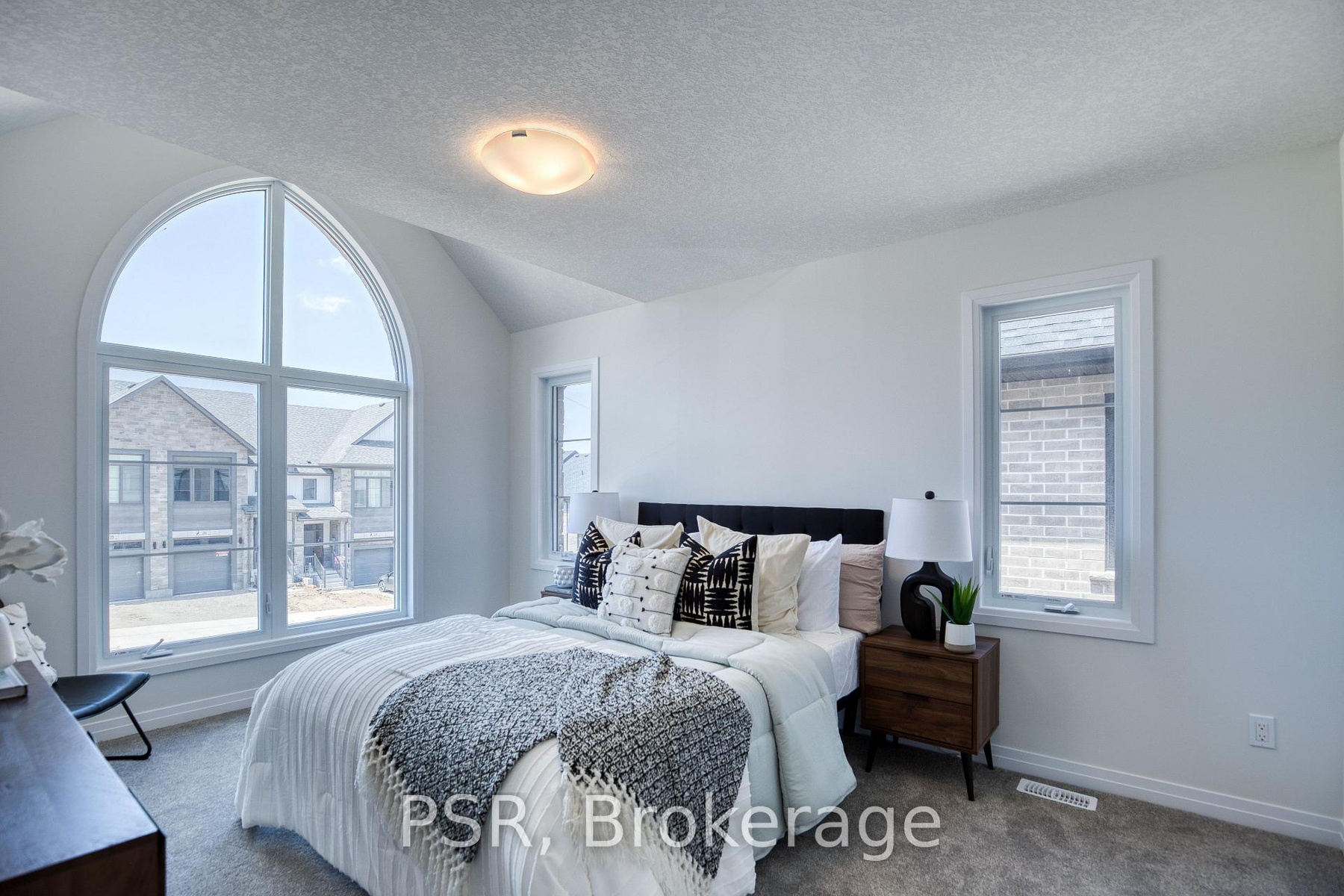 OPEN HOUSE: Saturday & Sunday 1:00 PM - 5:00 PM at the model home / sales office located at 19 Rivergreen Cr., Cambridge. Welcome to this beautifully designed freehold townhome in the sought-after Westwood Village community. Offering 1,520 square feet of thoughtfully planned living space, this 3-bedroom, 2.5-bathroom home features a carpet free open-concept main floor, creating a modern and inviting atmosphere. The stylish kitchen is appointed with 36-inch upper cabinets, quartz countertops, an extended breakfast bar, and seamless flow into the dining and living areas perfect for everyday living and entertaining. Upstairs, the primary suite offers a private retreat with a double sink vanity and a tiled glass walk-in shower. Two additional, great sized bedrooms, and the laundry room complete the second floor. The basement includes a 3-piece rough-in and a cold room with sump pump. Complete with a single-car garage and built by Ridgeview Homes, this property combines quality craftsmanship with a prime location near walking trails, parks, and is just 1012 minutes from both Conestoga College and Highway 401. **Photos are for reference only and feature a previous end-unit model, highlighting the builders quality craftsmanship and design.**