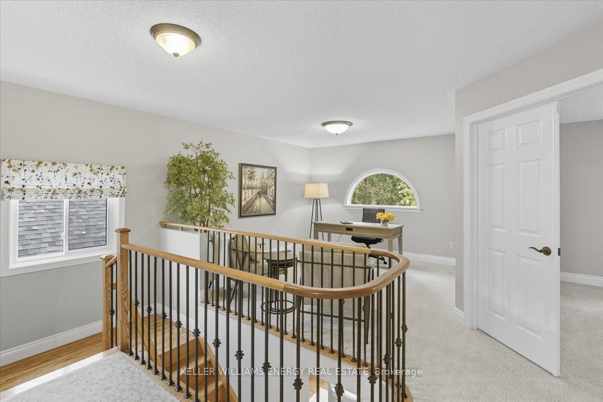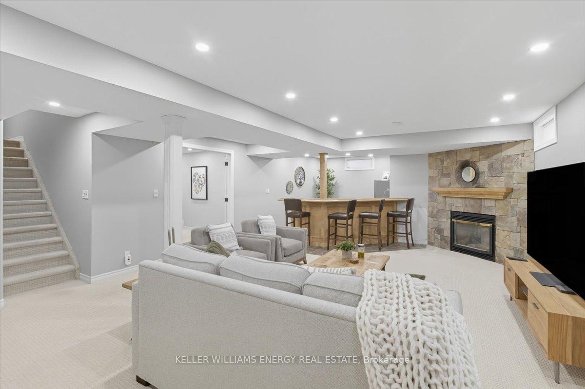 Shows 10+ Kedron Park beauty backing onto the golf course private and tranquil, this home is move-in ready with thousands spent on upgrades and ~2,800 sq. ft. of finished living space.The open-concept main floor features 9 ceilings, hardwood flooring, and a bright layout that flows seamlessly from living to dining to family space. The kitchen overlooks the backyard, perfect for entertaining or quiet evenings. Upstairs are three spacious bedrooms, including a primary with a generous ensuite, plus recently updated broadloom (~2020), and a secondary den/media area. The fully finished lower level adds a 4th bedroom, a large rec room with gas fireplace, and a full washroom ideal for extended family or guests.Notable updates include: New furnace and A/C (2025) with transferable warranty Shingles (~2018) Front, garage, and sliding doors replaced (2018) Enjoy two gas fireplaces (main and lower level), fresh finishes throughout, and a backyard retreat that feels like cottage living in the city.