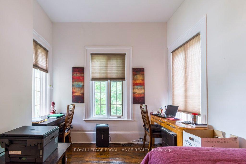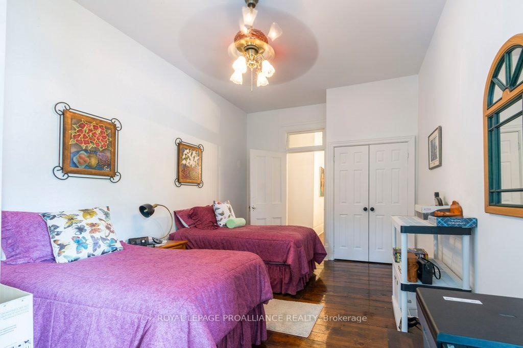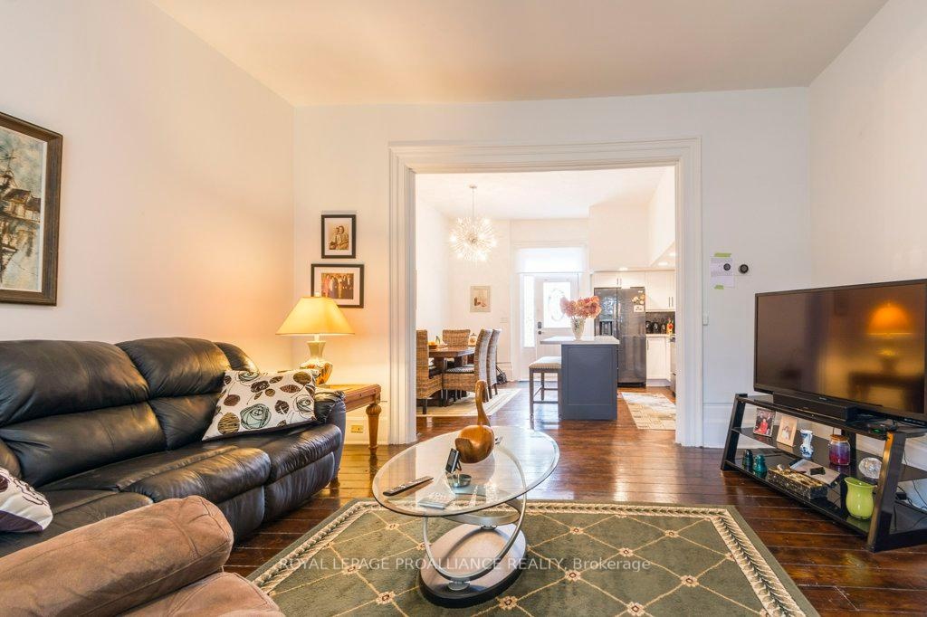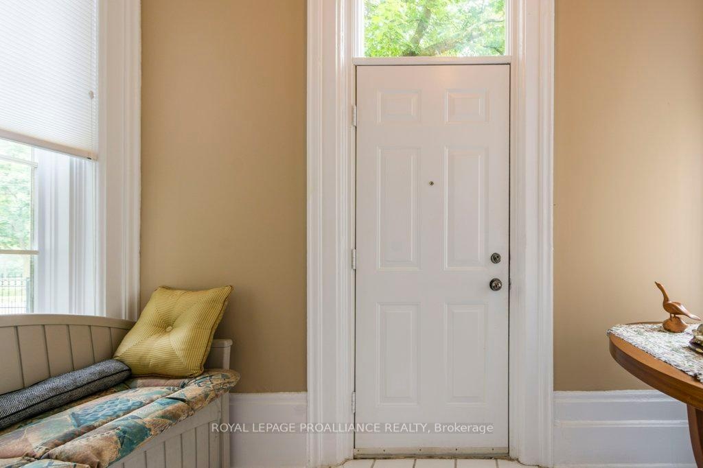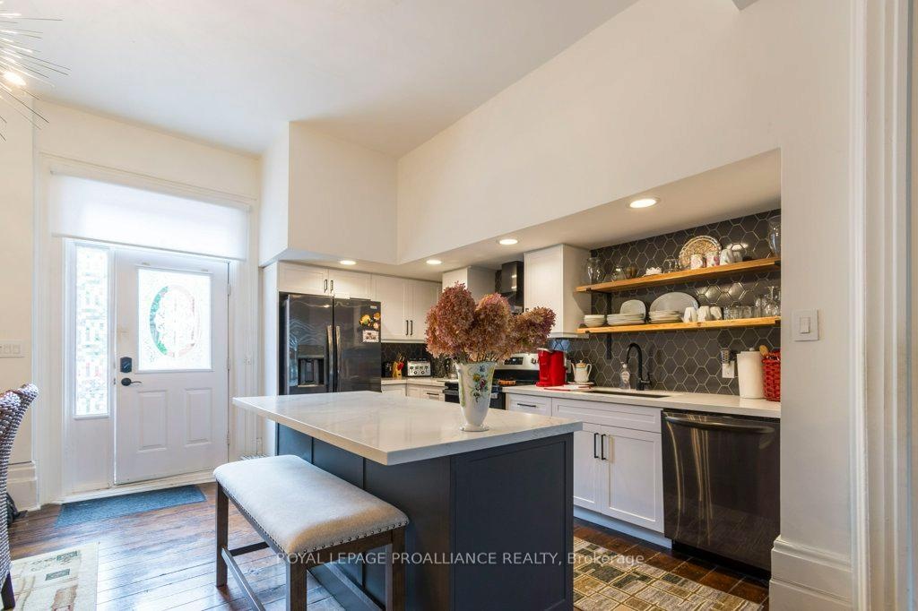 This stunning open-concept Victoria townhome is full of character and charm. Towering ceilings, 16 base boards and large windows on both levels that flood the space with natural light. Step inside through the elegant front door to a spacious foyer, powder room, and a stately, original staircase that sets the tone for the home. The main living area offers a bright, open layout with a generous living room and modern kitchen with center island perfect for entertaining or relaxing. The primary bedroom features a walk-in closet and direct access to the main bathroom and laundry nestled in the sought-after Old East Hill neighbourhood, close to downtown and just minutes from the 401, Bay of Quinte and the world-renowned wineries and beaches of Prince Edward County. Early possession possible if needed! Extensive renovating about 5 years ago while maintaining the charm of the past. All appliances and window coverings included.