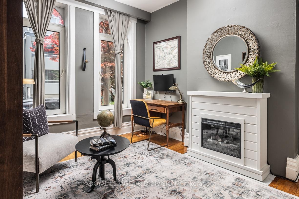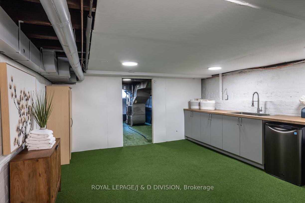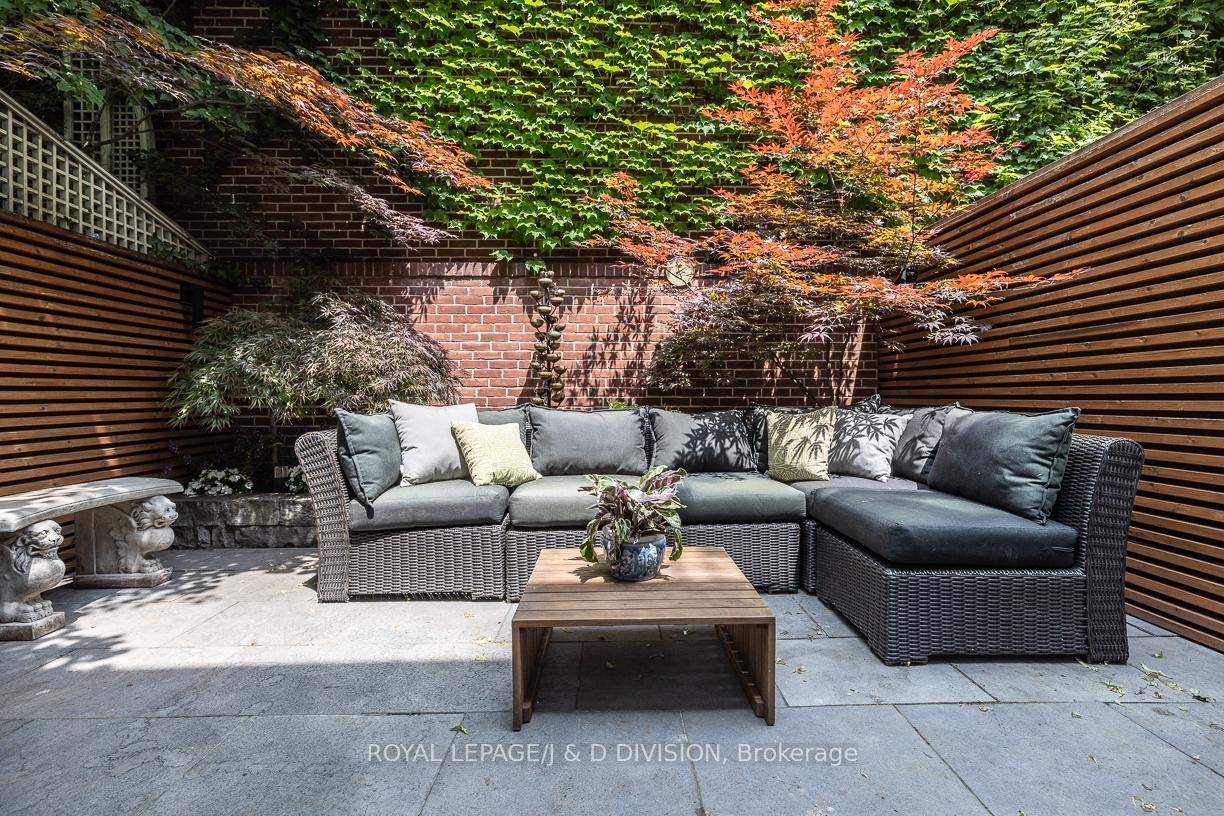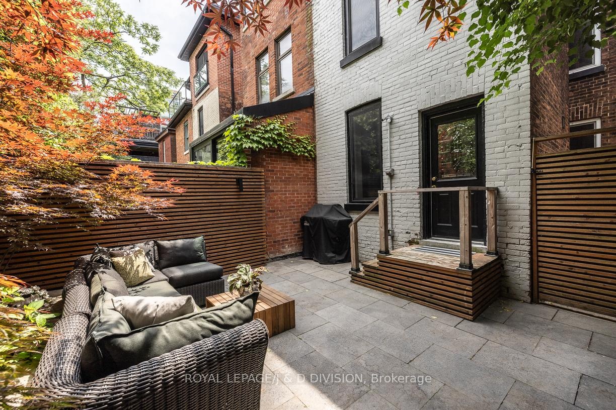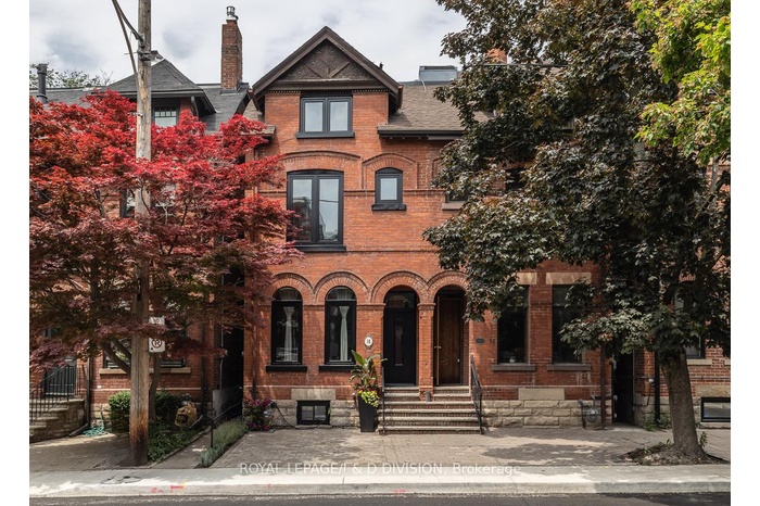 DescriptionOn a quiet cul-de-sac in the Annex - right next to Yorkville - this 5+1 bedroom, 2-bath Victorian semi blends timeless character with modern flexibility in one of Toronto's most desirable neighbourhoods! Step through a rounded arch entrance and into a New York-style foyer. The spacious living room features soaring ceilings, original hardwood floors and two tall front windows that flood the space with natural light. A large adjoining dining room (currently used as a family room) showcases high baseboard moulding and a generous window, enhancing the home's historic charm. The renovated eat-in kitchen offers butcher block counters, a rich brick backsplash, and ample storage. Walk out to a beautifully landscaped, ultra-private backyard with slate stonework and towering greenery - an ideal retreat for entertaining. Upstairs, the second level hosts a king-sized primary bedroom with two large windows and a built-in closet. Two additional bedrooms (one currently a gym, one ideal as a nursery or office) share a sleek modern washroom with a glass walk-in shower. A deep hallway closet adds extra convenience. The third floor features two more bedrooms under gabled ceilings, one with a charming alcove perfect for a reading nook. The lower level includes a bedroom, workshop space with custom counters, a mini-fridge, laundry, bathroom, and ample storage which could be easily converted to a rec room, studio, or guest suite. All just steps from Yorkville's upscale shops, fine dining, cafes, U of T, Jesse Ketchum Jr and Sr PS, and Bloor Streets cultural corridor, this is sophisticated urban living in the heart of the city.Virtual Tour: https://my.matterport.com/show/?m=ooX29kbdmNcAmenities- Workbench