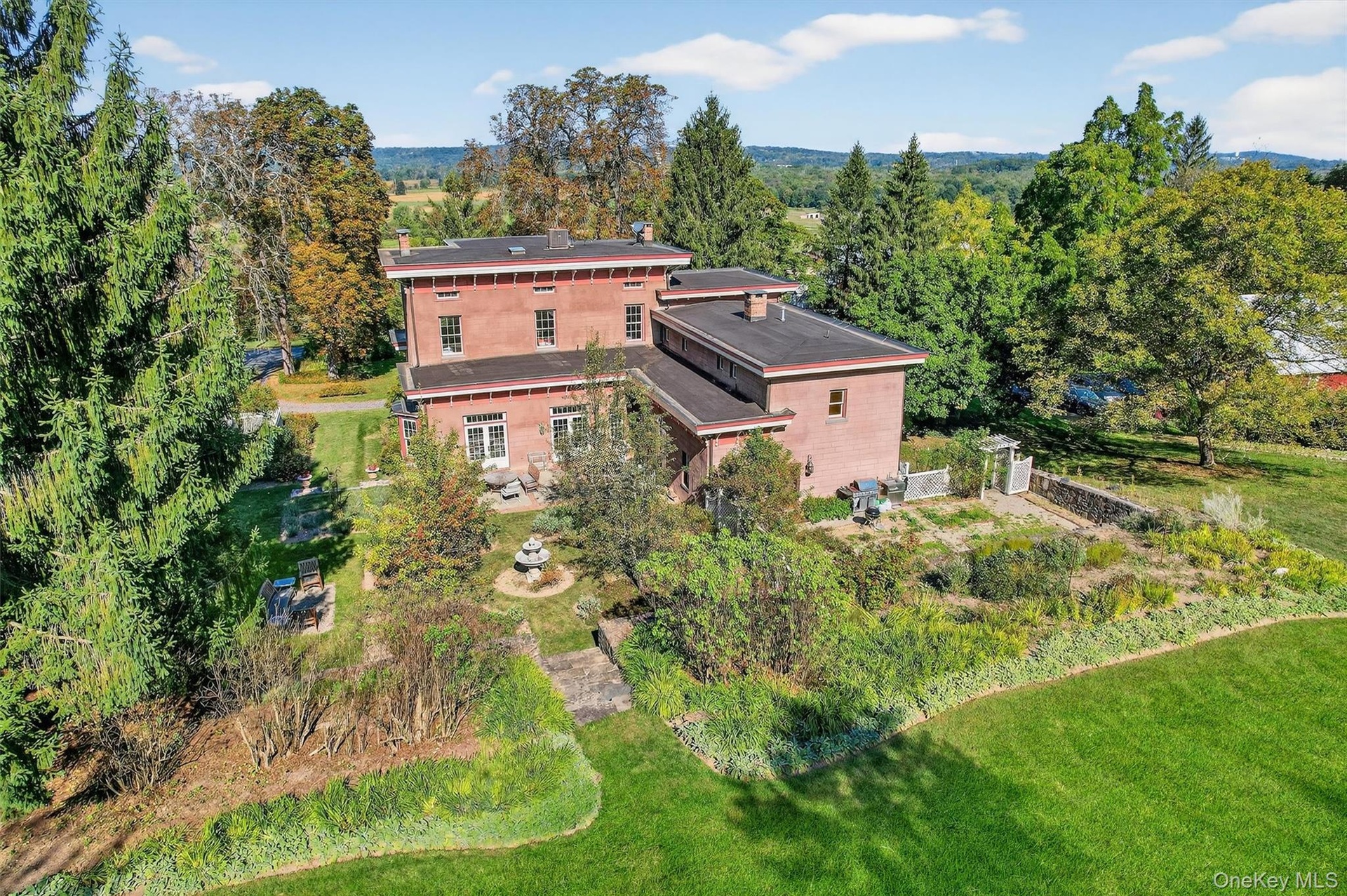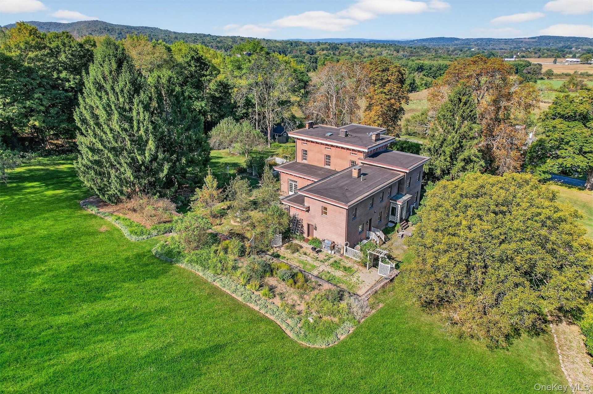 - Aerial overview showing the grand house, the guest cottage and the barn. Limitless possibilities!