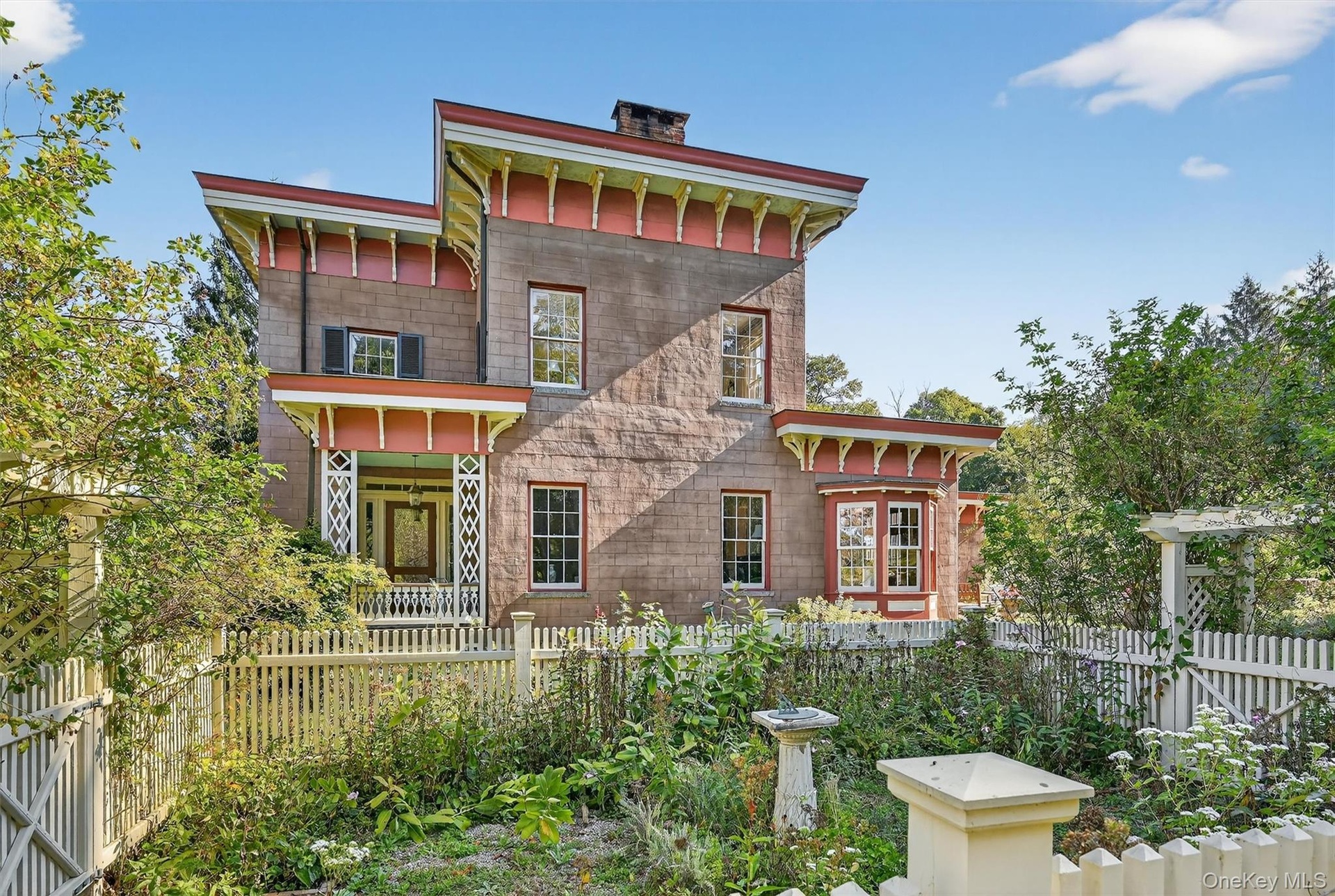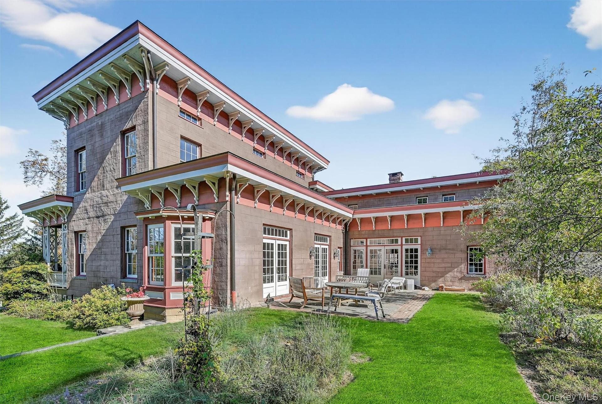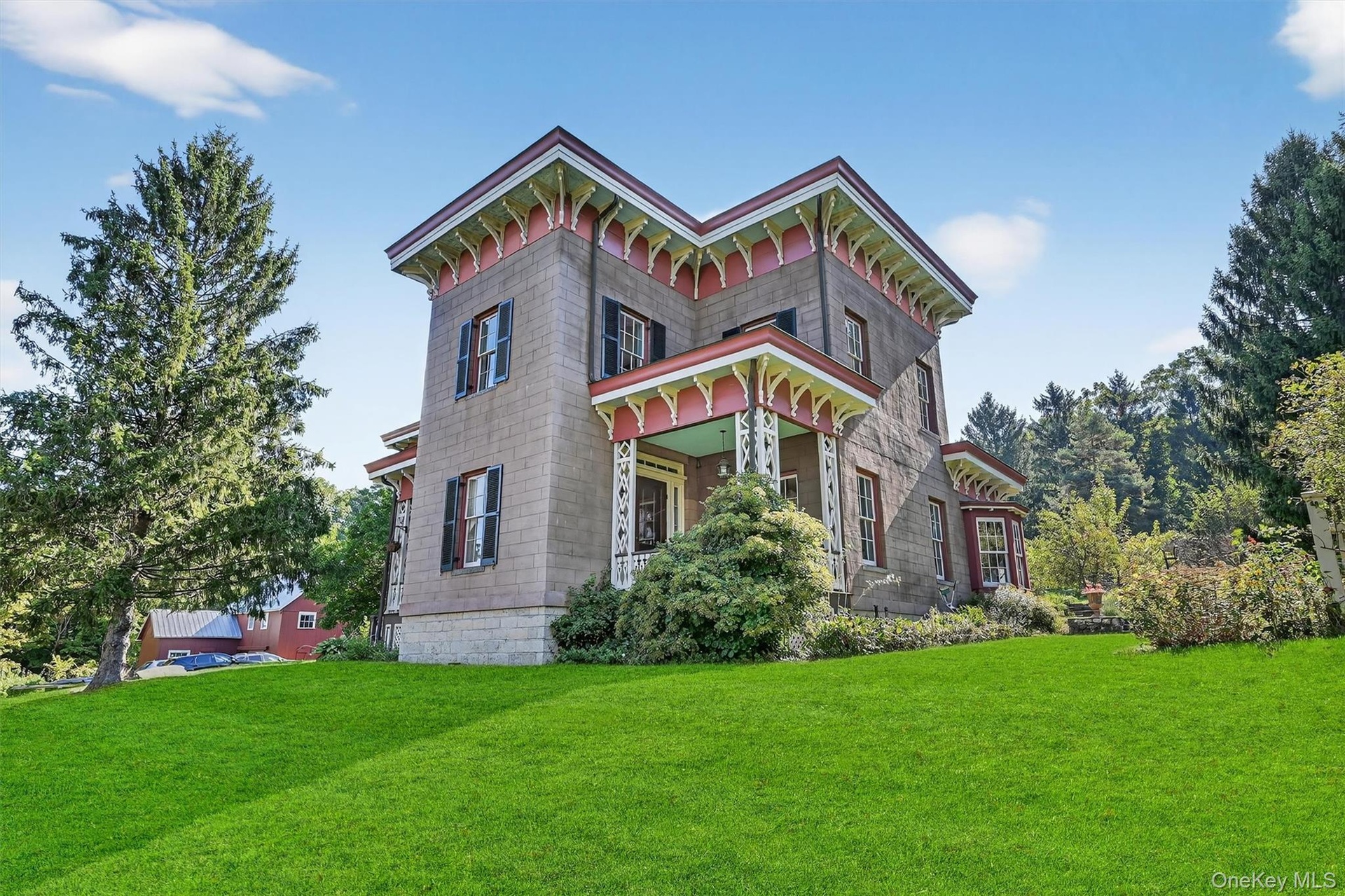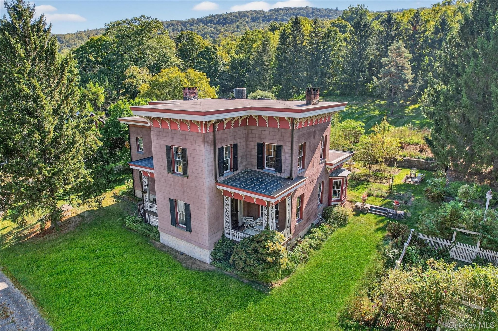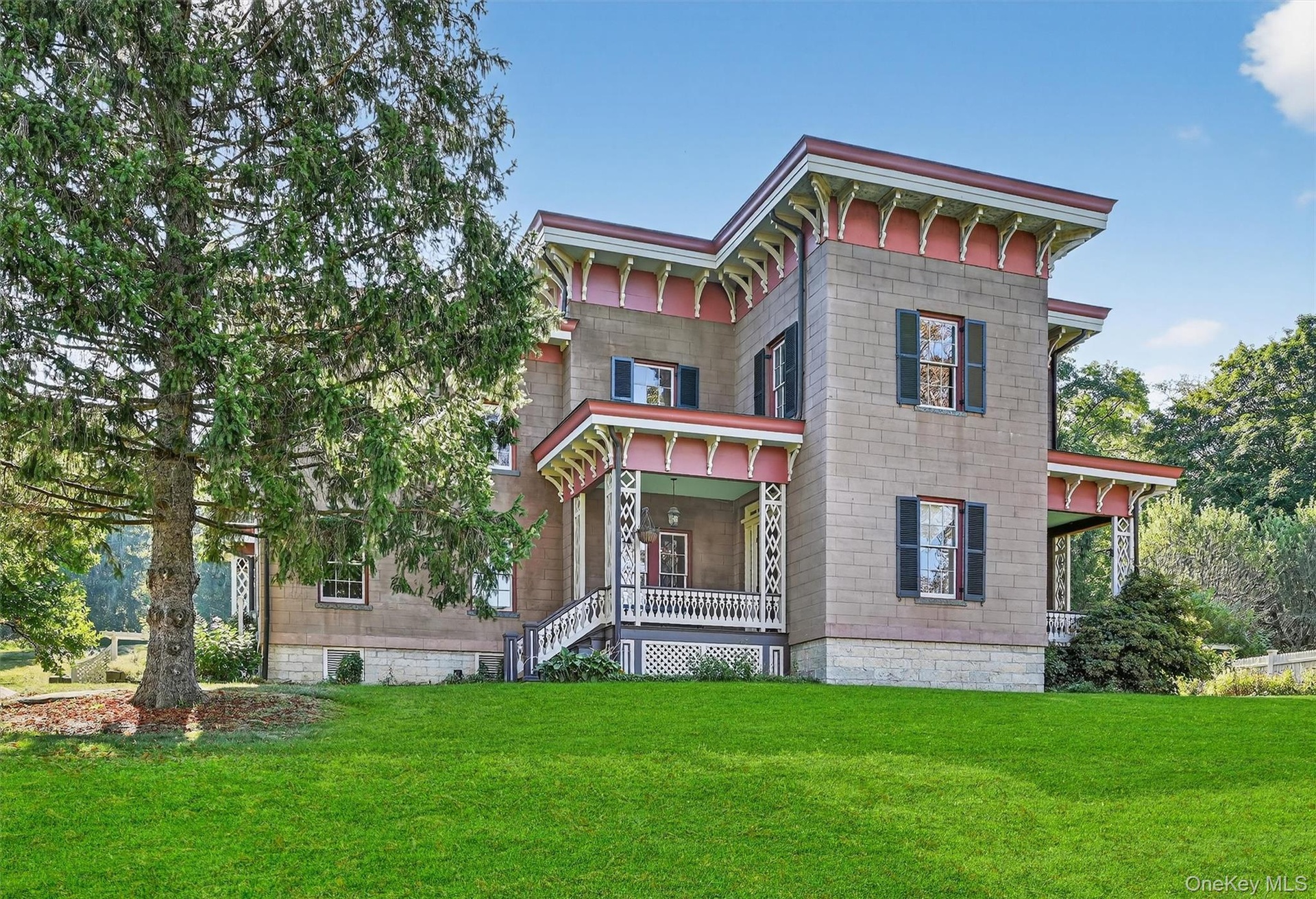 - Italianate house with covered porches and manicured grounds