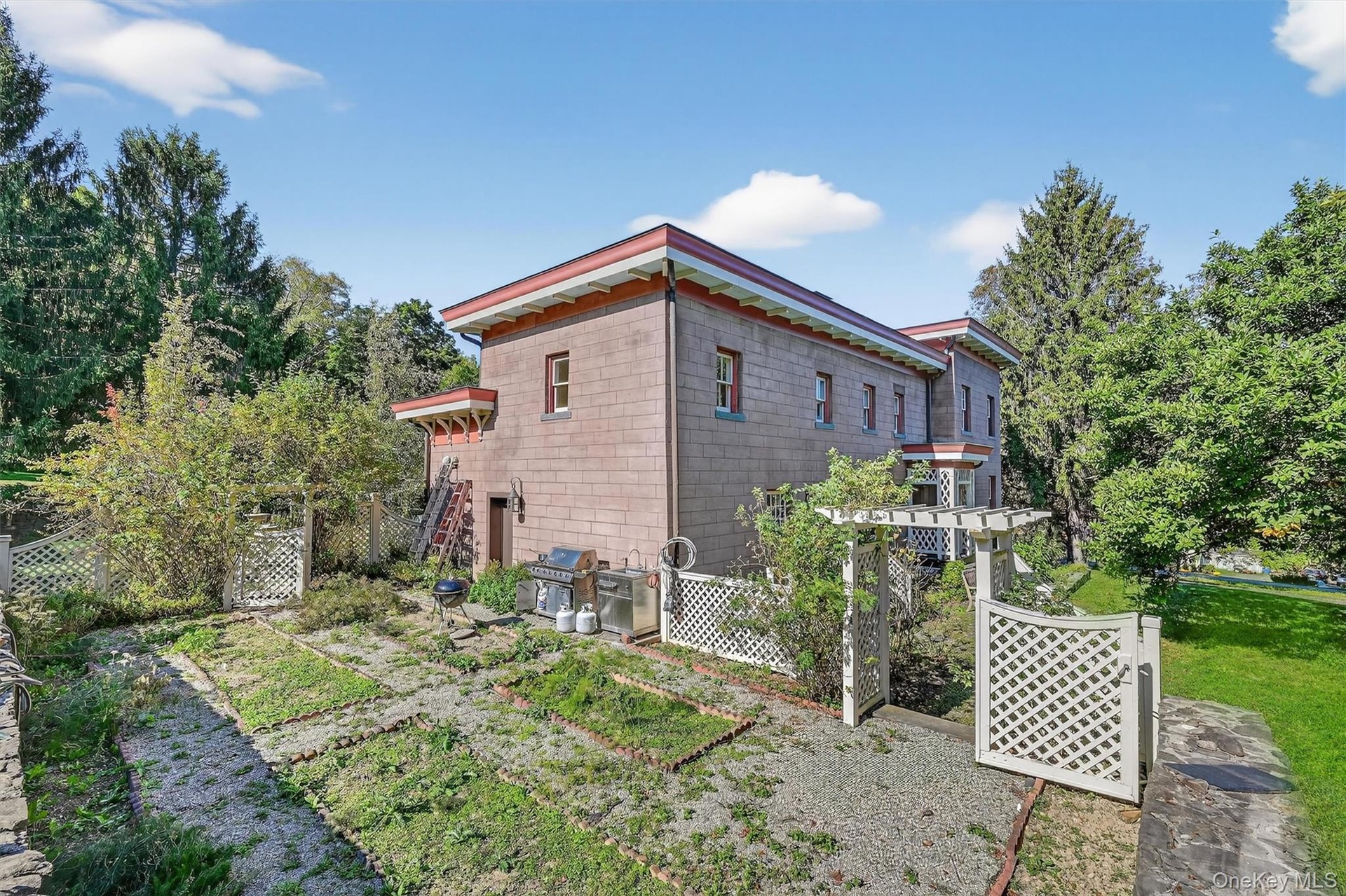 - Lush lawn and gardens